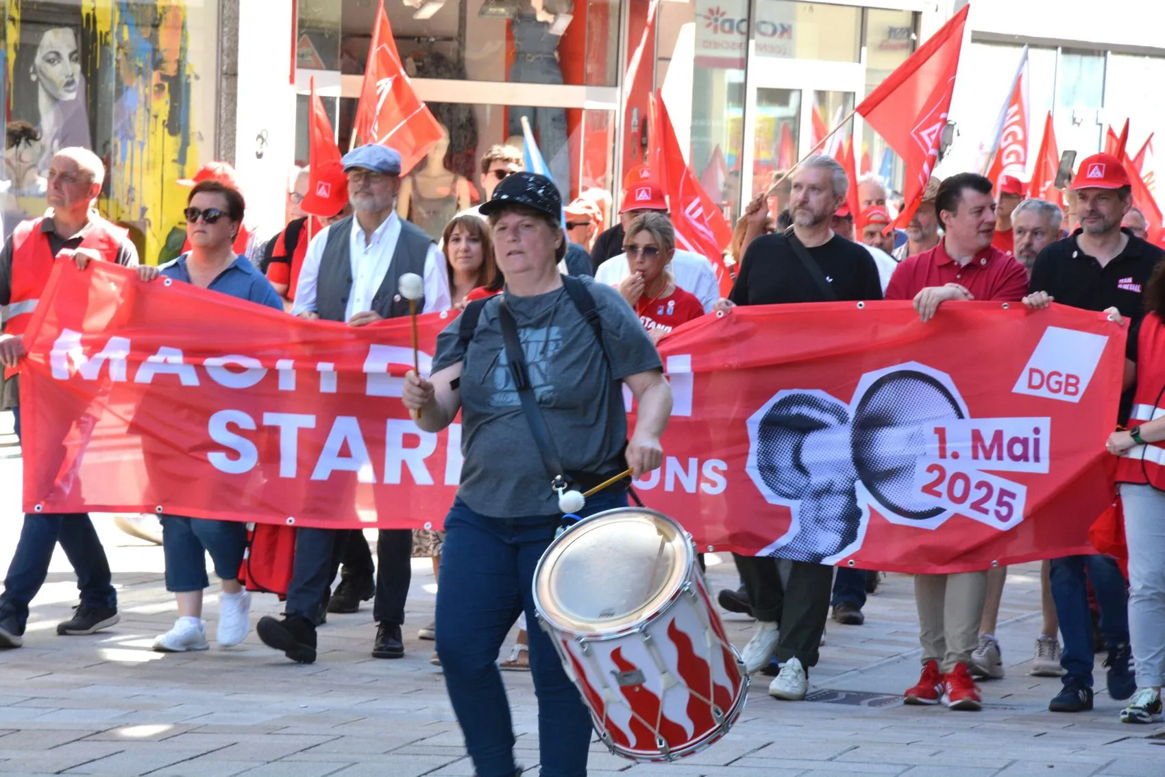 Gewerkschaften senden starkes Signal an die neue Regierung. DGB-Kreisvorsitzender Bernd Schildknecht sagte in seinem Grußwort: „Zum 1. Mai wird man nicht eingeladen. Zum 1. Mai kommt man.“ Tatsächlich nahmen geschätzt 1000 Besucherinnen und Besucher an der Kundgebung auf dem Rathausplatz teil. So wurde die Mai-Veranstaltung in Lüdenscheid erneut zum größten Arbeitnehmer-Treffen in Südwestfalen.