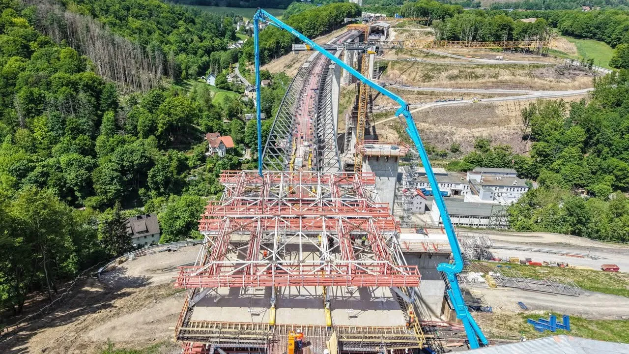 Der Beton fließt — Brückenbau geht in die nächste Phase. Weiter geht’s im Rekordtempo — Die Autobahn GmbH teilt auf ihren Social Media-Kanälen Fotos von der frisch betonierten Fahrbahnplatte der Talbrücke Rahmede. Die ersten Abschnitte wurden Mitte Mai gegossen.
