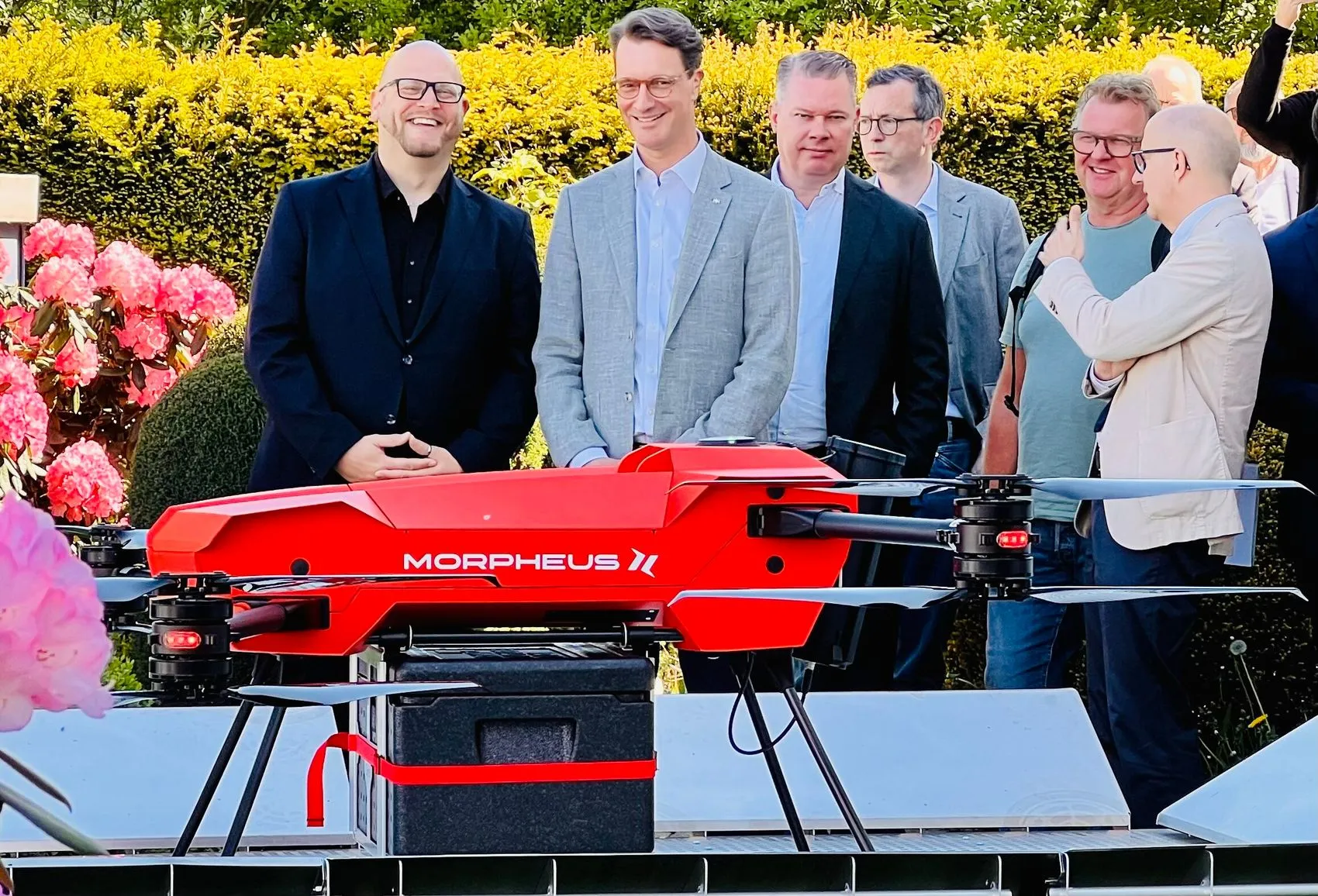 Hendrik Wüst besucht Drohnen-Logistik-Pionier Morpheus. Beeindruckt zeigt sich Wüst von der Technologie und dem Unternehmergeist der Morpheus Logistik GmbH: „Unabhängig, effizient und nachhaltig: Die Einsatzmöglichkeiten von Drohnen-Transporten werden in den nächsten Jahren weiter wachsen. Unser Ziel ist es, Nordrhein-Westfalen zur Vorreiterregion für eine leistungsfähige Drohneninfrastruktur zu machen“, gibt Wüst die Marschroute auf dem Gebiet vor.