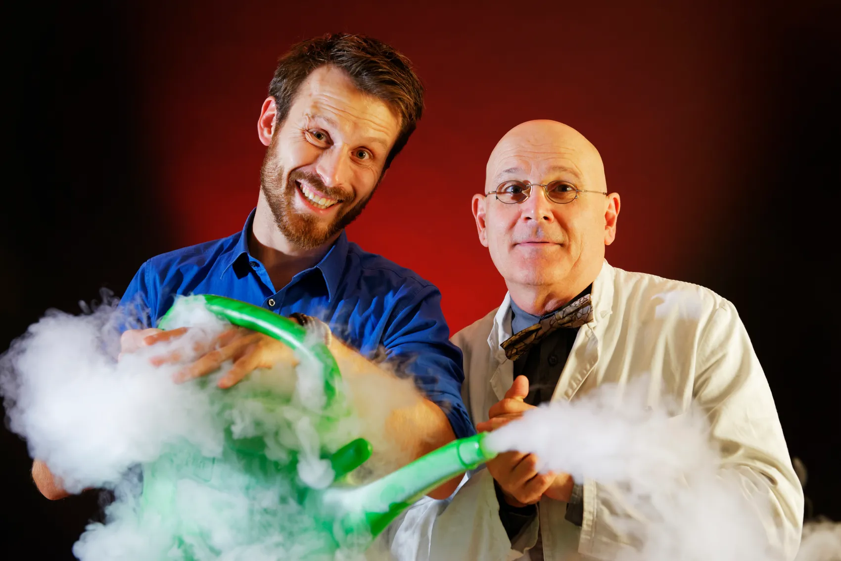Seit 23 Jahren beweisen die Physikanten: So unterhaltsam kann Naturwissenschaft sein! Wenn sie die Bühne betreten, wird Physik so witzig wie eine Comedy-Show, glamourös wie ein Abend im Varieté oder packend wie ein Fußballendspiel: Stabile 200-Liter-Fässer falten sich mit gewaltigem Knall zusammen oder ein Laserstrahl macht plötzlich Musik und wird zur Bassgitarre. „Bei uns lernen Interessierte bei einer Vorstellung mehr über Physik als sie je in ihrer Schulzeit vergessen konnten“, sagt Diplom-Physiker Marcus Weber, Kopf und Gründer der Physikanten und Co., mit einem Augenzwinkern.