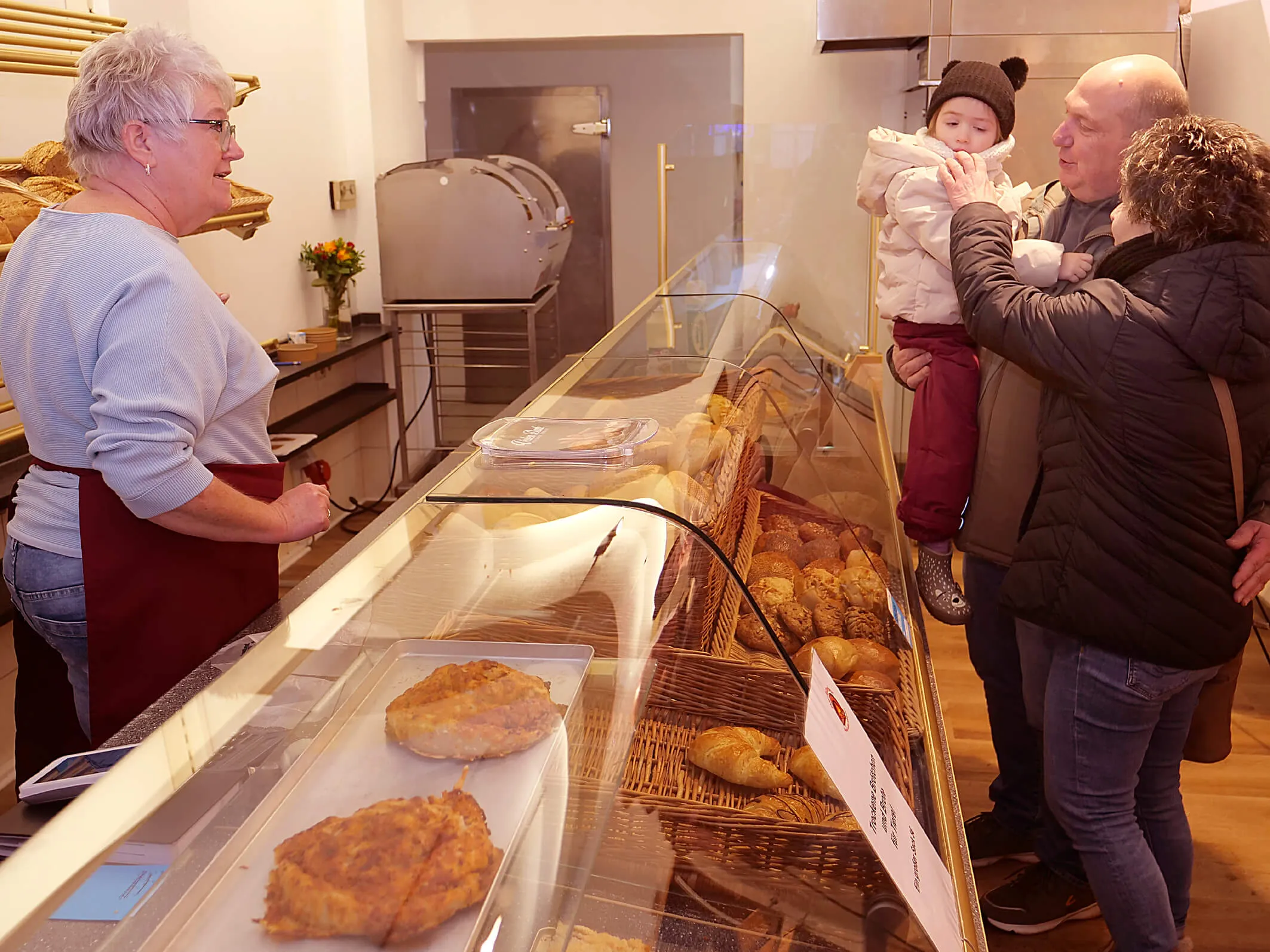 Was die Damen auszeichnet: Bloß zu verkaufen ist nicht ihr Ding. Sie beraten umfassend, nachdem sie sich im Stammbetrieb in Valbert auch gründlich informiert und weitergebildet haben. Sie können nun rundum Auskunft geben zu Art und Inhalt der Brotlaibe aus Weizen-, Dinkel und Roggenmehl, Baguettes, Kuchen, Torten und Gebäck, zu allem, was alles nach echtem Handwerk aussieht.
