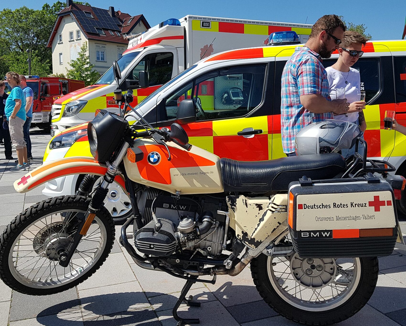 Es können auch wieder die Fahrzeuge des Ortsvereins bestaunt werden: „Beim Blaulichttag war das Interesse besonders bei den Kindern groß. Wir haben seit kurzem auch einen Rettungswagen, der übrigens im gesamten Kreis eingesetzt wird“, erzählt Markus Schemann. Unter den präsentierten Fahrzeugen finden sich auch Oldtimer. Insgesamt verfügt der Ortsverein über acht Fahrzeuge – fünf davon sind eigene, drei sind vom Katastrophenschutz. Außerdem gebe es noch Anhänger und ein Motorrad.