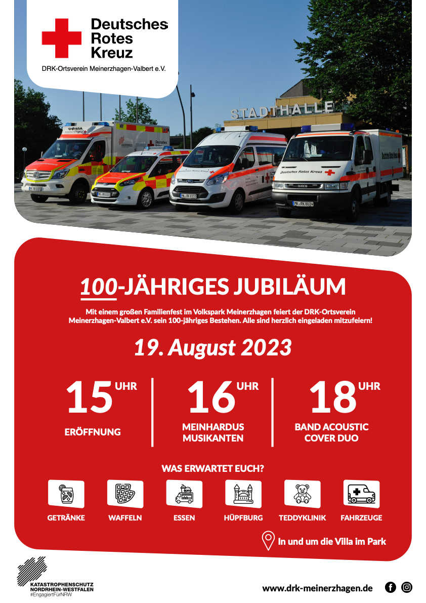 Markus Schemann, seit 36 Jahren Jahren beim DRK und mittlerweile der RotKreuz-Leiter des Ortsvereins, berichtet, dass im eigentlichen Jubiläumsjahr 2022 noch Corona bedingte Unsicherheit herrschte und deshalb die Feier zum 100-jährigen Jubiläum erst in diesem Jahr stattfinde. Zunächst wurde überlegt, nur ein kleines internes Fest zu veranstalten. Aber ein 100-jähriges Jubiläum hätte schon etwas Größeres verdient. Also habe man sich für ein Familienfest entschieden, um so auch den Bürgern der Stadt und der Nachbarschaft etwas zu bieten und über die Arbeit des DRK zu informieren.