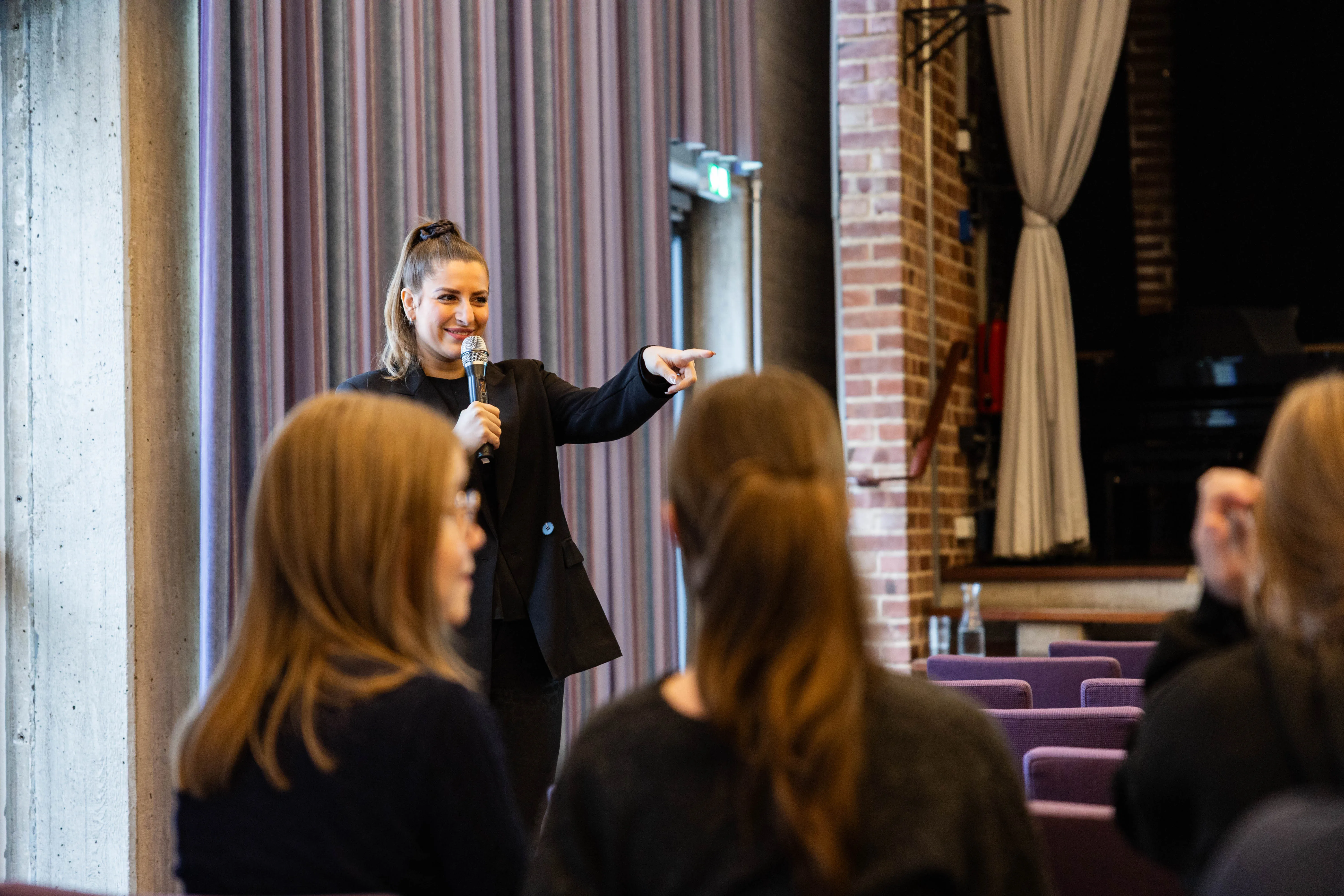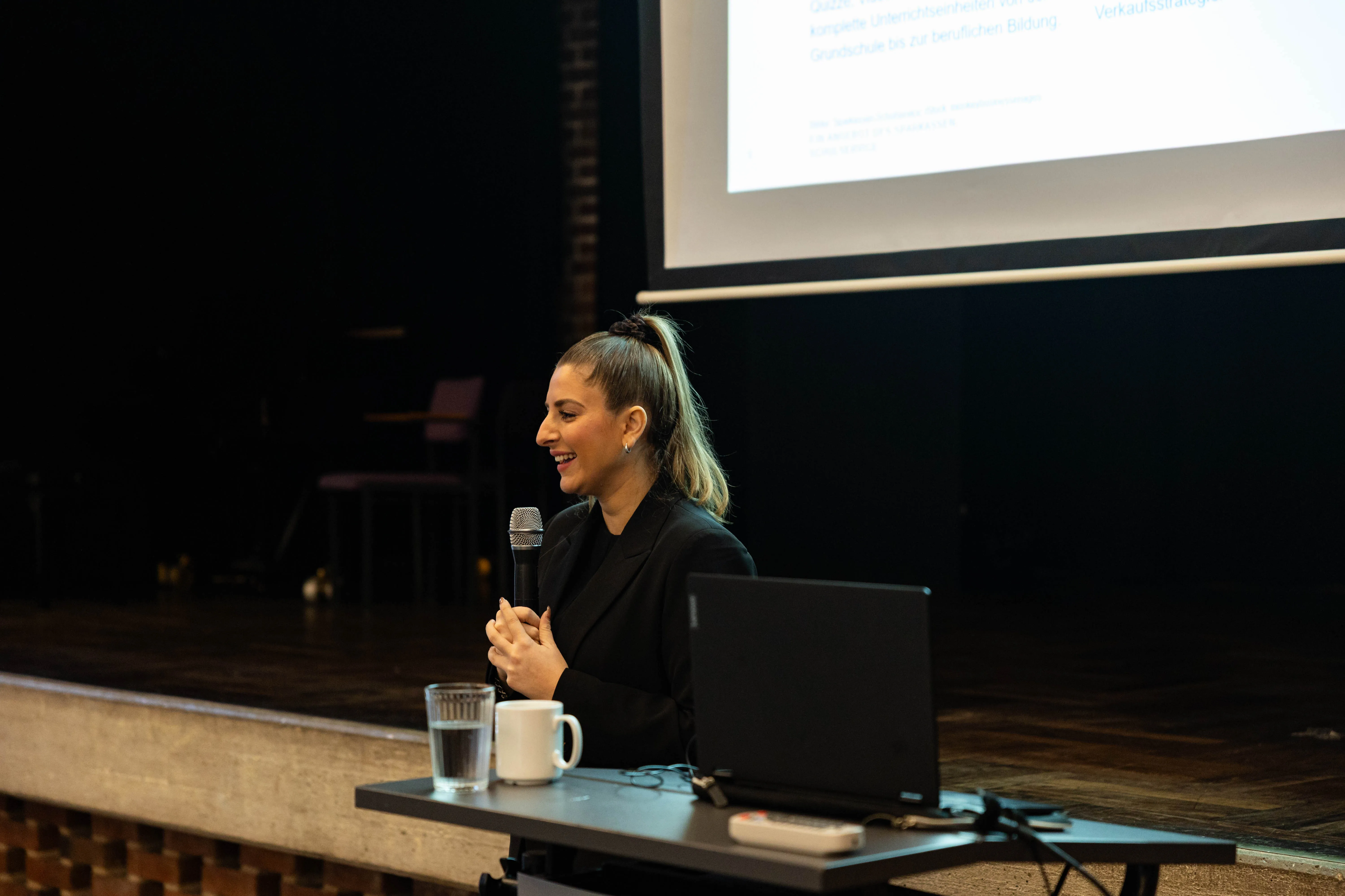"In der Schule kommt das zu kurz", erklärt Lehrerin Christina Wagner im Hinblick auf das Thema Finanzen. "Es gibt zu wenig Wissen darüber. Wer unsere Welt verstehen will, gerade mit Blick auf die aktuelle Rentendiskussion, braucht das." Da ihr das Thema im Curriculum zu kurz kommt, hat sie für eine Vortragsveranstaltung Emily Vitale eingeladen. Die 25-jährige Bankkauffrau hält regelmäßig Vorträge in Schulen und sieht ihr junges Alter als großen Pluspunkt. Mit einem Bachelor in Banking und einem Masterstudium im Anschluss an ihre Ausbildung bringt sie trotzdem umfangreiches Fachwissen mit, was sie den Schülern vermittelt.