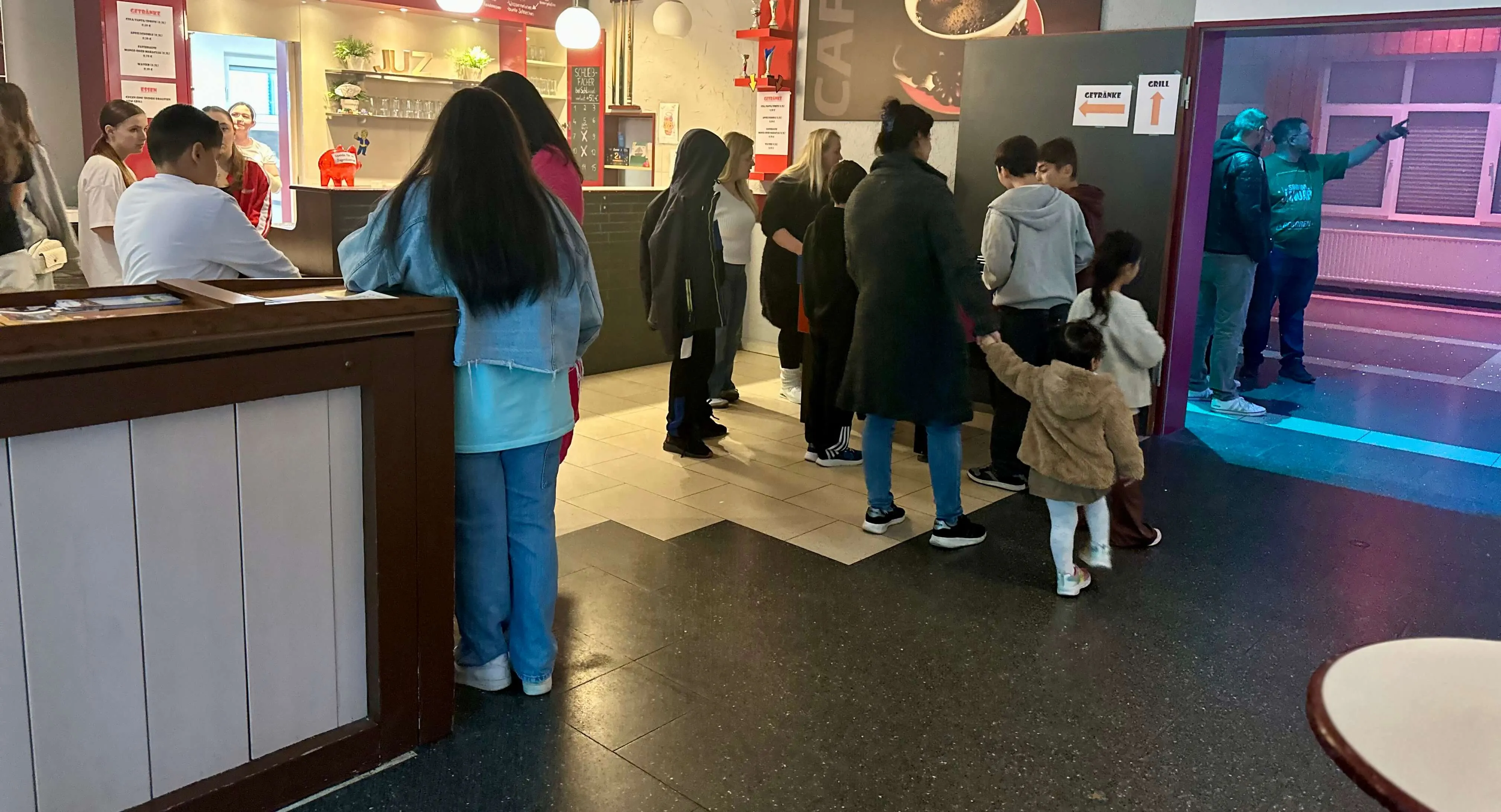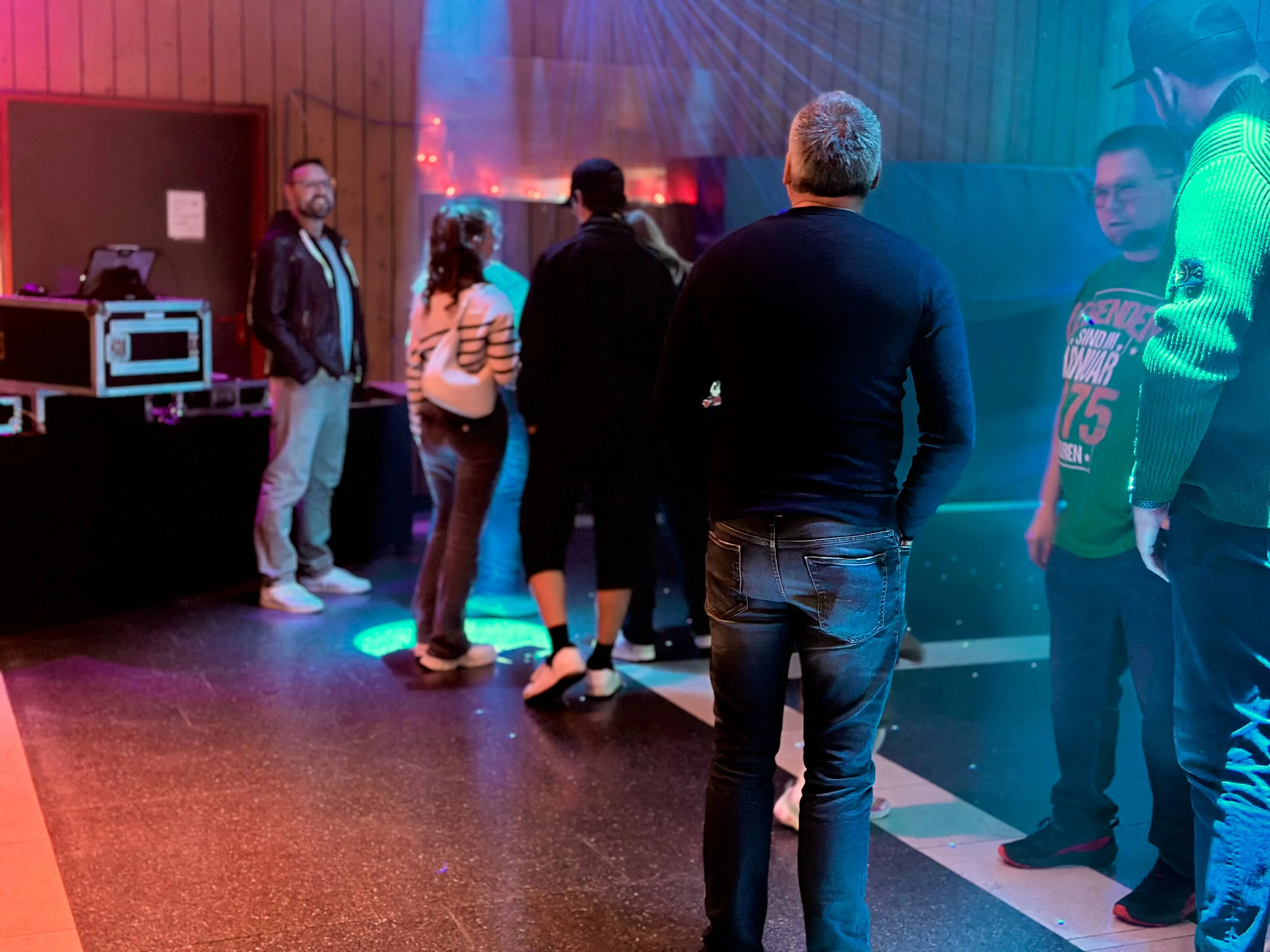 Einer der Aufenthaltsräume wurde zur Tanzfläche umfunktioniert, Discokugel und bunte Beleuchtung sorgten für Partystimmung. Getränke und Grillgut wurden zu moderaten Preisen verkauft, und auch vegetarische Alternativen standen bereit.