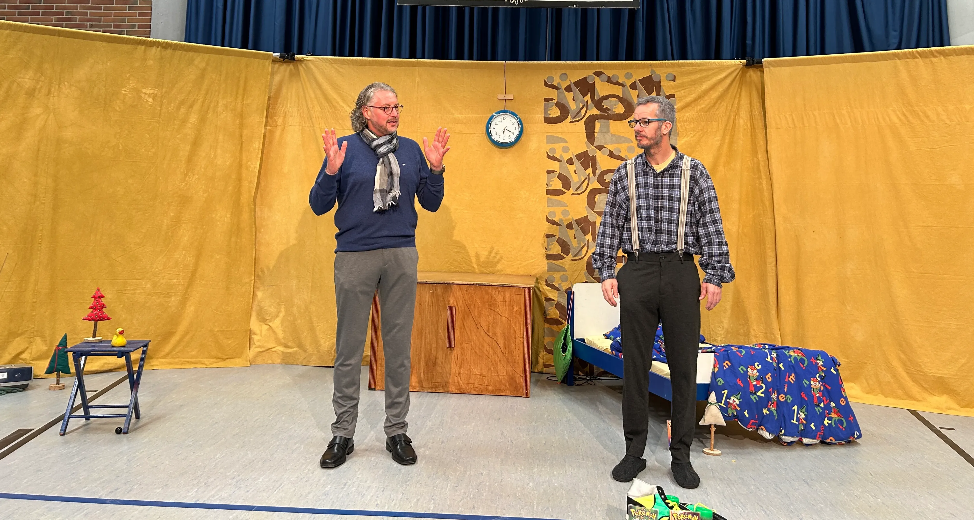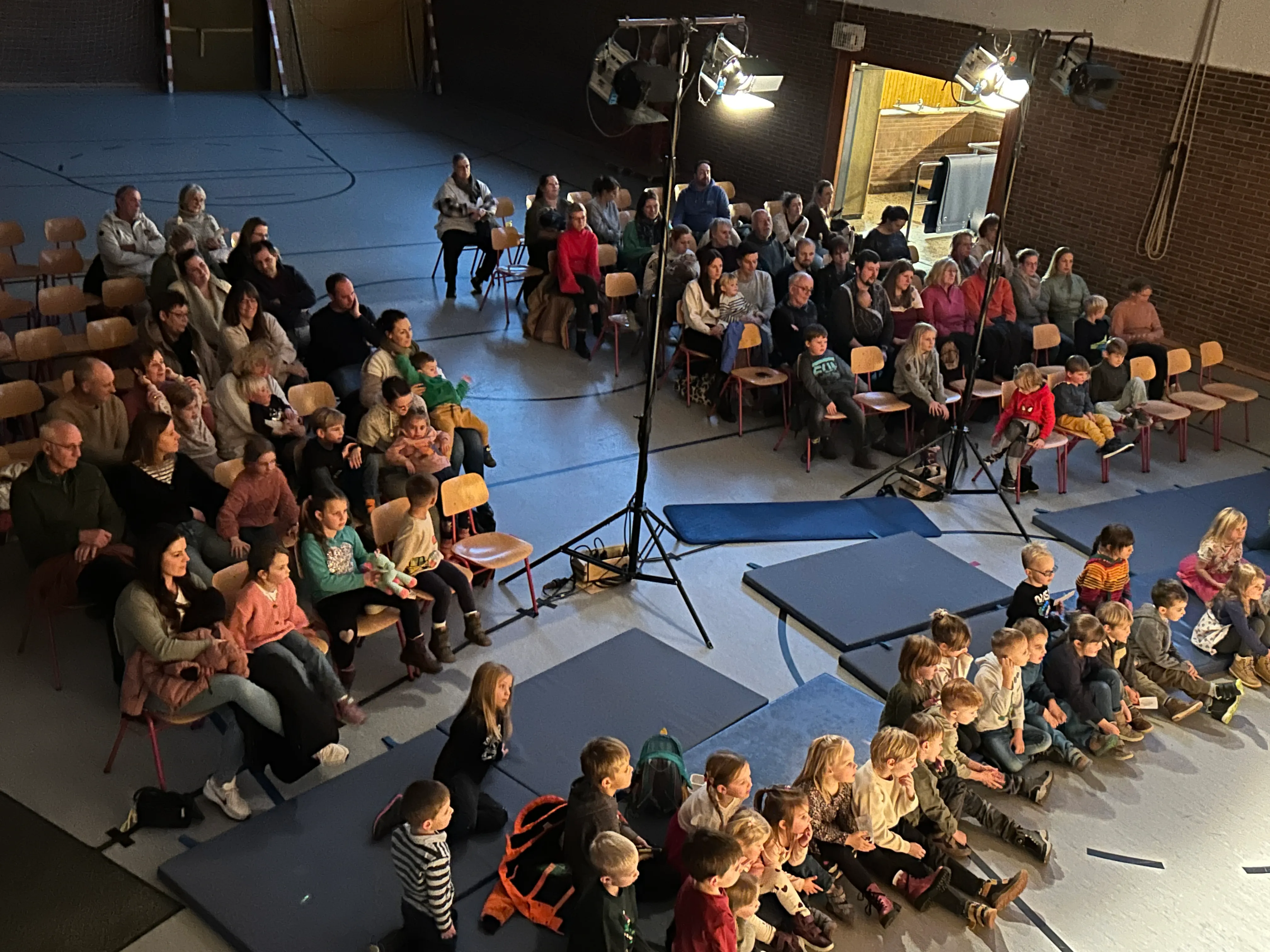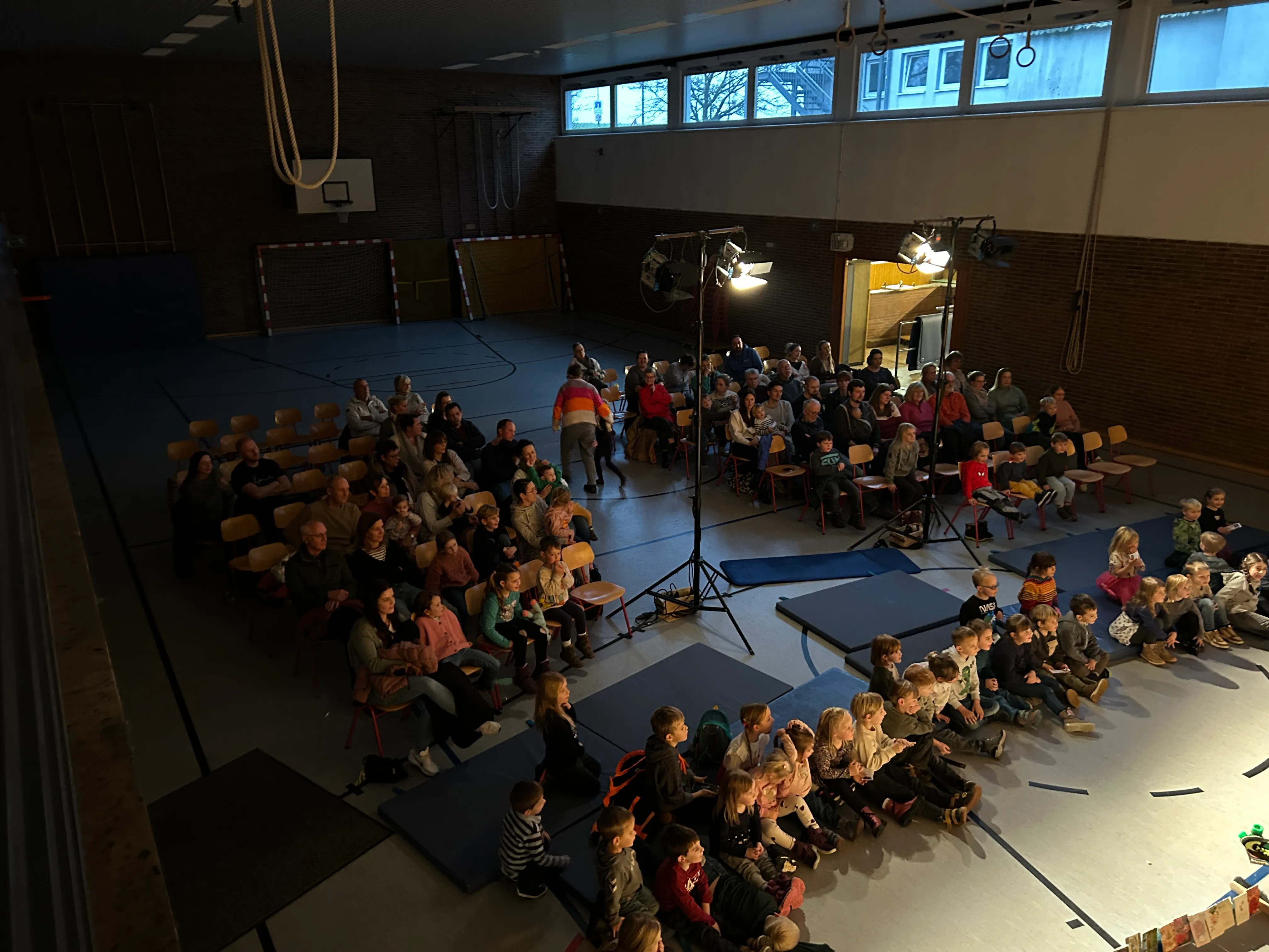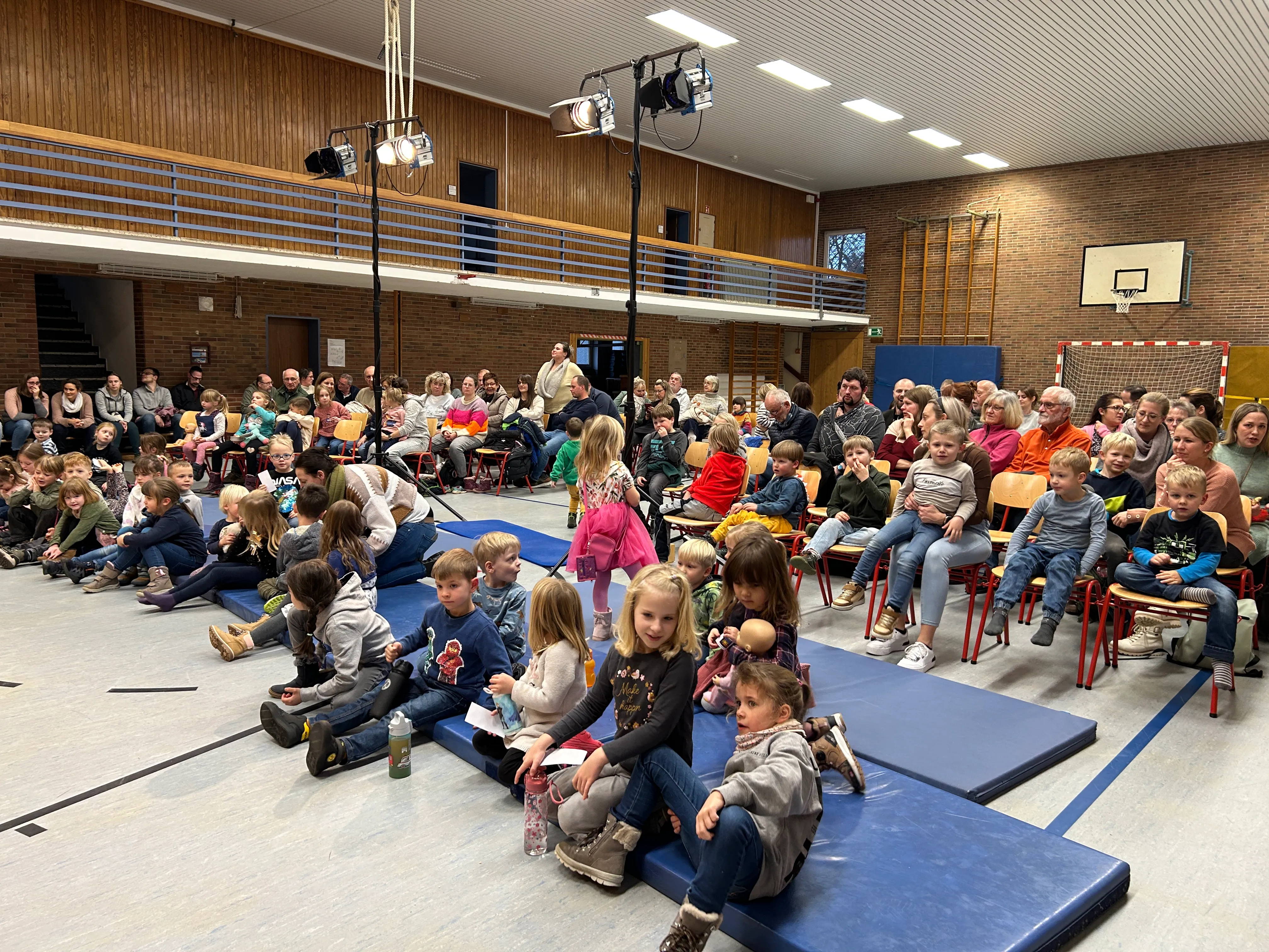 Knapp eine Stunde lang gelang es den Schauspielern, sowohl die Kinder als auch die Erwachsenen in der Sporthalle mit auf die Reise zu nehmen. Immer wieder war das junge Publikum gefragt, wenn es darum ging, Wörter zu buchstabieren, Lieder zu singen oder entscheidende Hinweise zu geben.