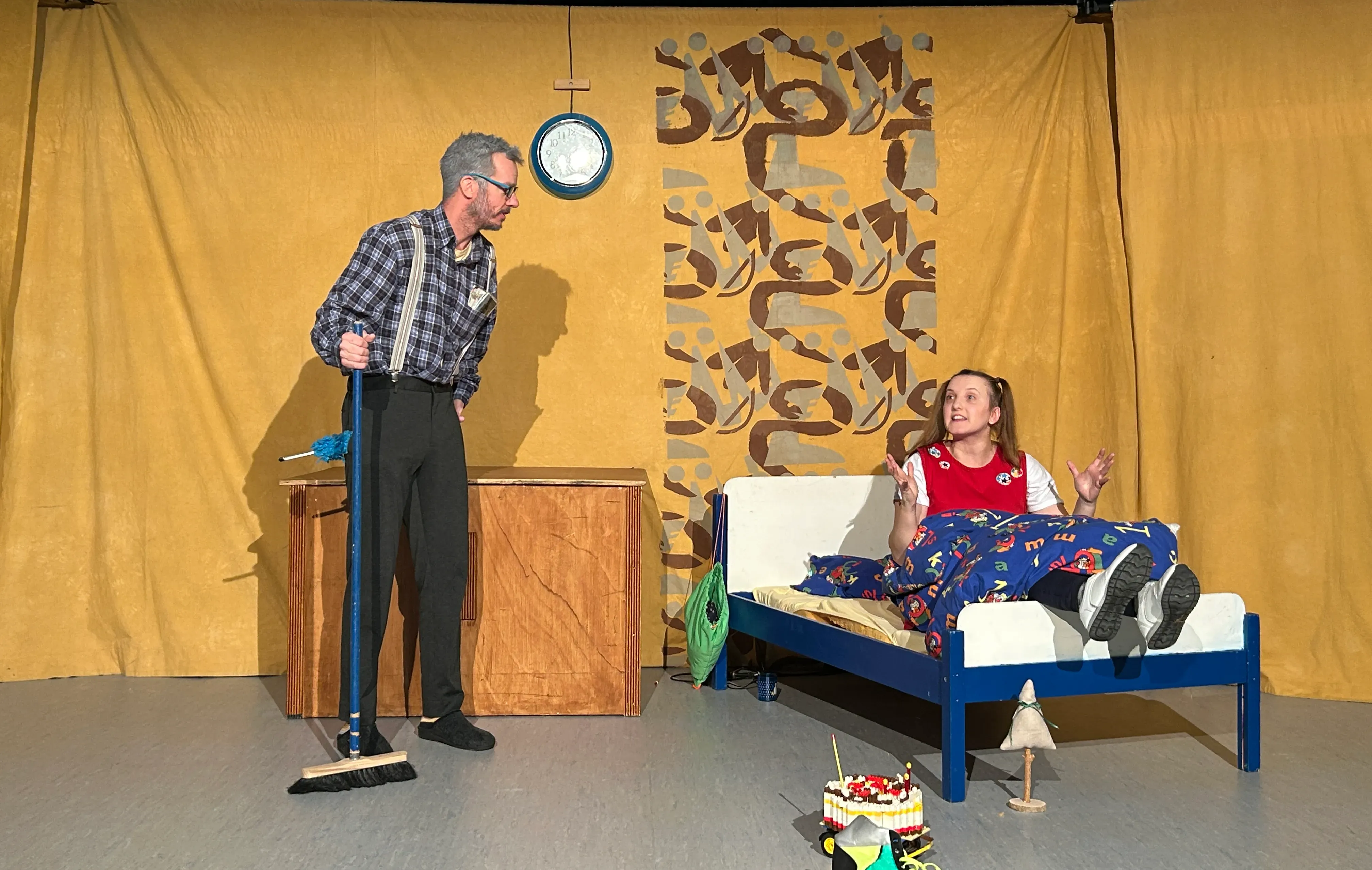 In der Nacht taucht dann plötzlich Bert, der verloren geglaubte Teddy, in Merles Kinderzimmer auf und hat die entscheidenden Ideen, um nicht nur Merles, sondern auch den Geburtstag von Opa Theo, der auf denselben Tag fällt, zu retten. Und so endet das Stück mit einer großen Geburtstagsparty, einer Torte und einem Lied.
