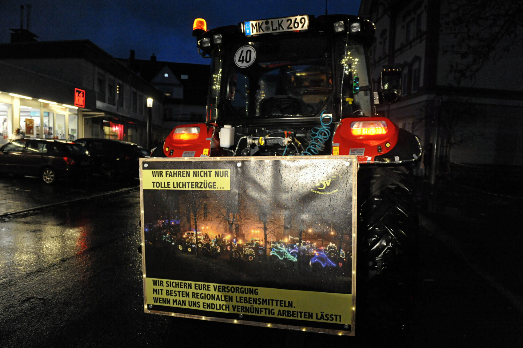 Die Demonstration in Plettenberg und Herscheid hatte Björn Kirchhoff, Landwirt in Pasel, organisiert. Die Fahrt sei als Appell an die Bürger zu verstehen, dass beim Kauf eben nicht nur auf den Preis, sondern auch auf die Herkunft der Produkte geachtet werden sollte, betonte Kirchhoff. An vielen der 35 Traktoren, die nach Zählung durch die Polizei teilnahmen, waren Plakate und Banner mit entsprechenden Appellen und Slogans angebracht. „Es geht bei der Lichterfahrt auch darum, auf die Bedeutung der Landwirtschaft aufmerksam zu machen und das Image mit dieser Art positiver Demonstration zu verbessern“, erklärte Kirchhoff.