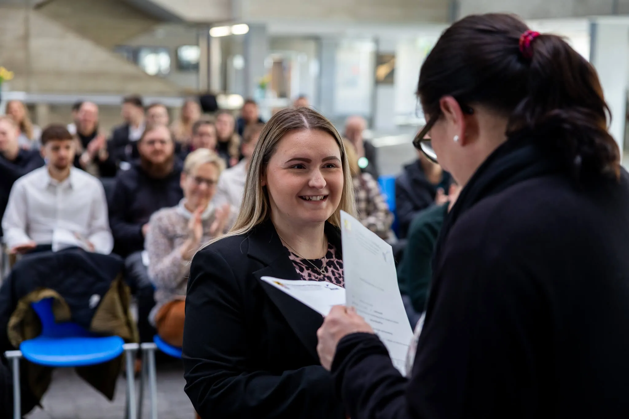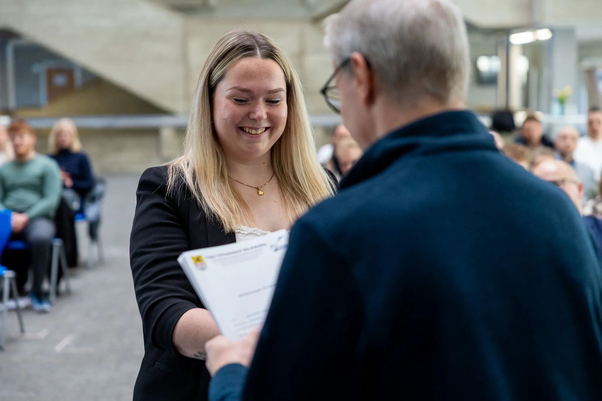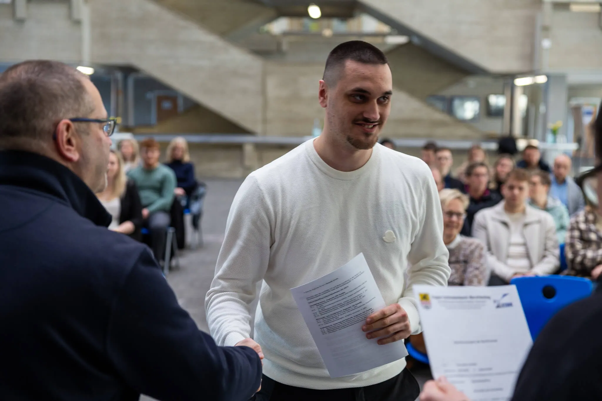Sie spricht weiterhin von einem bemerkenswerten Durchhaltevermögen und bedankt sich bei allen, die die Auszubildenden auf ihrem Weg zum Abschluss unterstützt haben – darunter die Ausbilder, die Kollegen des ESBK sowie die Familie, die während der 2,5 Jahre ihre Hilfe angeboten haben.