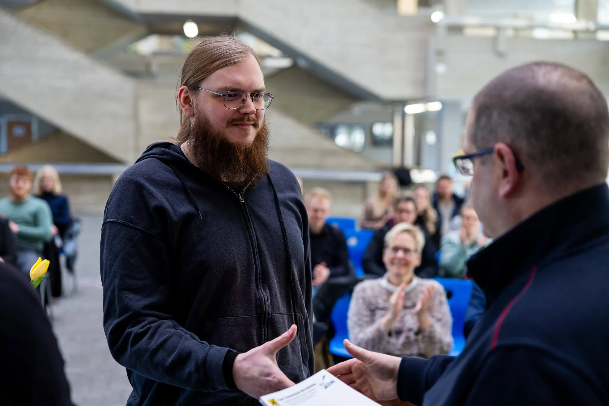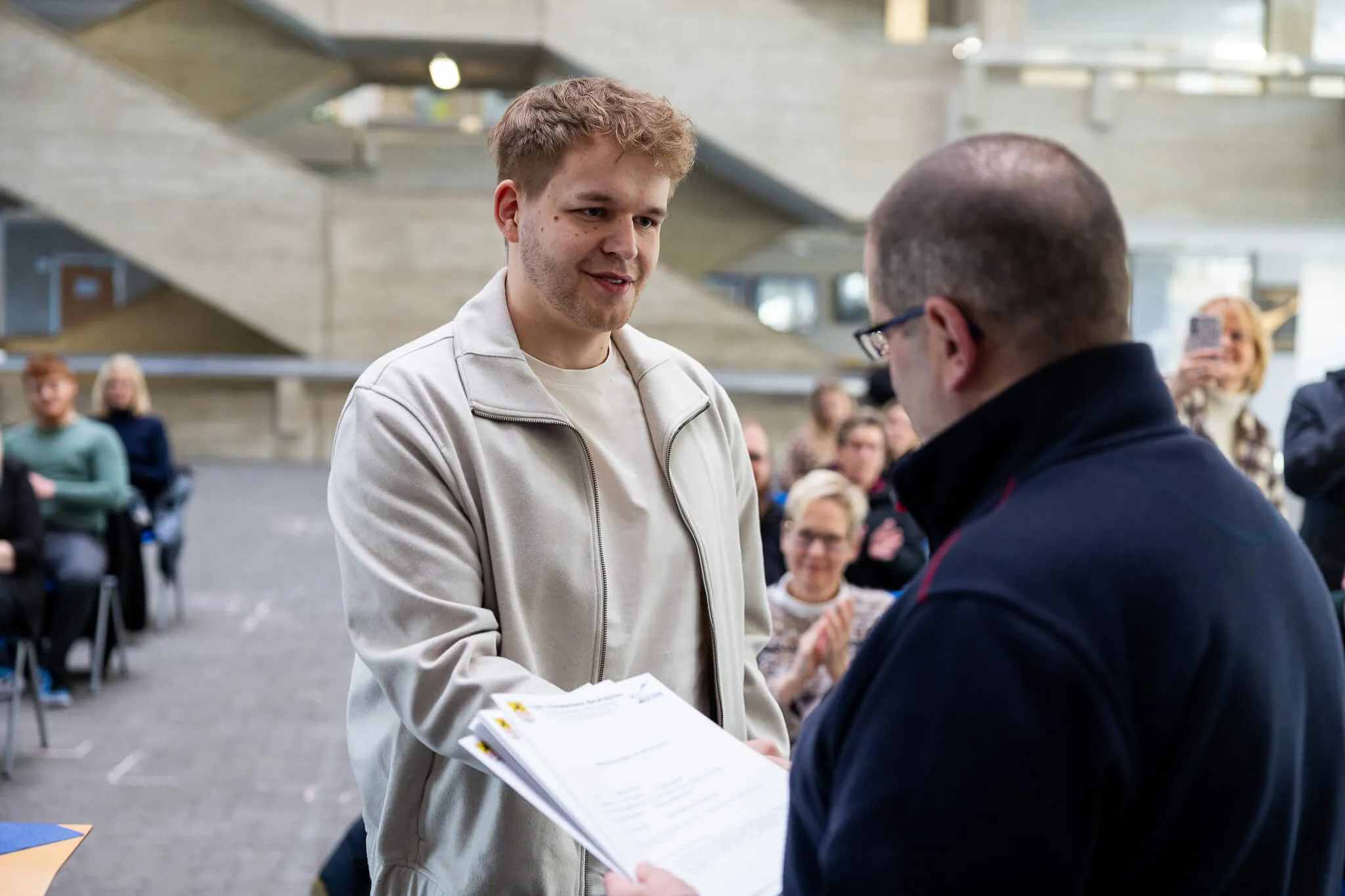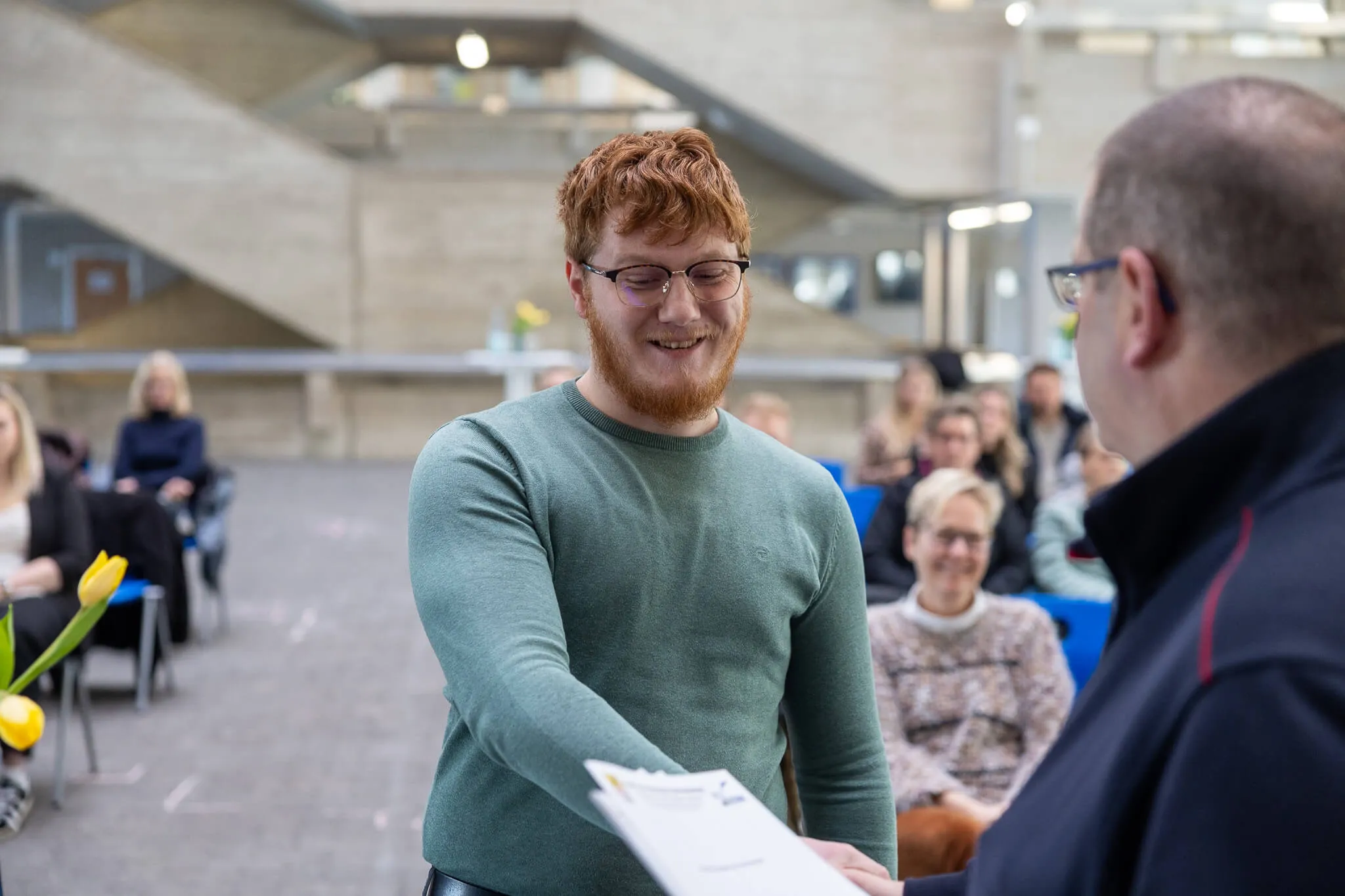 Sie spricht weiterhin von einem bemerkenswerten Durchhaltevermögen und bedankt sich bei allen, die die Auszubildenden auf ihrem Weg zum Abschluss unterstützt haben – darunter die Ausbilder, die Kollegen des ESBK sowie die Familie, die während der 2,5 Jahre ihre Hilfe angeboten haben.