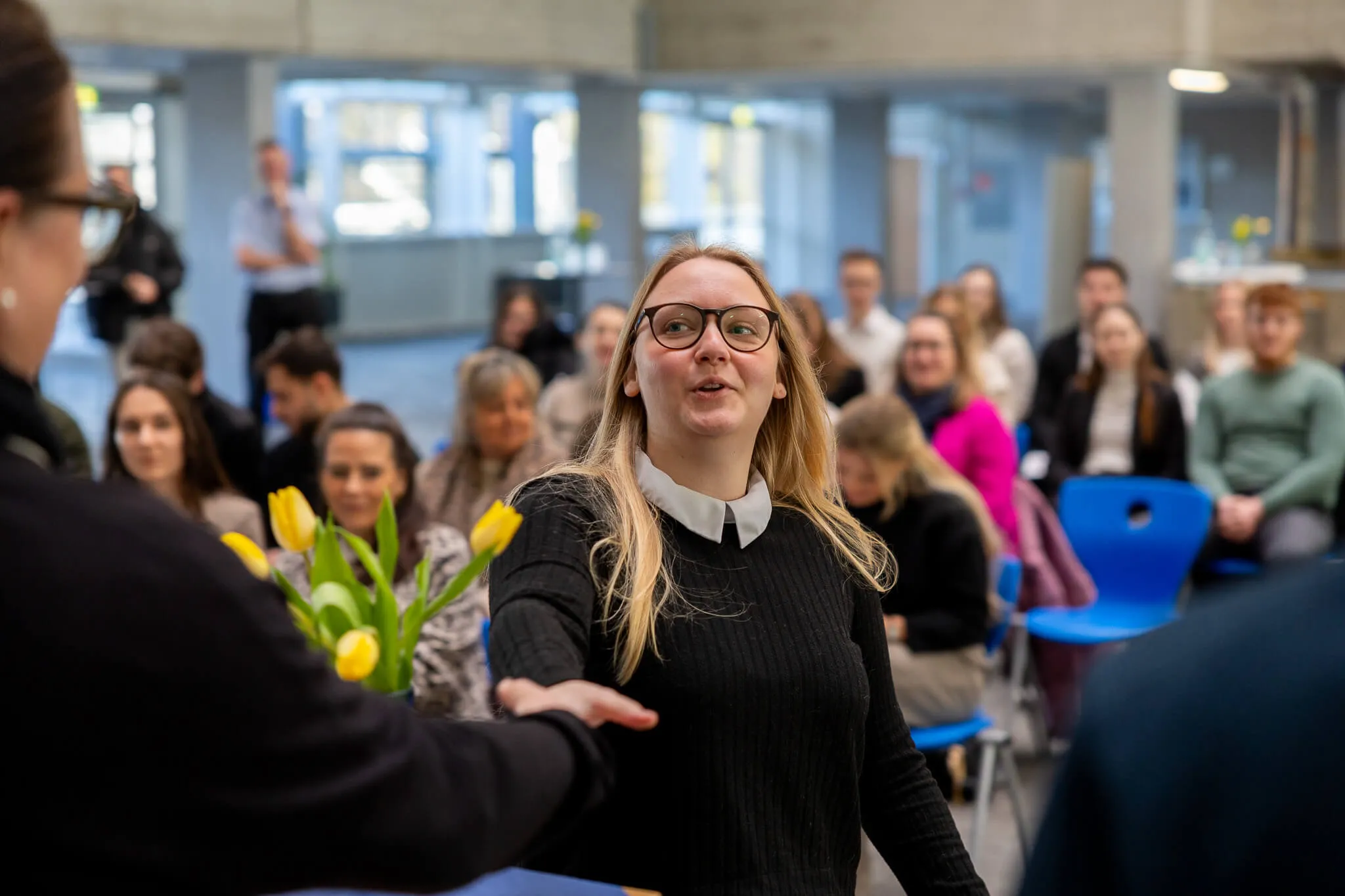 In ihrer Rede blickt Sabine Winter, Abteilungsleiterin am ESBK, gemeinsam mit den Absolventen auf den Beginn ihrer Berufsschulzeit zurück: „Am ersten Tag an dieser Schule betratet ihr eine neue, unbekannte Welt. Der erste Stundenplan, viele neue Namen, ungewohnte Abläufe – das war der Startschuss zu einem spannenden Rennen. Gemeinsam haben Sie sich auf den Weg gemacht, haben voneinander gelernt und sind als Team gewachsen."