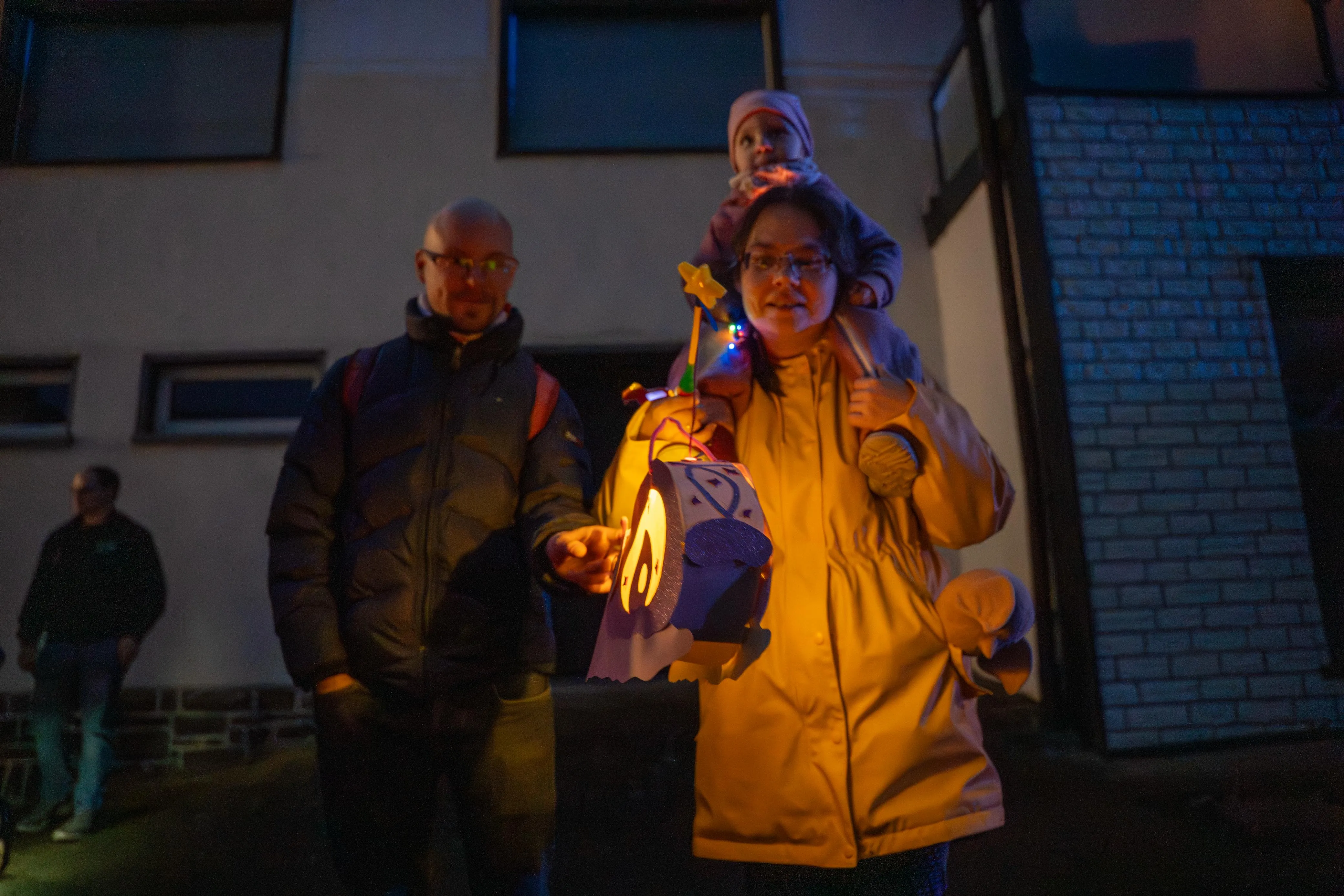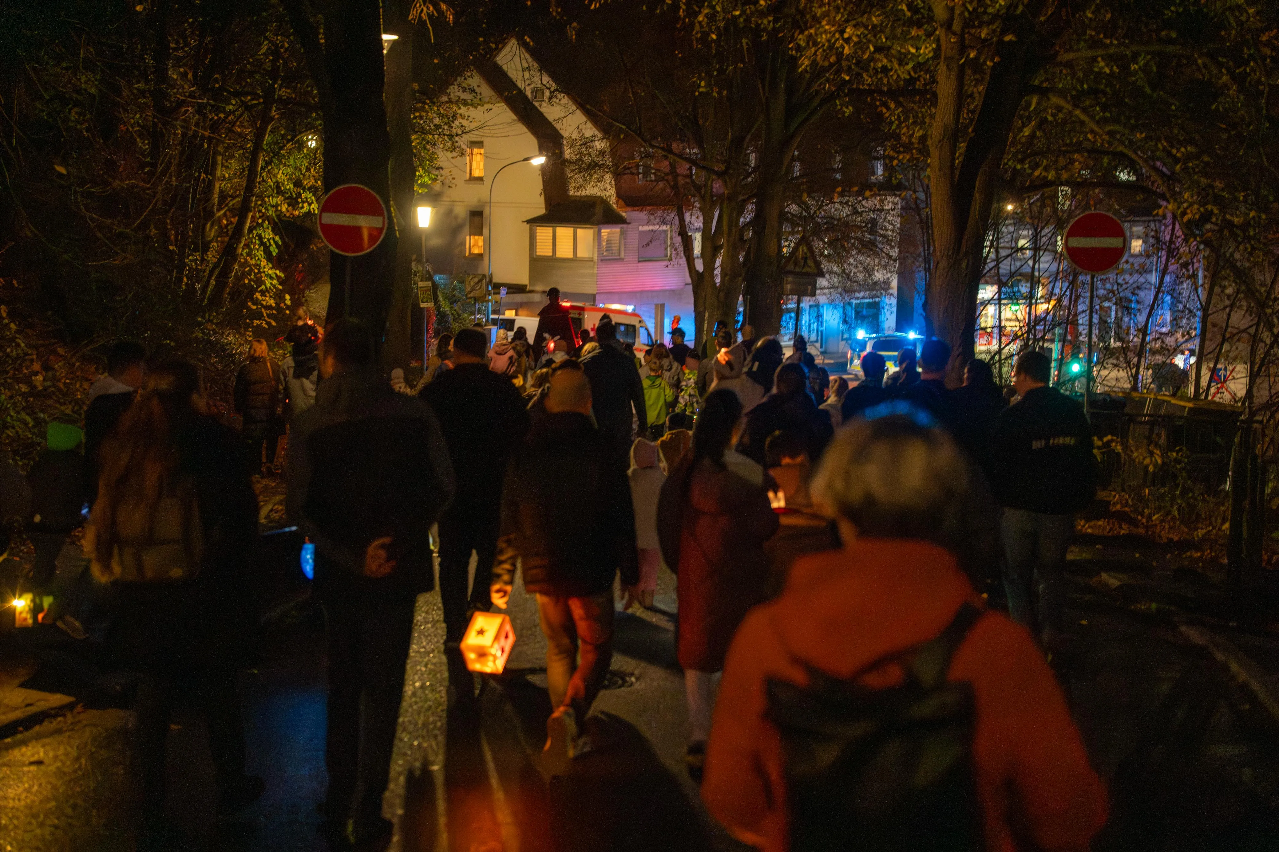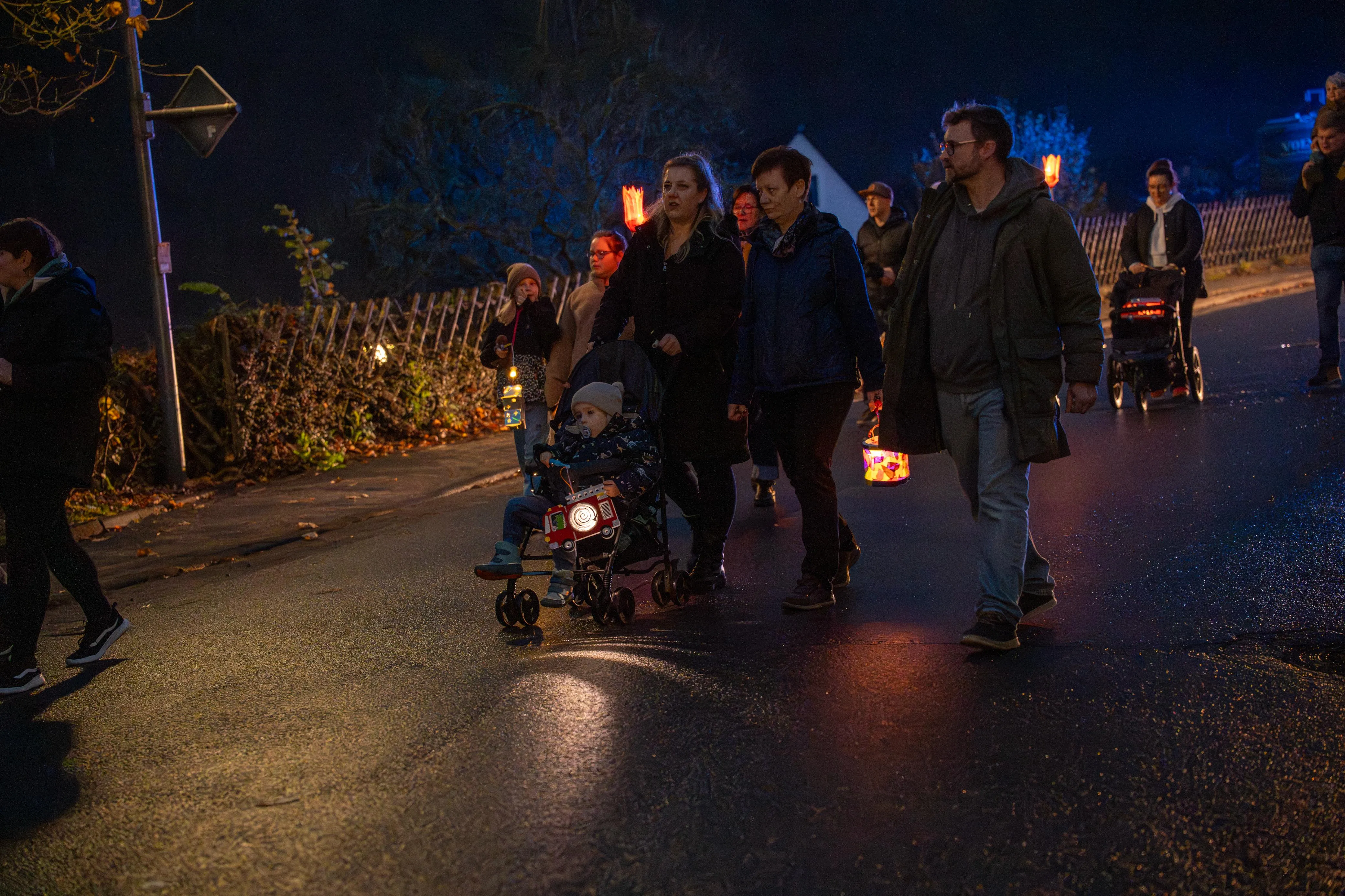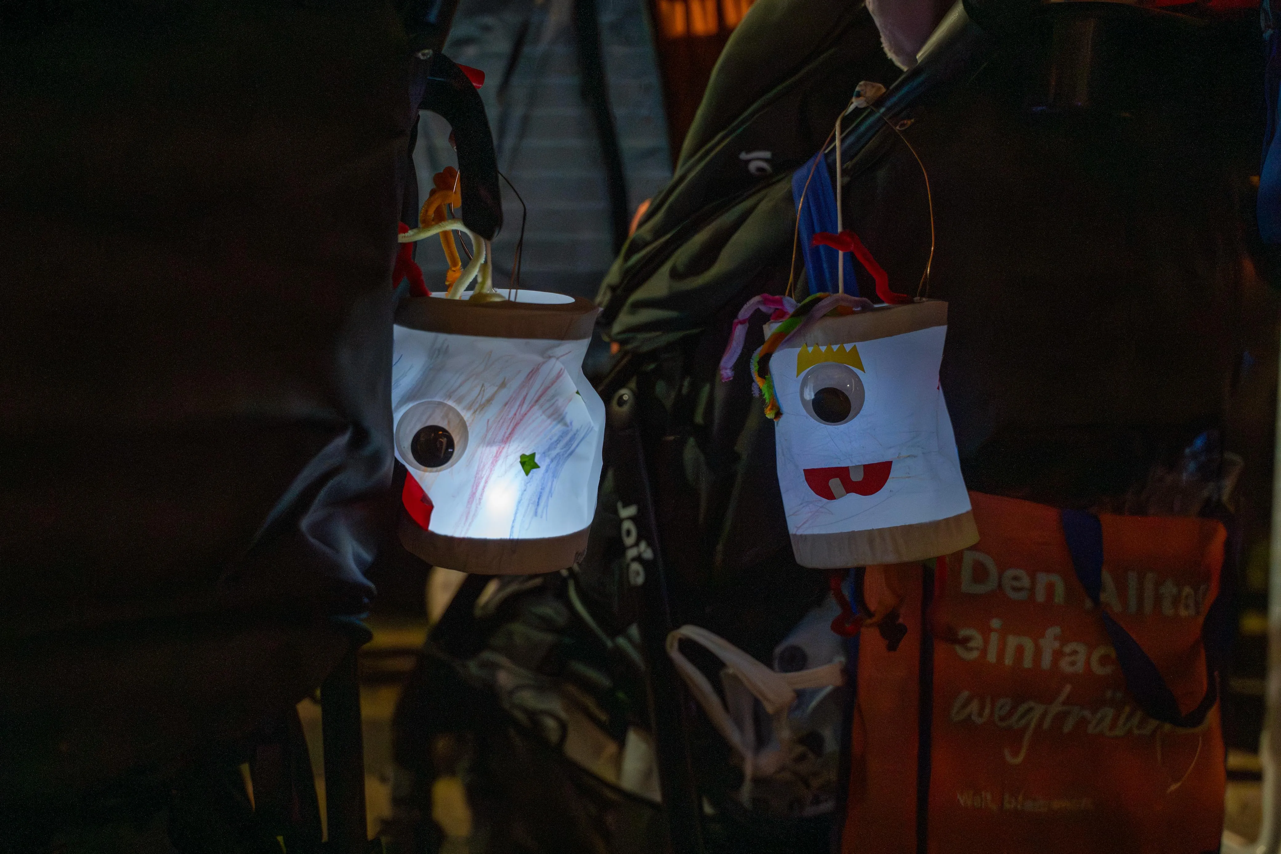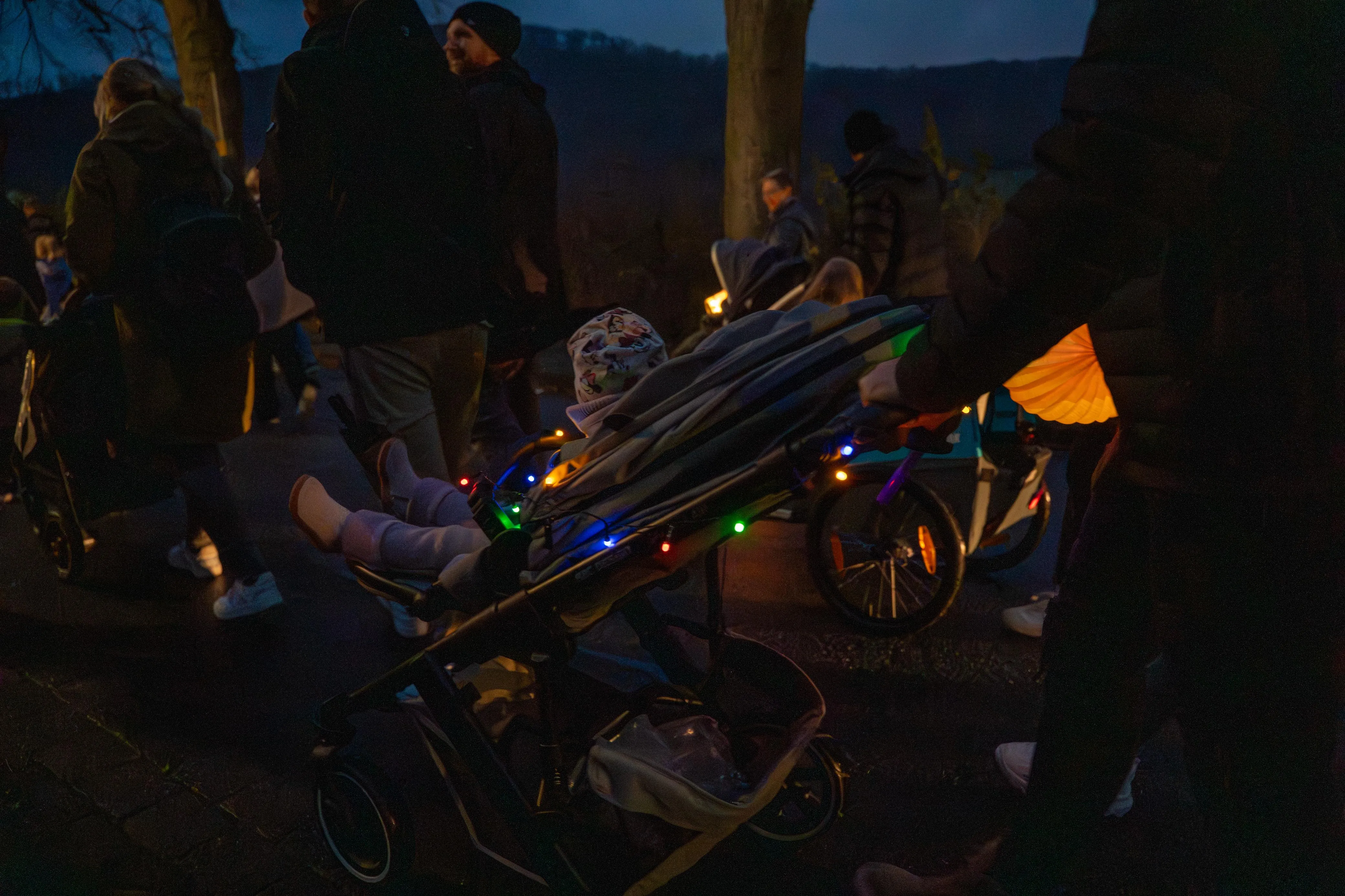Hunderte Laternen erhellten den Weg – gebastelt in Kitas, Schulklassen und an Küchentischen. Da schwebten Sterne neben Eulen, getupfte Papierkürbisse neben kunstvollen Transparentlaternen. Selbst die Jüngsten waren dabei: Viele Eltern hatten ihre Kinderwagen mit Lichterketten geschmückt, die im Dunkel funkelten wie kleine mobile Laternenfahrzeuge.