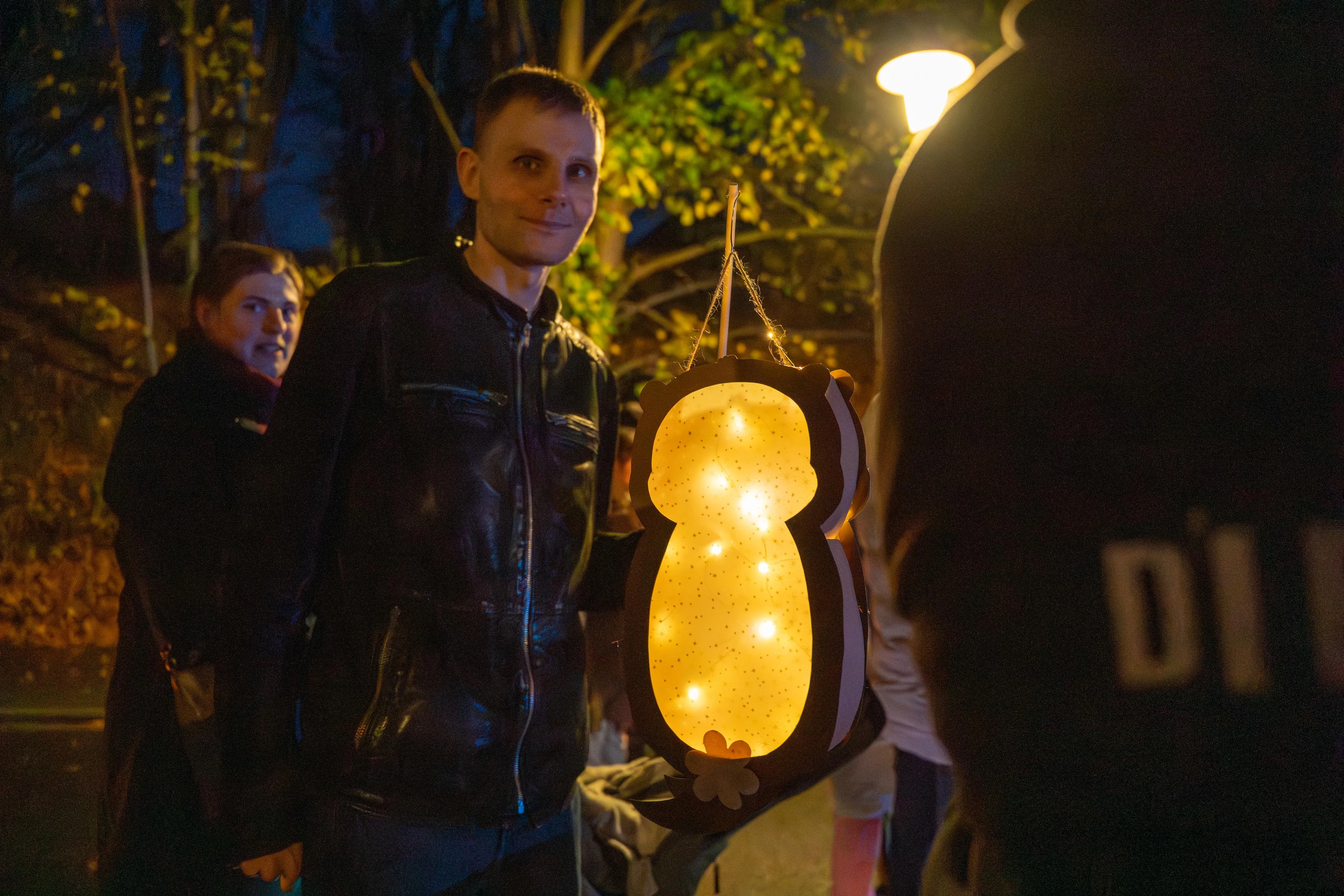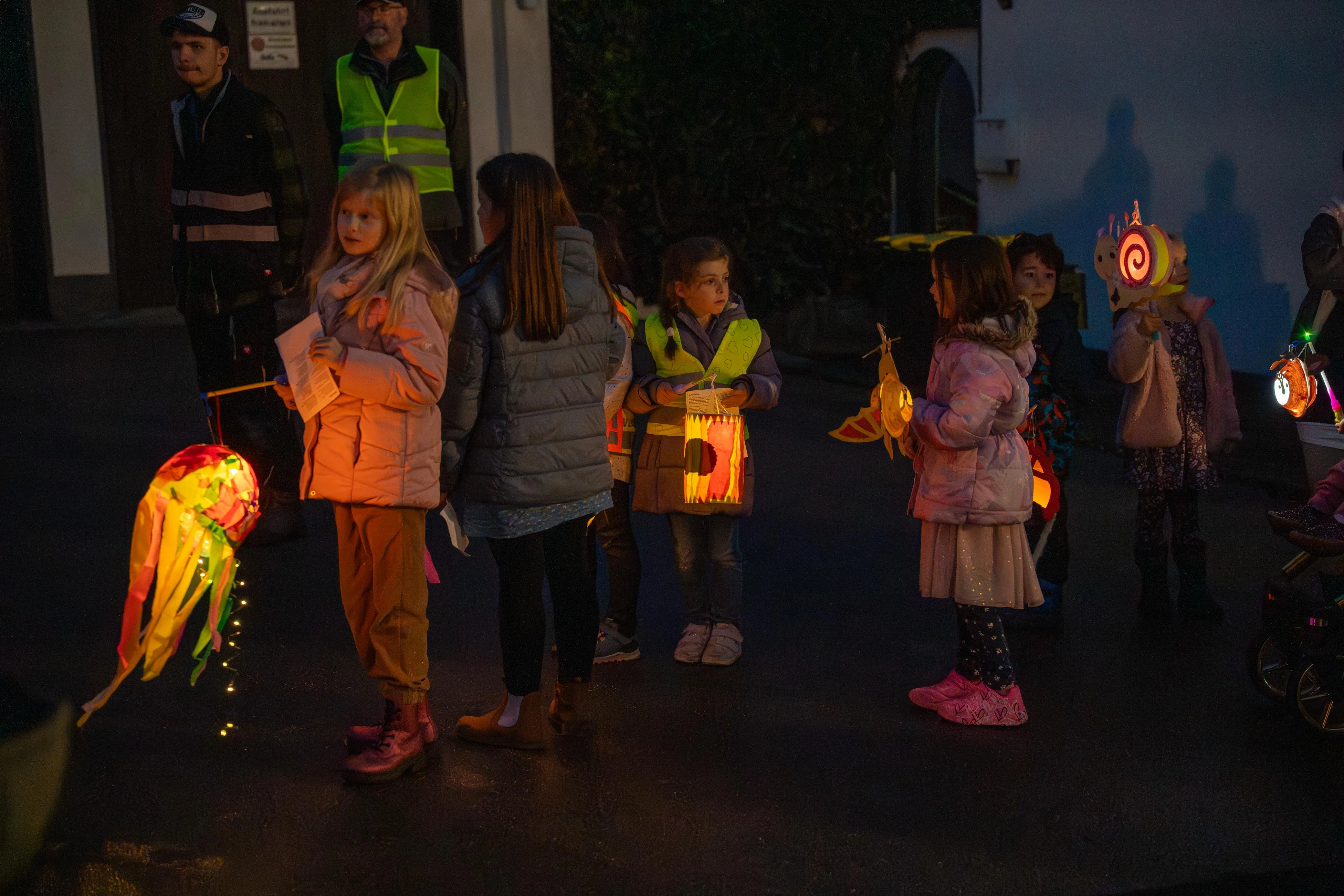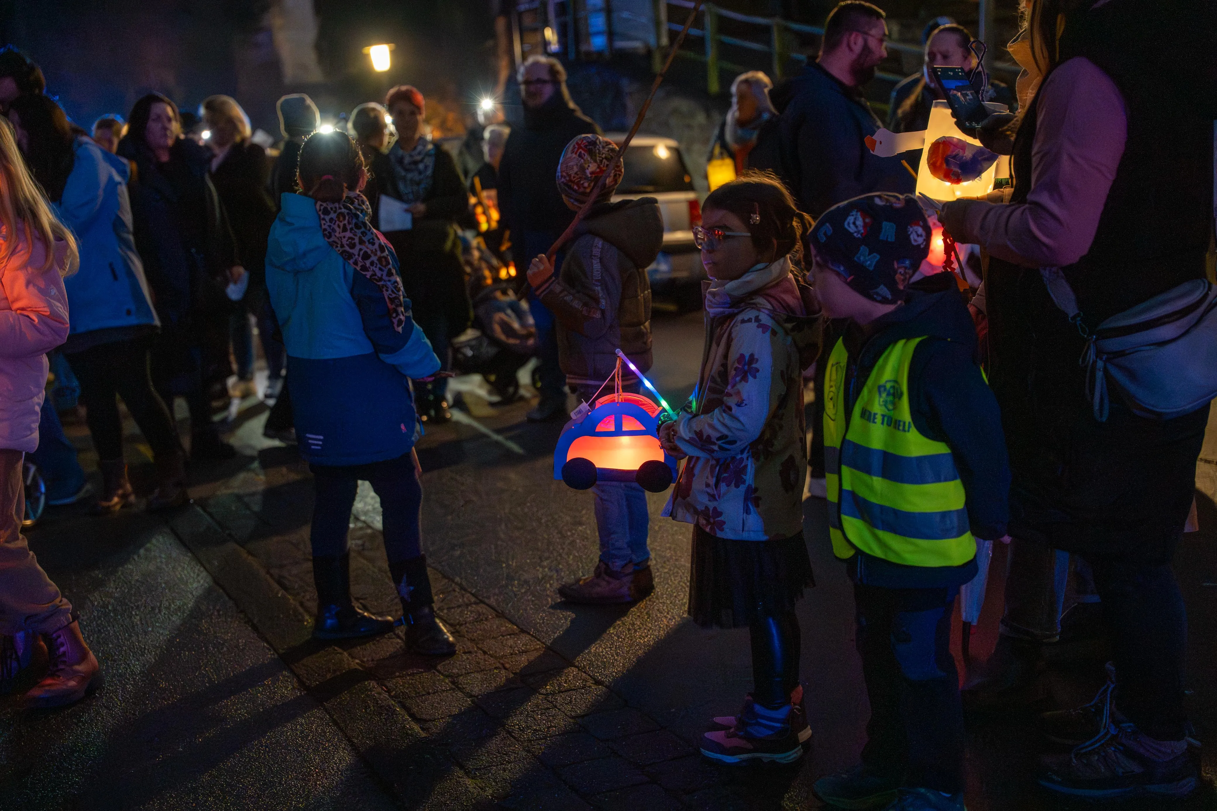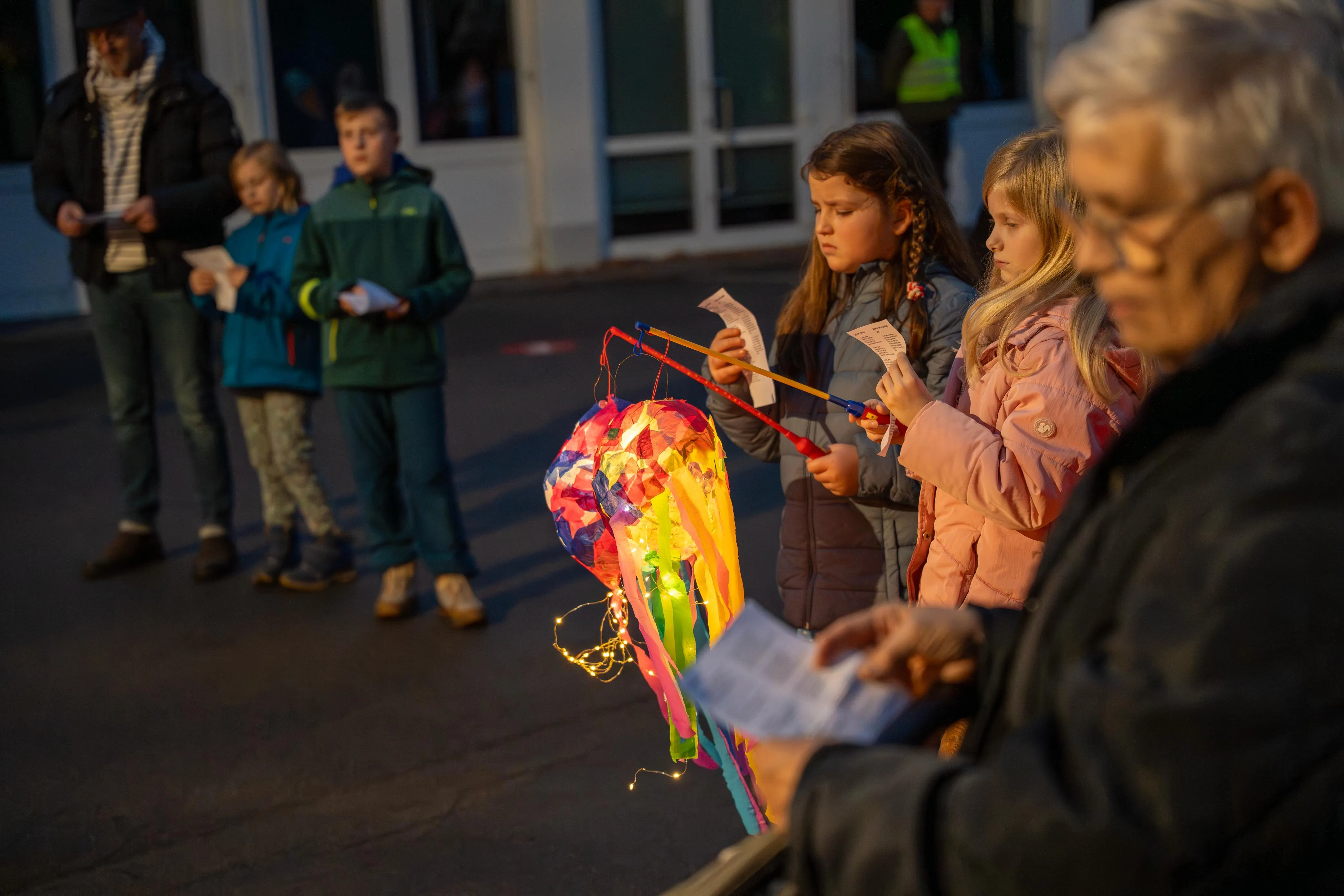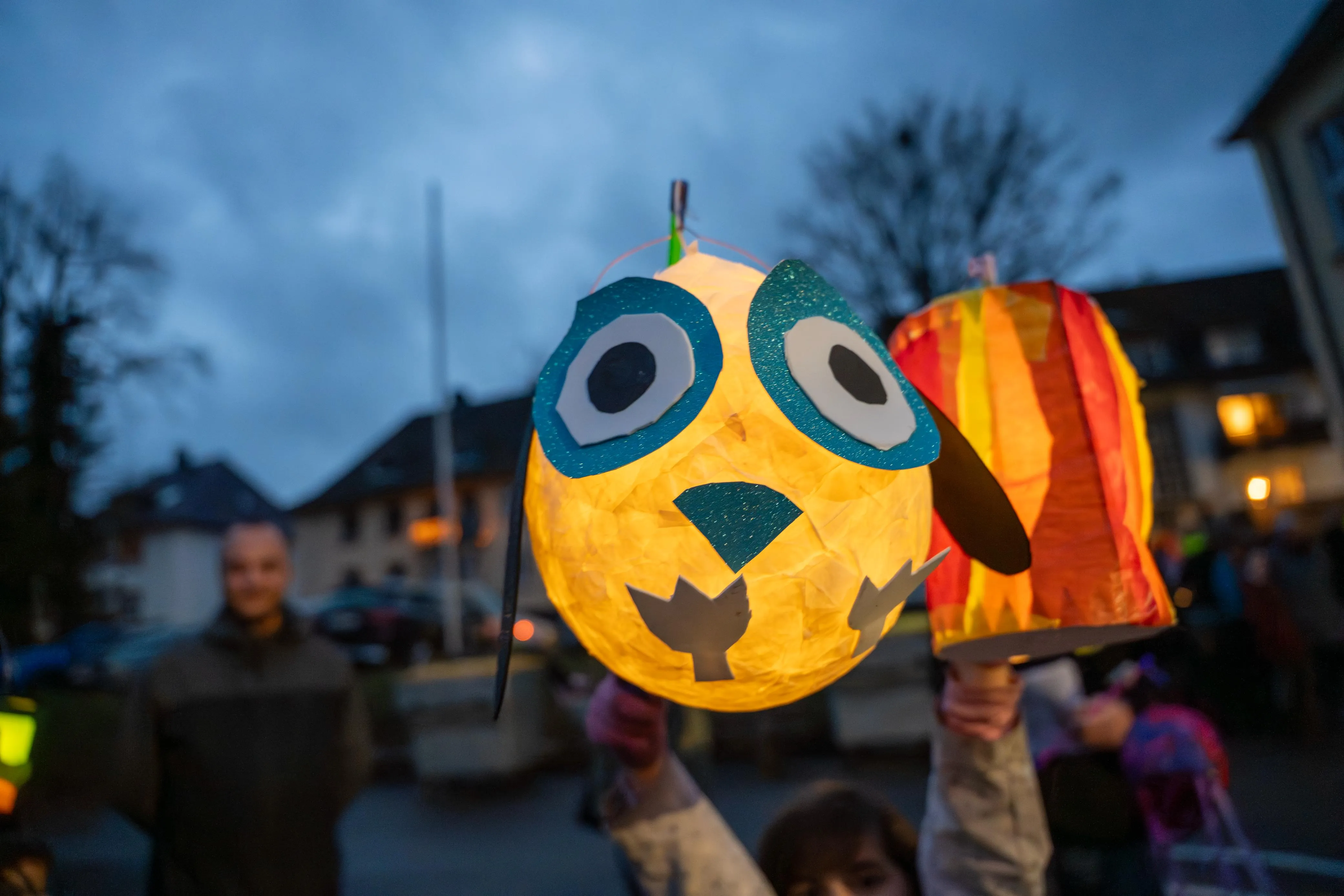Hunderte Laternen erhellten den Weg – gebastelt in Kitas, Schulklassen und an Küchentischen. Da schwebten Sterne neben Eulen, getupfte Papierkürbisse neben kunstvollen Transparentlaternen. Selbst die Jüngsten waren dabei: Viele Eltern hatten ihre Kinderwagen mit Lichterketten geschmückt, die im Dunkel funkelten wie kleine mobile Laternenfahrzeuge.