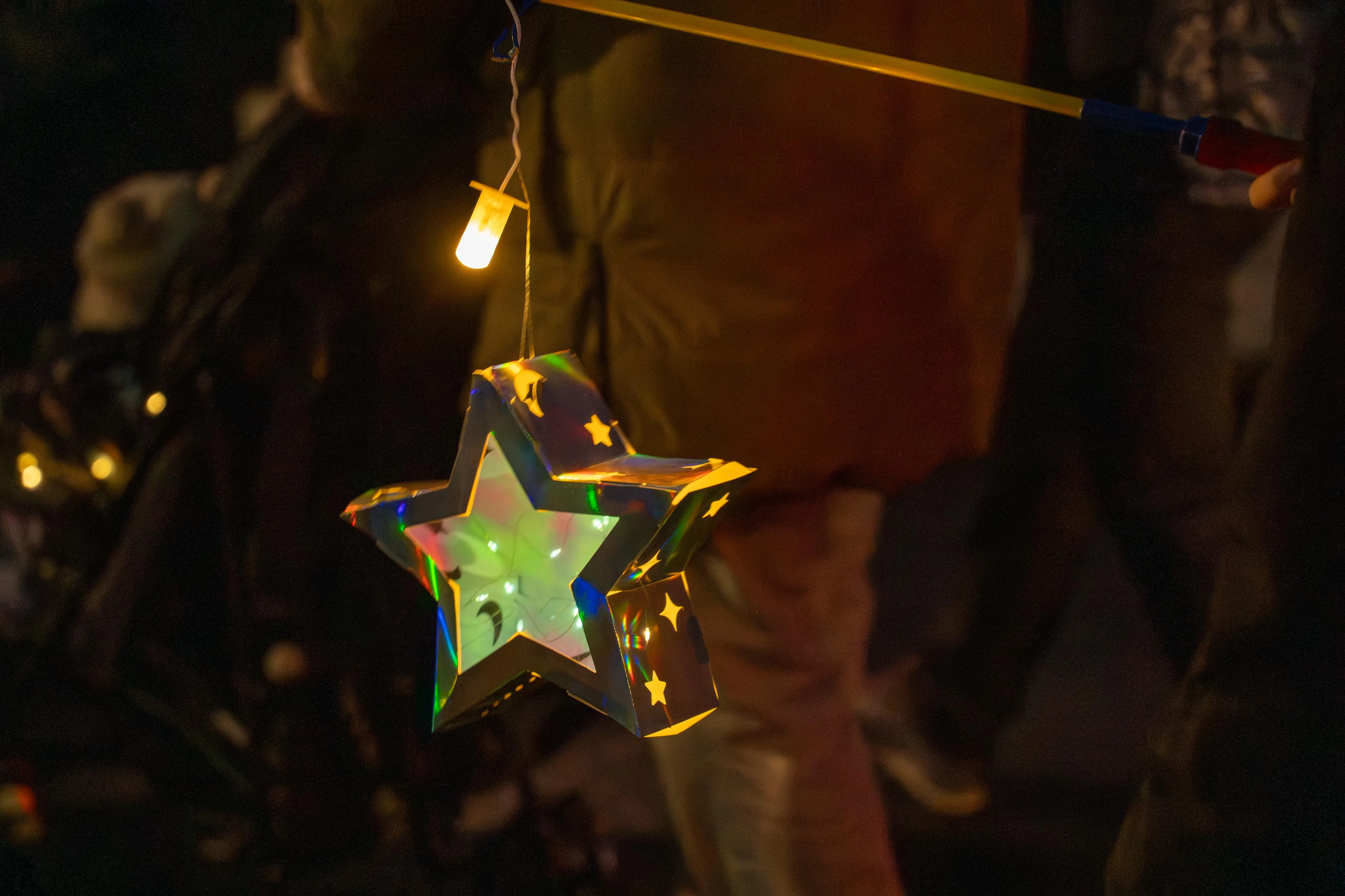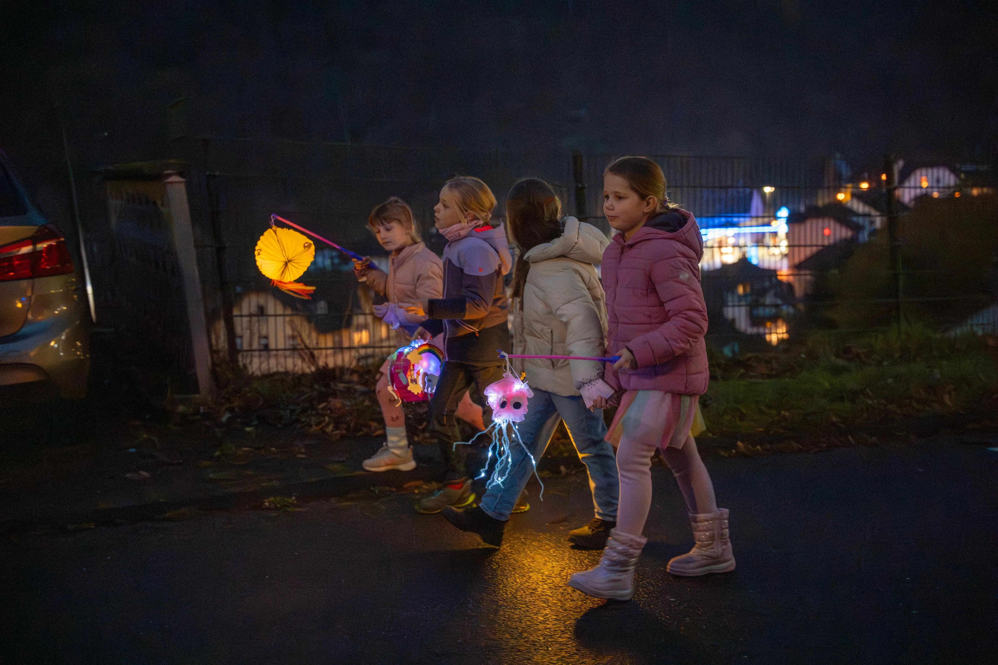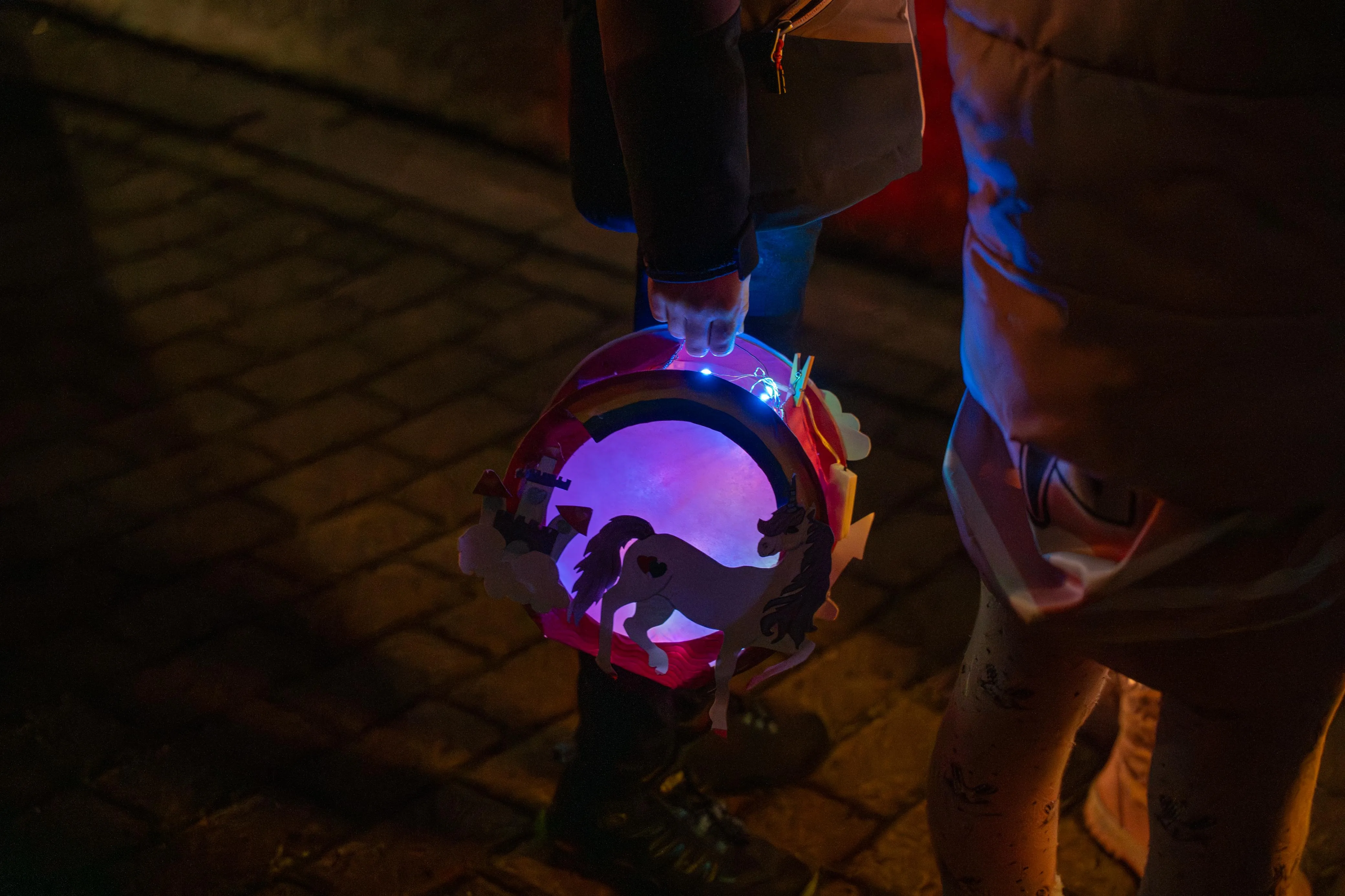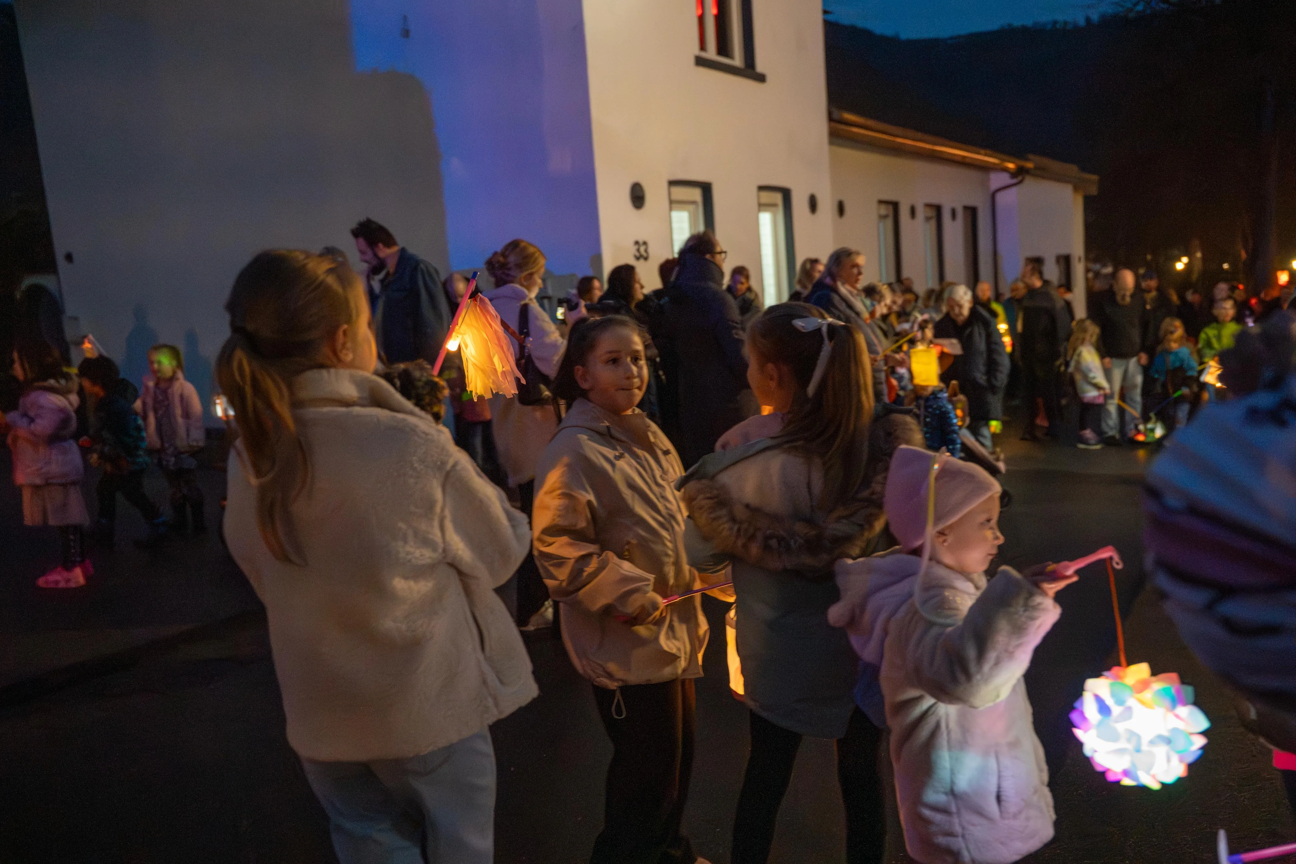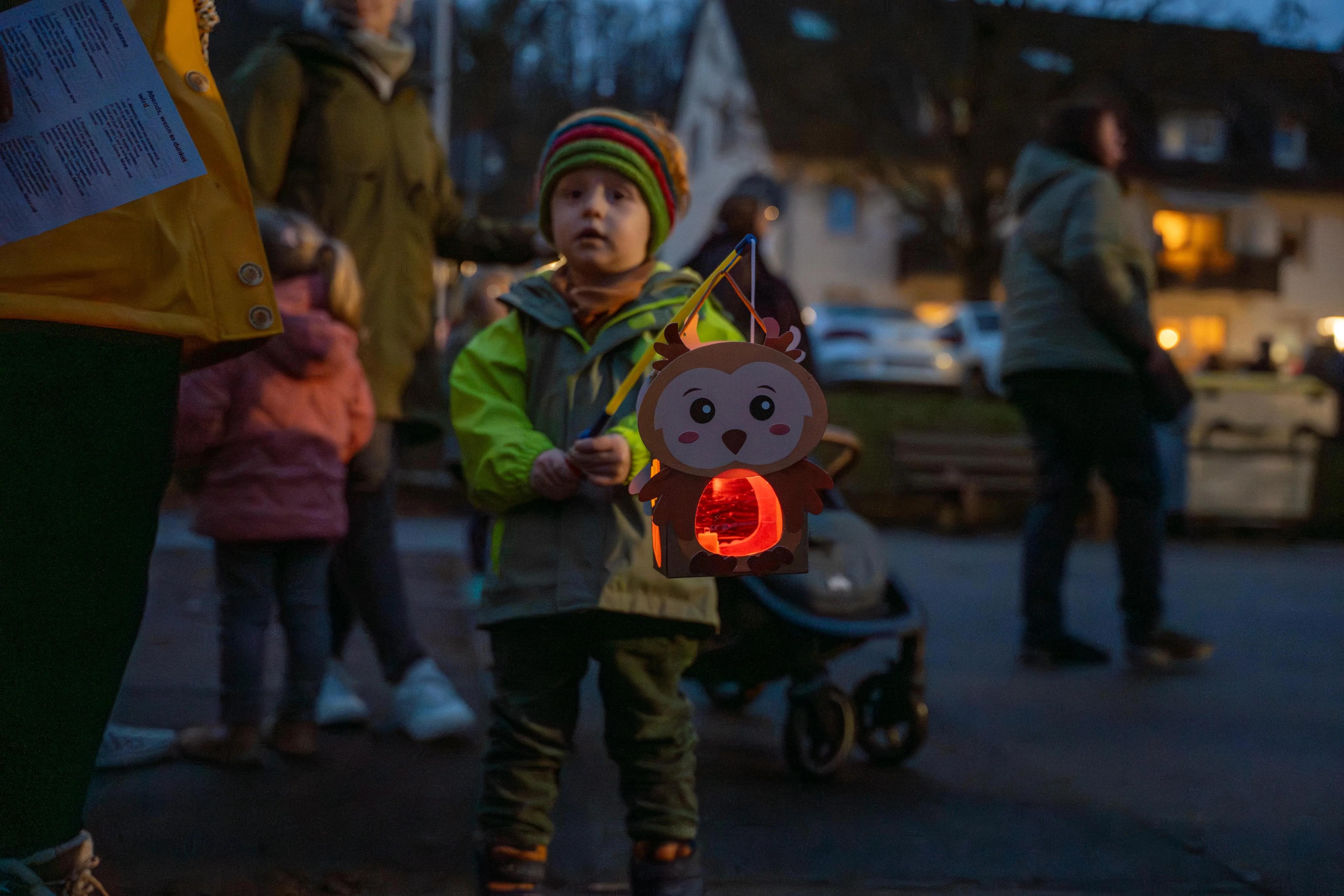 Hunderte Laternen erhellten den Weg – gebastelt in Kitas, Schulklassen und an Küchentischen. Da schwebten Sterne neben Eulen, getupfte Papierkürbisse neben kunstvollen Transparentlaternen. Selbst die Jüngsten waren dabei: Viele Eltern hatten ihre Kinderwagen mit Lichterketten geschmückt, die im Dunkel funkelten wie kleine mobile Laternenfahrzeuge.