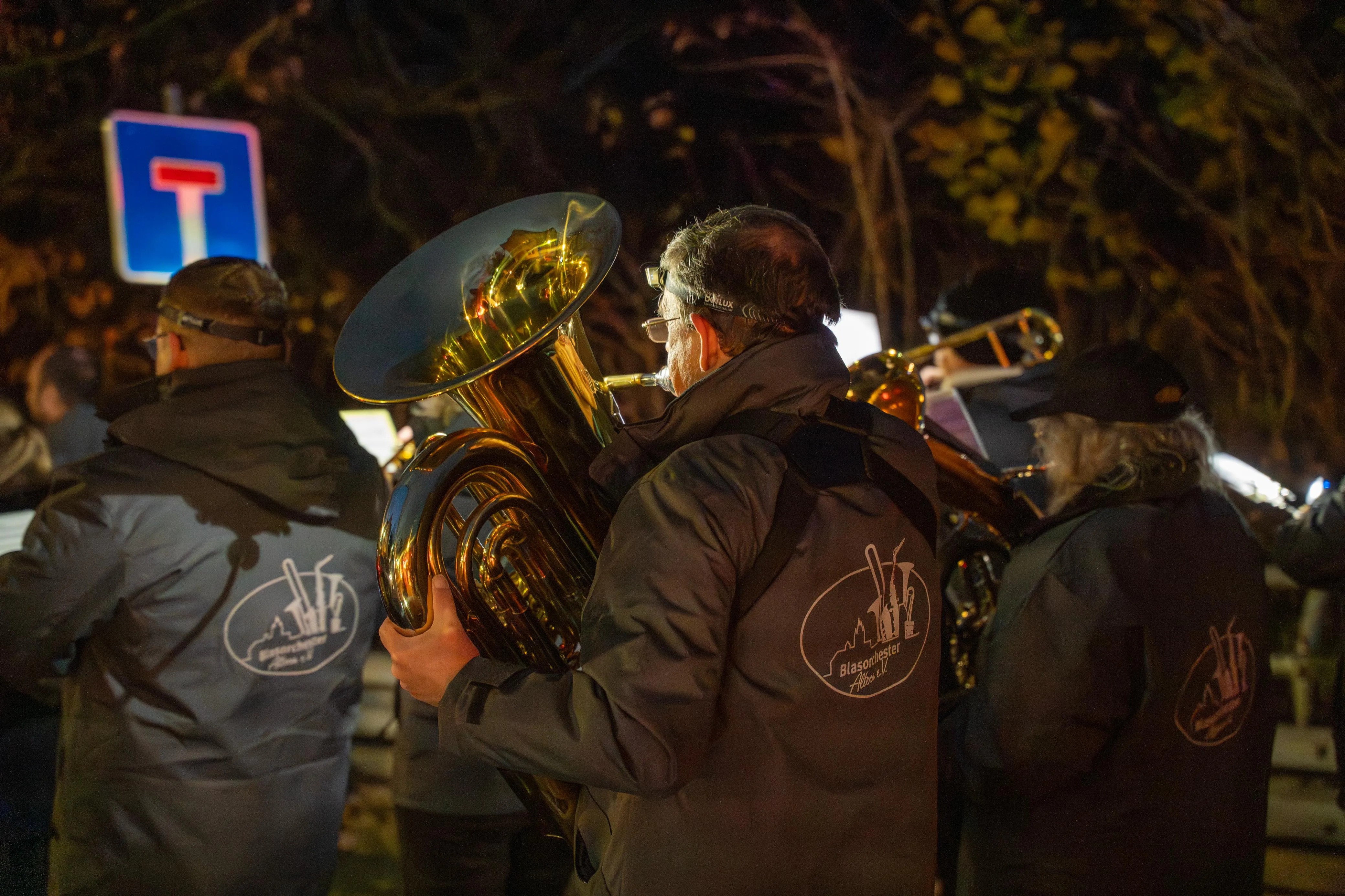 Seit Jahren dabei: das Blasorchester Altena, das mit warmen Klängen das musikalische Herz des Zuges bildete. Mit den ersten Tönen von „Ich geh mit meiner Laterne“ begann die Menge zu schwingen – ein kleiner Fluss aus Licht, Klang und Kinderlachen.