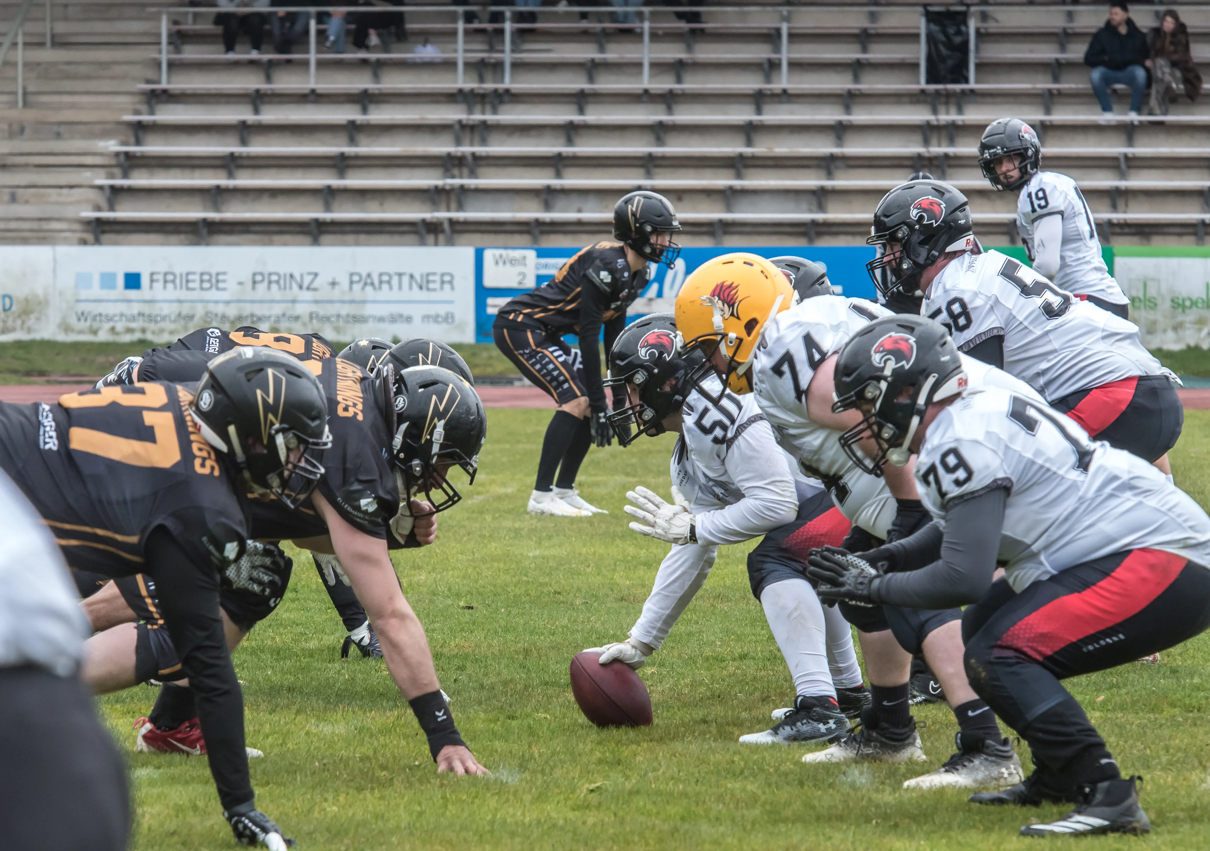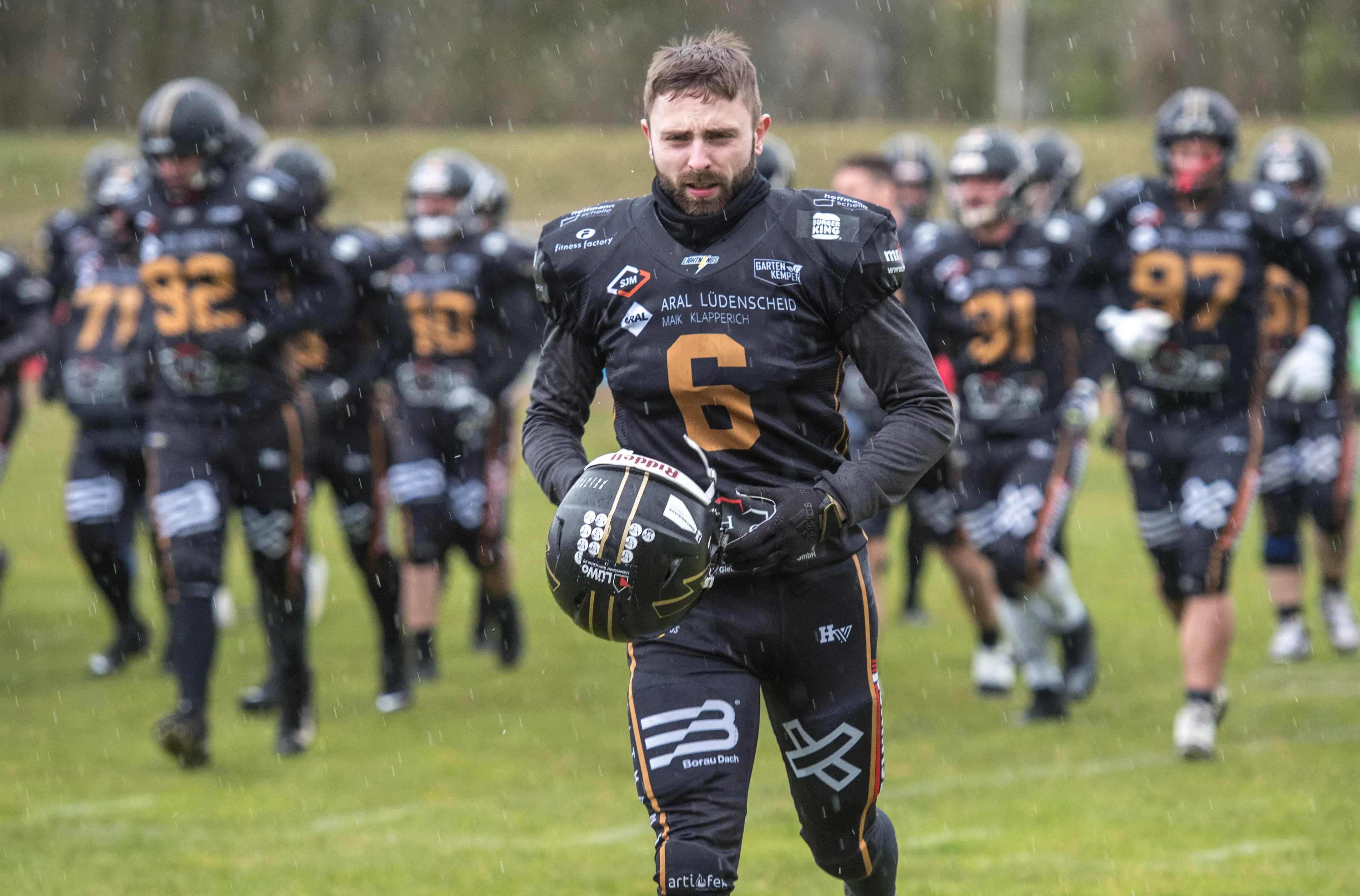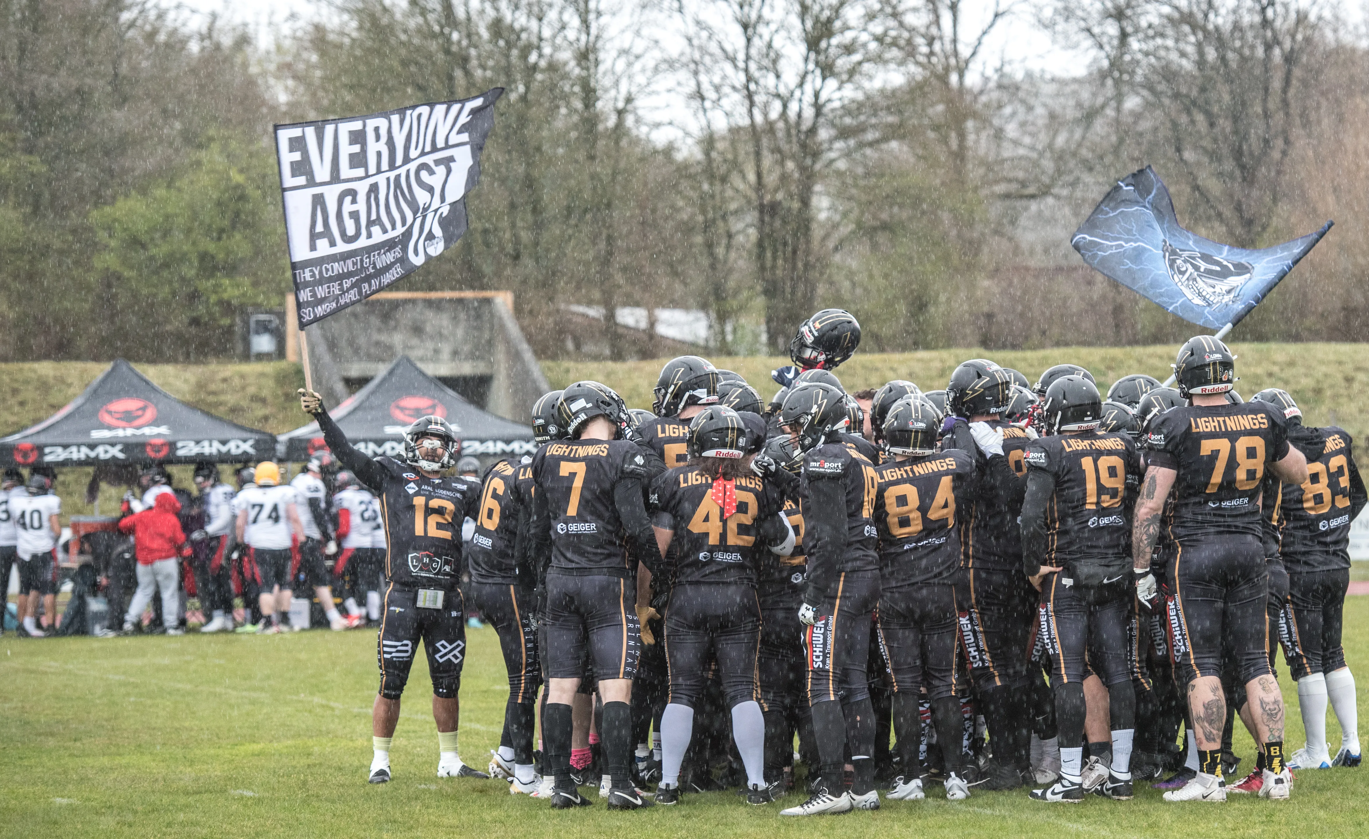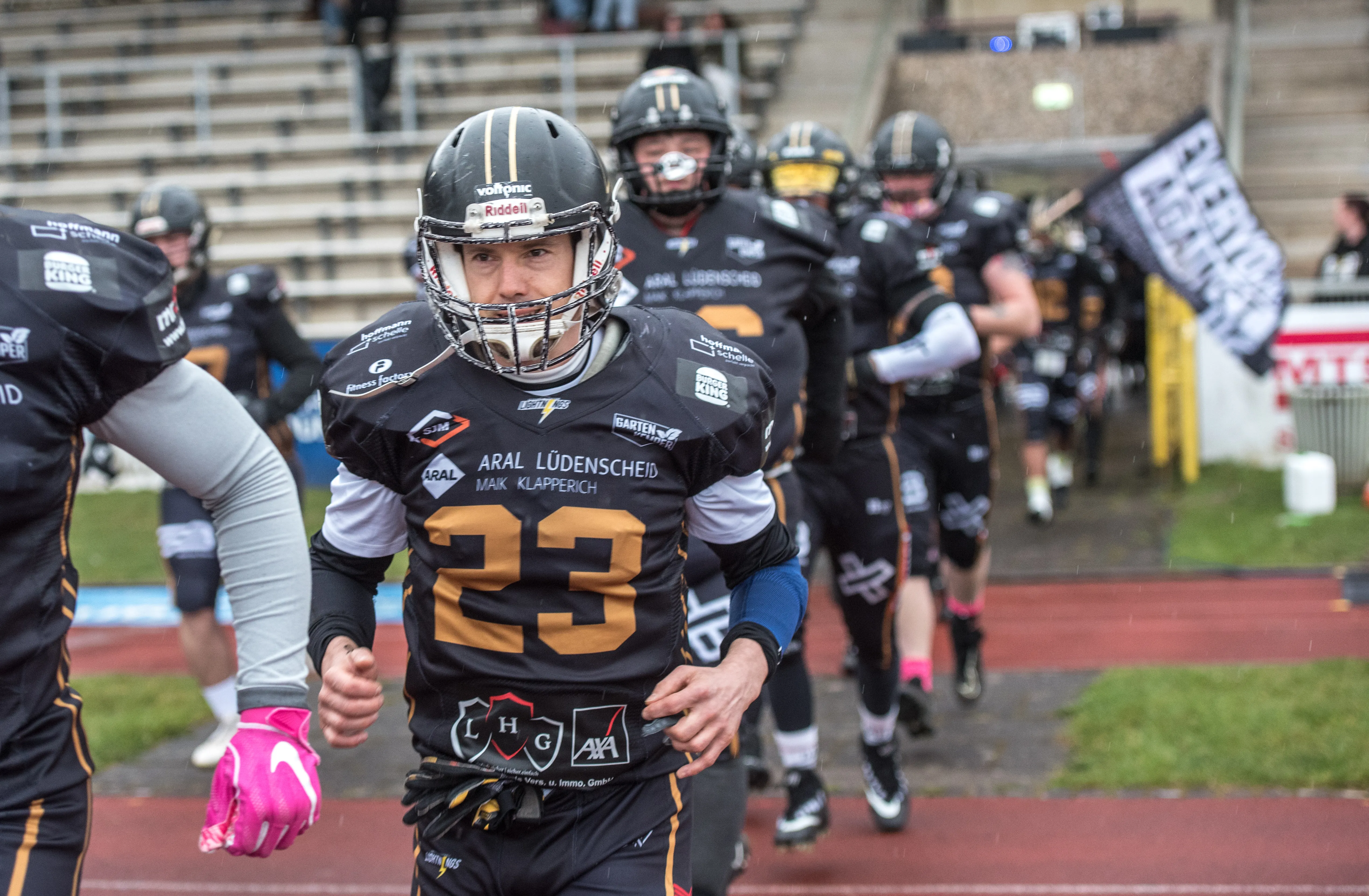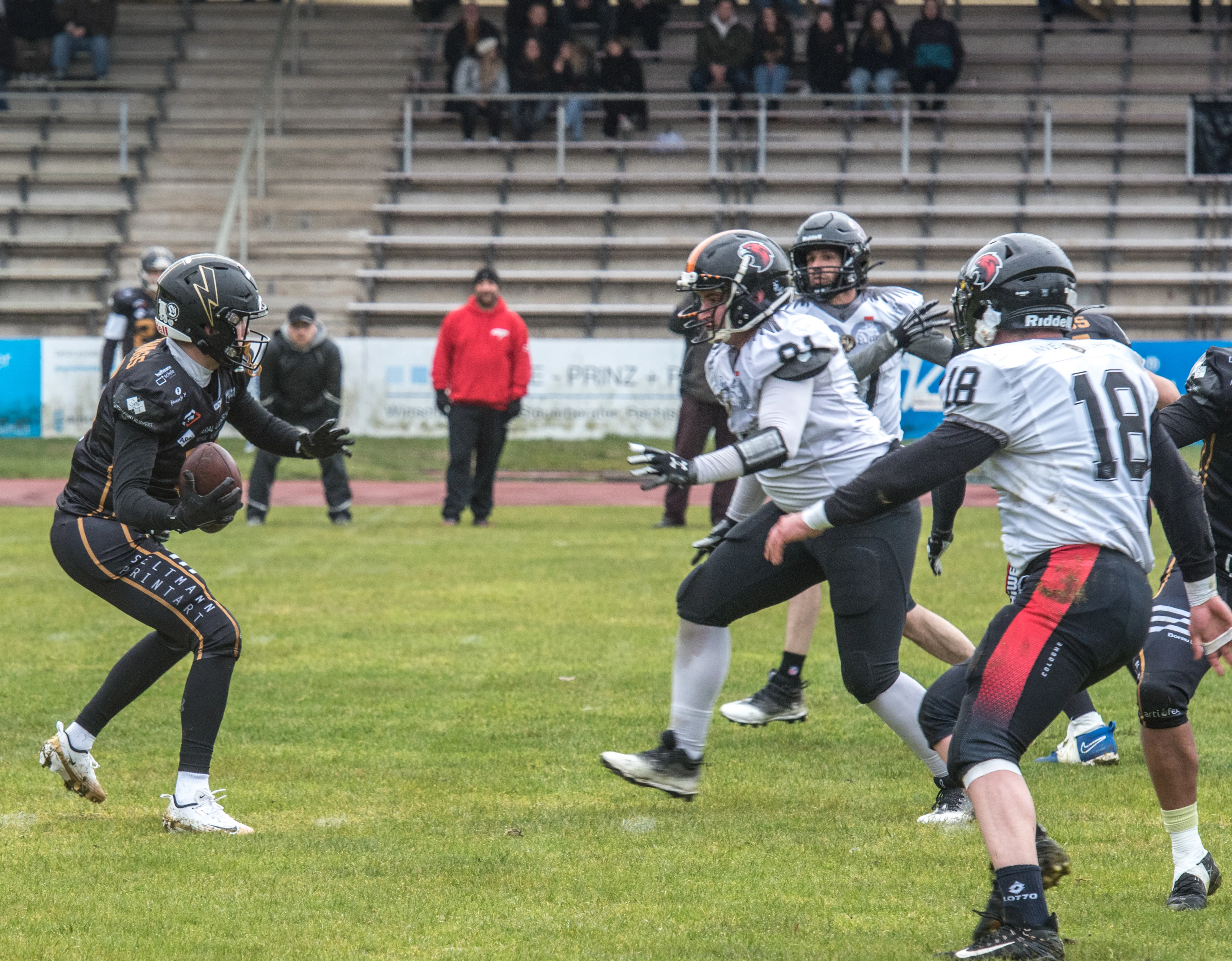 Alles andere als gute Bedingungen herrschten am Samstagnachmittag, 28. März, bei der Saisoneröffnung der Lüdenscheid Lightnings. Bei Regen und Graupel hatten nur rund 250 Zuschauer den Weg ins Lüdenscheider Nattenberg-Stadion gefunden. Auf dem Feld hatten die American Footballer des LTV 61 im ersten Vorbereitungsspiel des Jahres mit Nässe, Kälte und rutschigen Bällen zu kämpfen. Am Ende stand dennoch ein 36:0 (15:0)-Erfolg gegen die Cologne Falcons zu Buche.