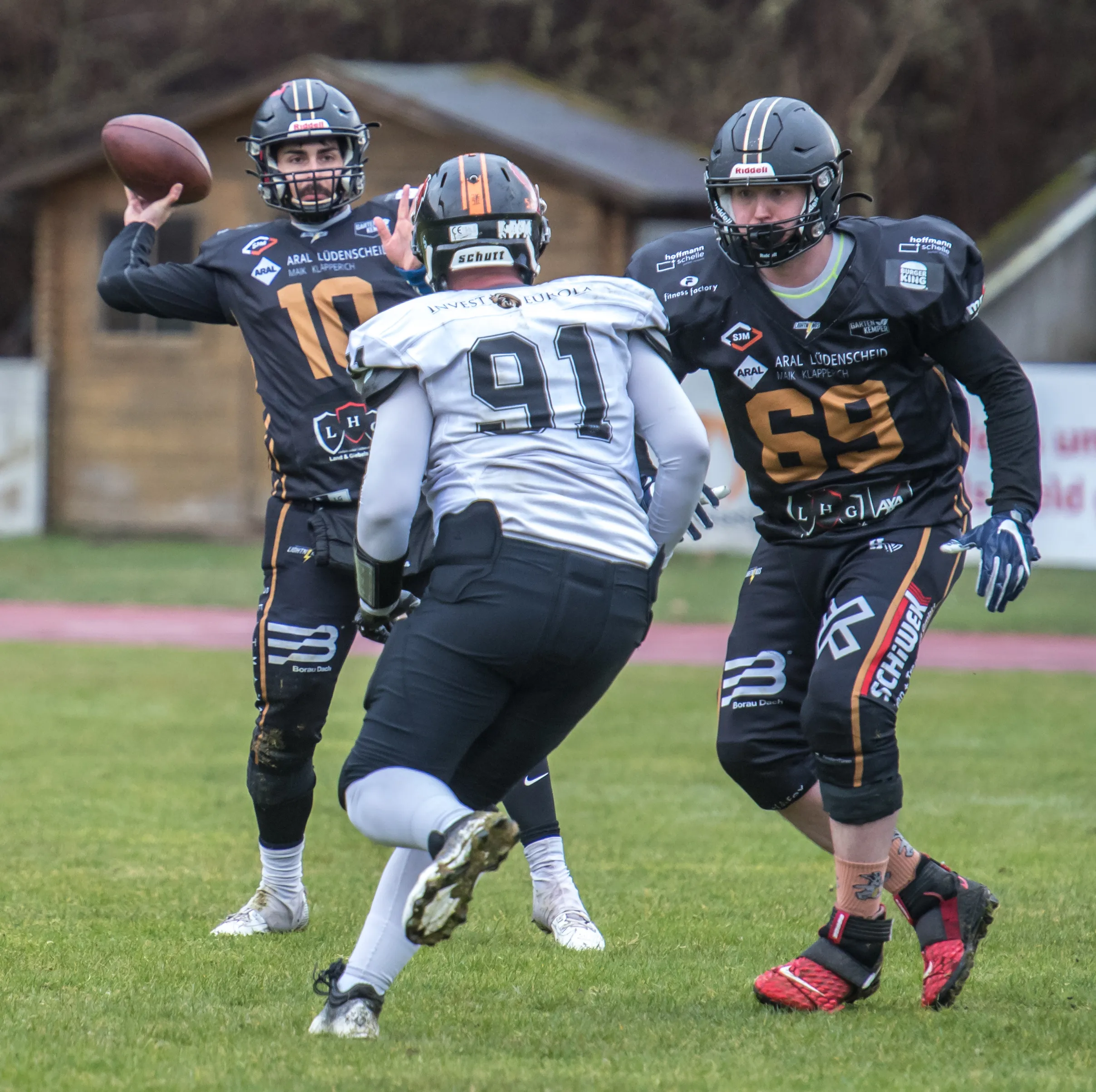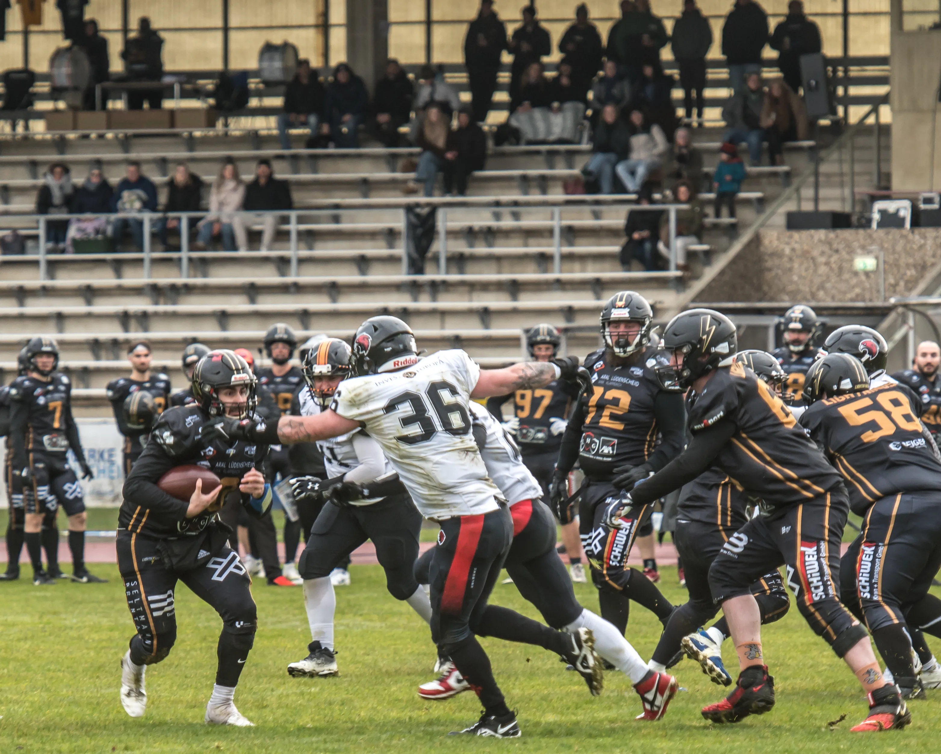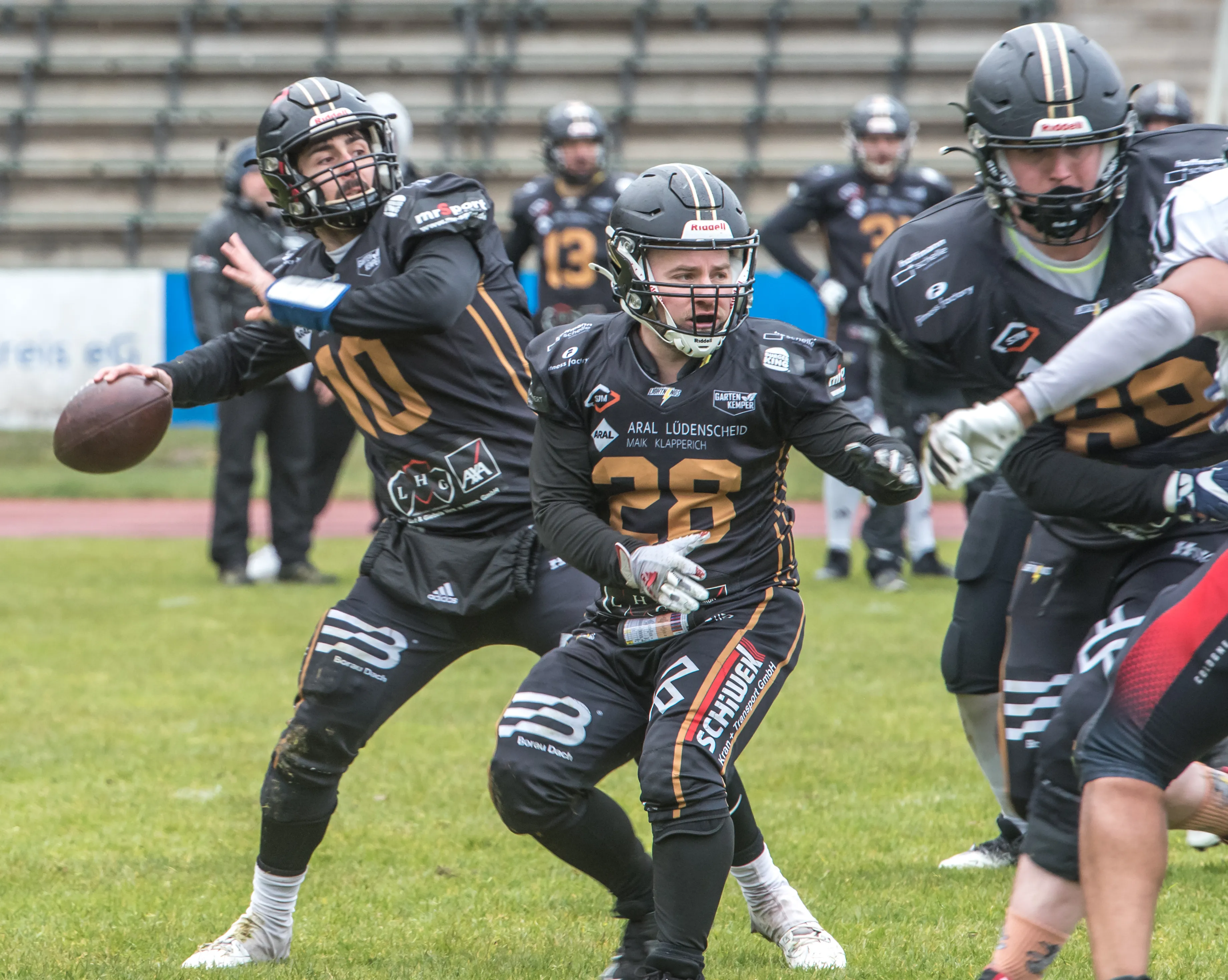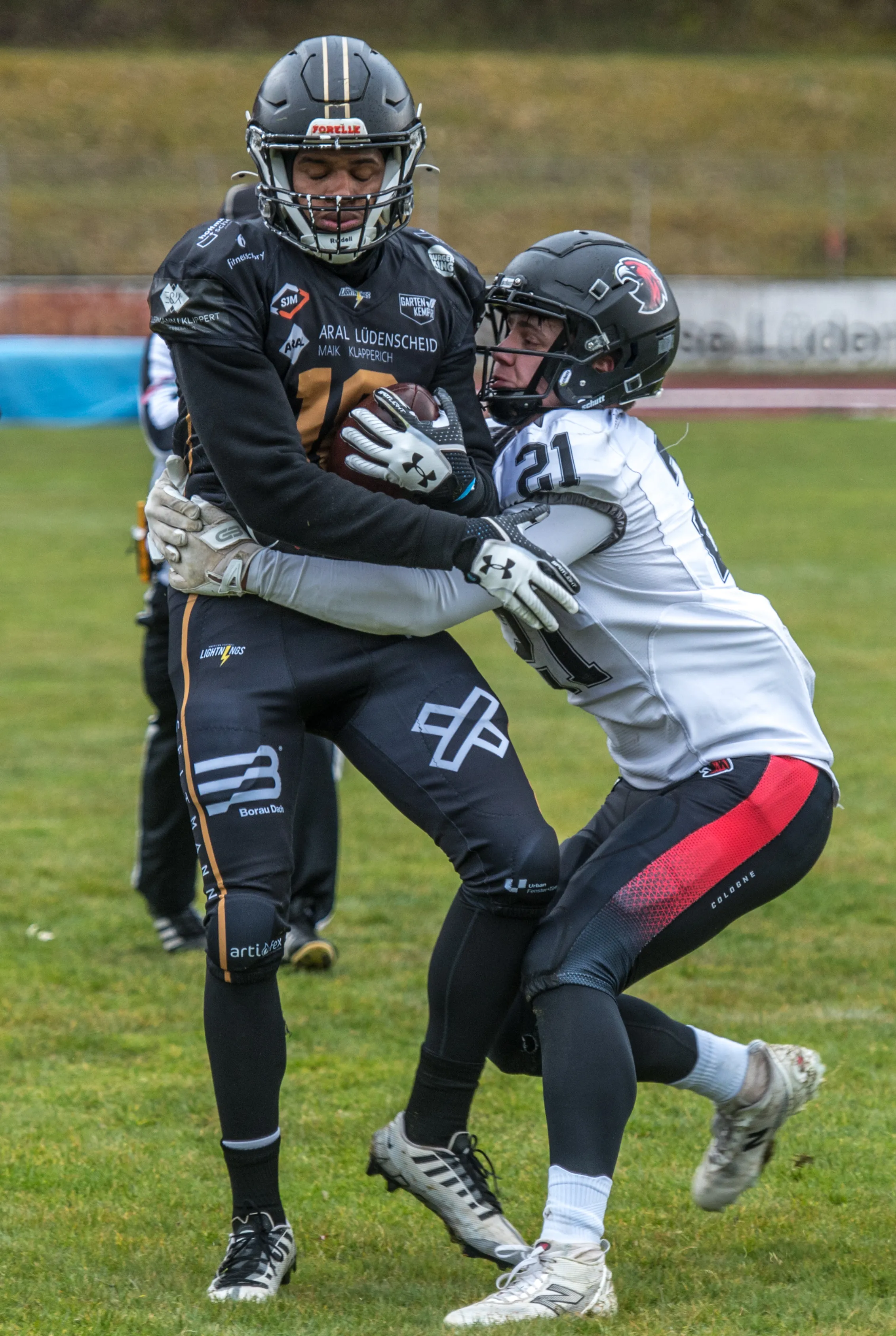 Alles andere als gute Bedingungen herrschten am Samstagnachmittag, 28. März, bei der Saisoneröffnung der Lüdenscheid Lightnings. Bei Regen und Graupel hatten nur rund 250 Zuschauer den Weg ins Lüdenscheider Nattenberg-Stadion gefunden. Auf dem Feld hatten die American Footballer des LTV 61 im ersten Vorbereitungsspiel des Jahres mit Nässe, Kälte und rutschigen Bällen zu kämpfen. Am Ende stand dennoch ein 36:0 (15:0)-Erfolg gegen die Cologne Falcons zu Buche.