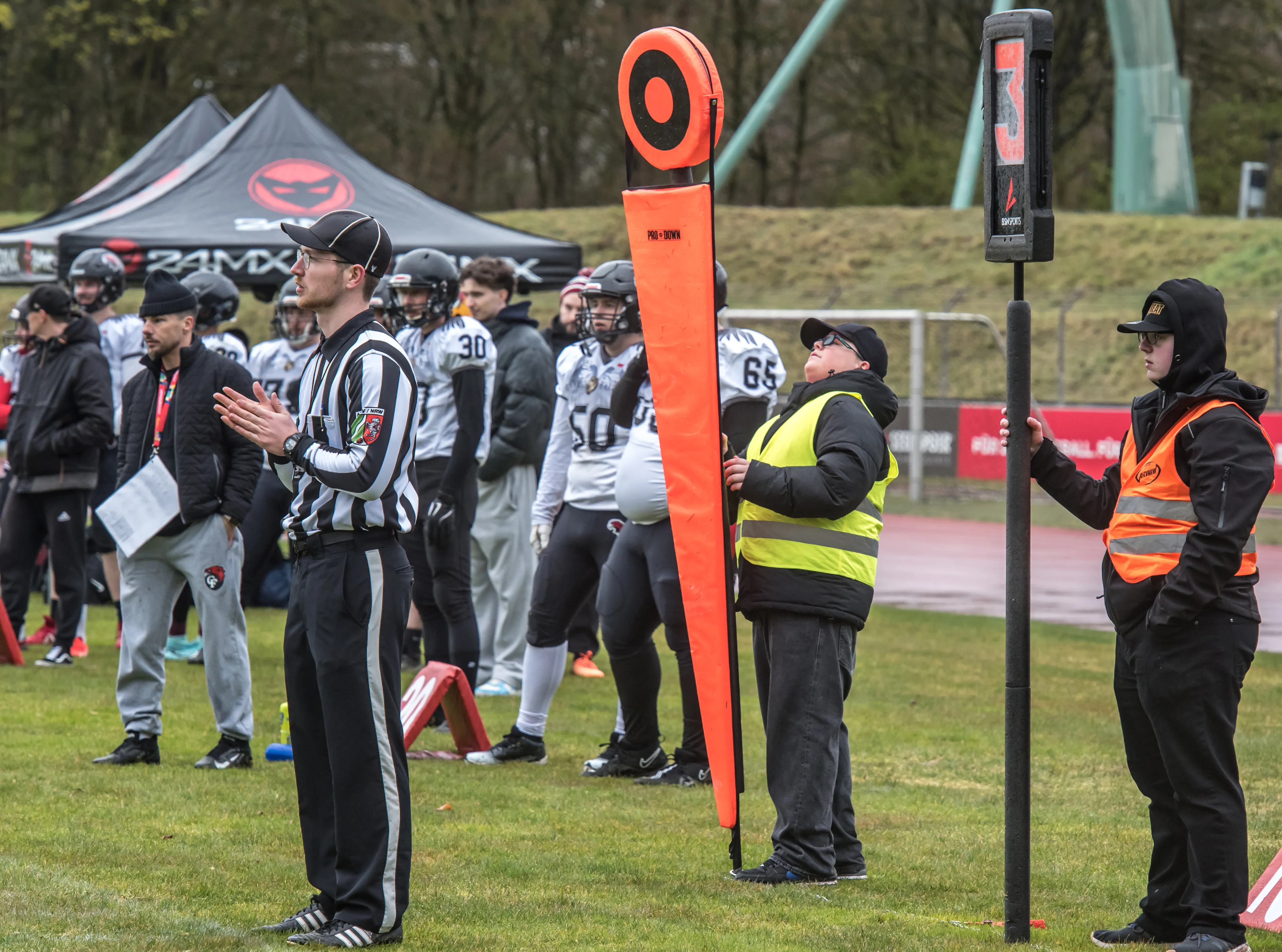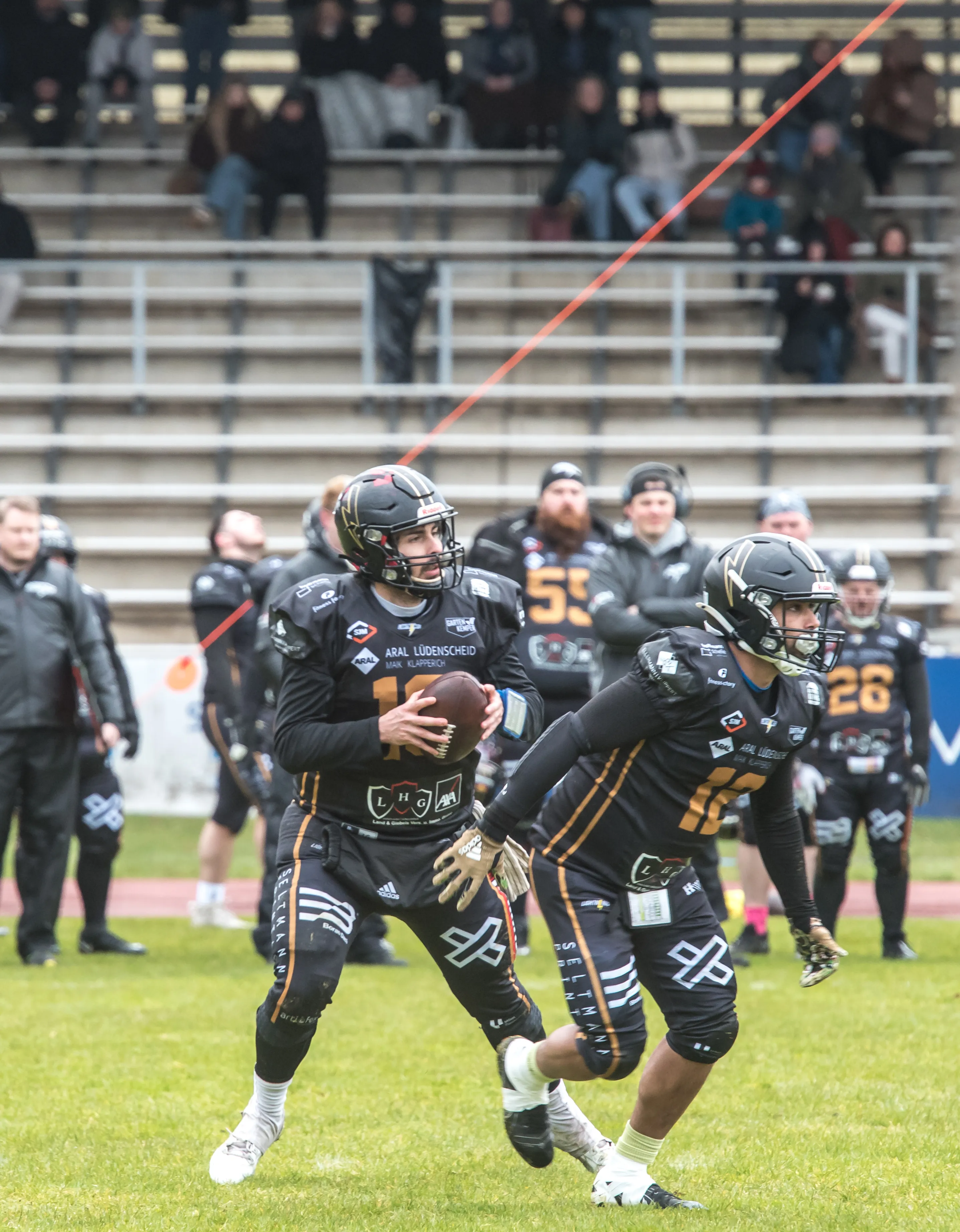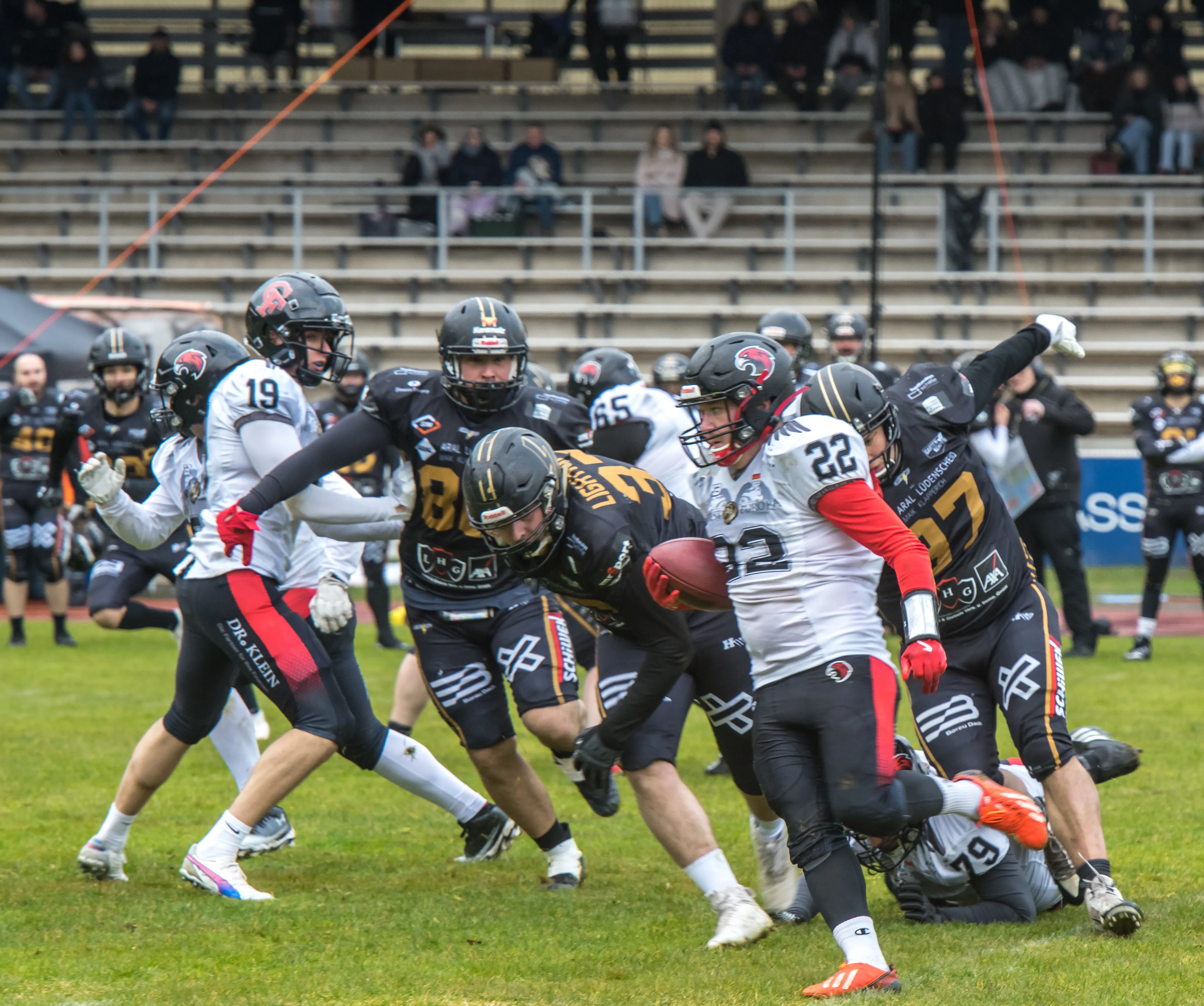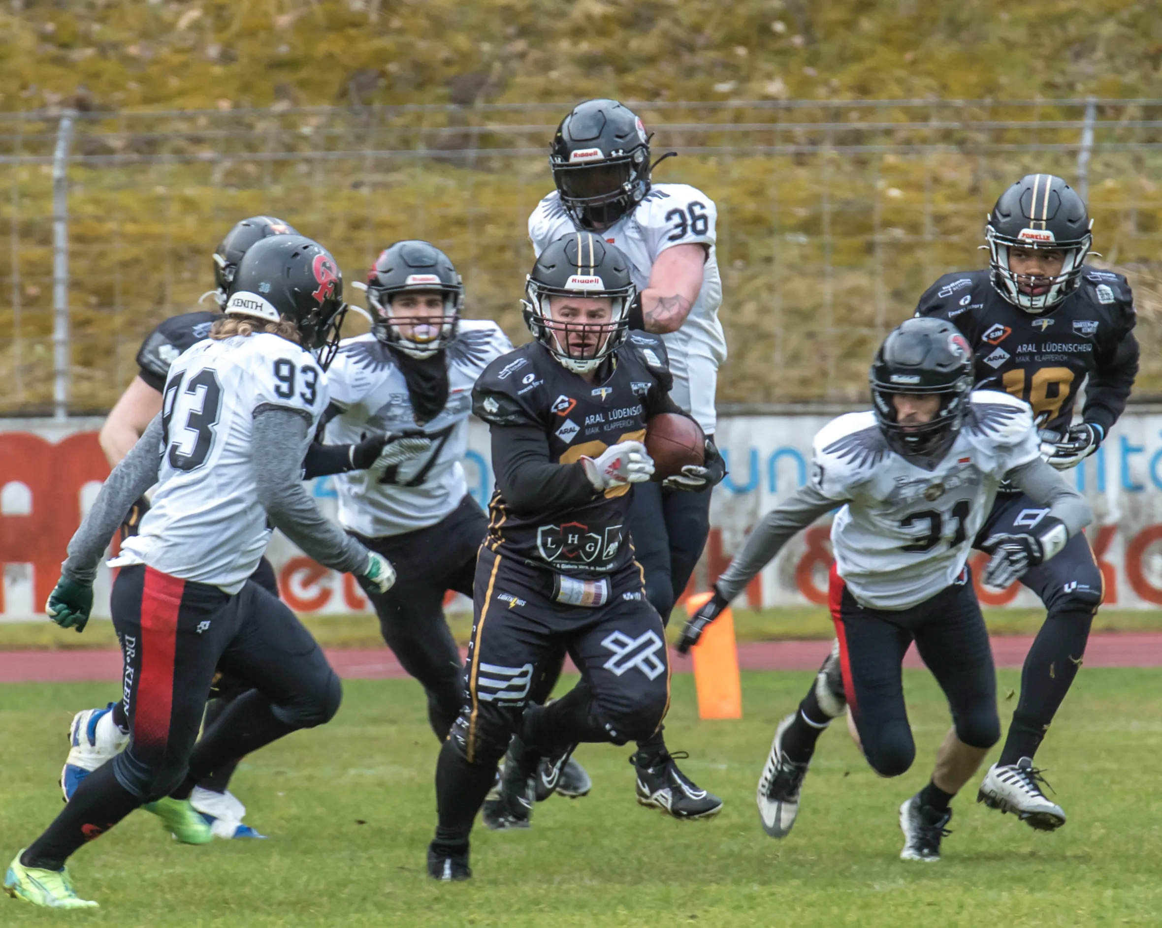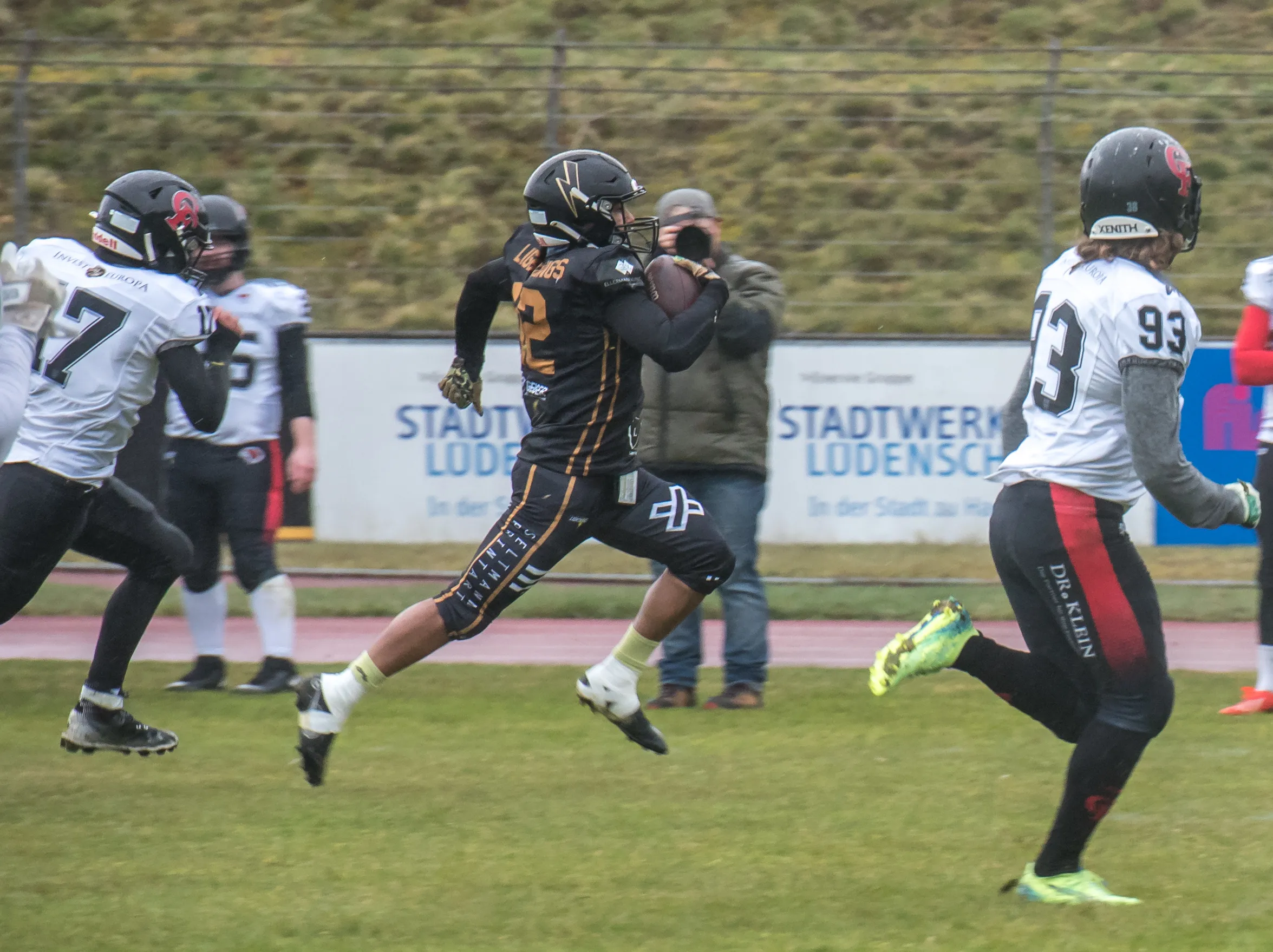 Alles andere als gute Bedingungen herrschten am Samstagnachmittag, 28. März, bei der Saisoneröffnung der Lüdenscheid Lightnings. Bei Regen und Graupel hatten nur rund 250 Zuschauer den Weg ins Lüdenscheider Nattenberg-Stadion gefunden. Auf dem Feld hatten die American Footballer des LTV 61 im ersten Vorbereitungsspiel des Jahres mit Nässe, Kälte und rutschigen Bällen zu kämpfen. Am Ende stand dennoch ein 36:0 (15:0)-Erfolg gegen die Cologne Falcons zu Buche.
