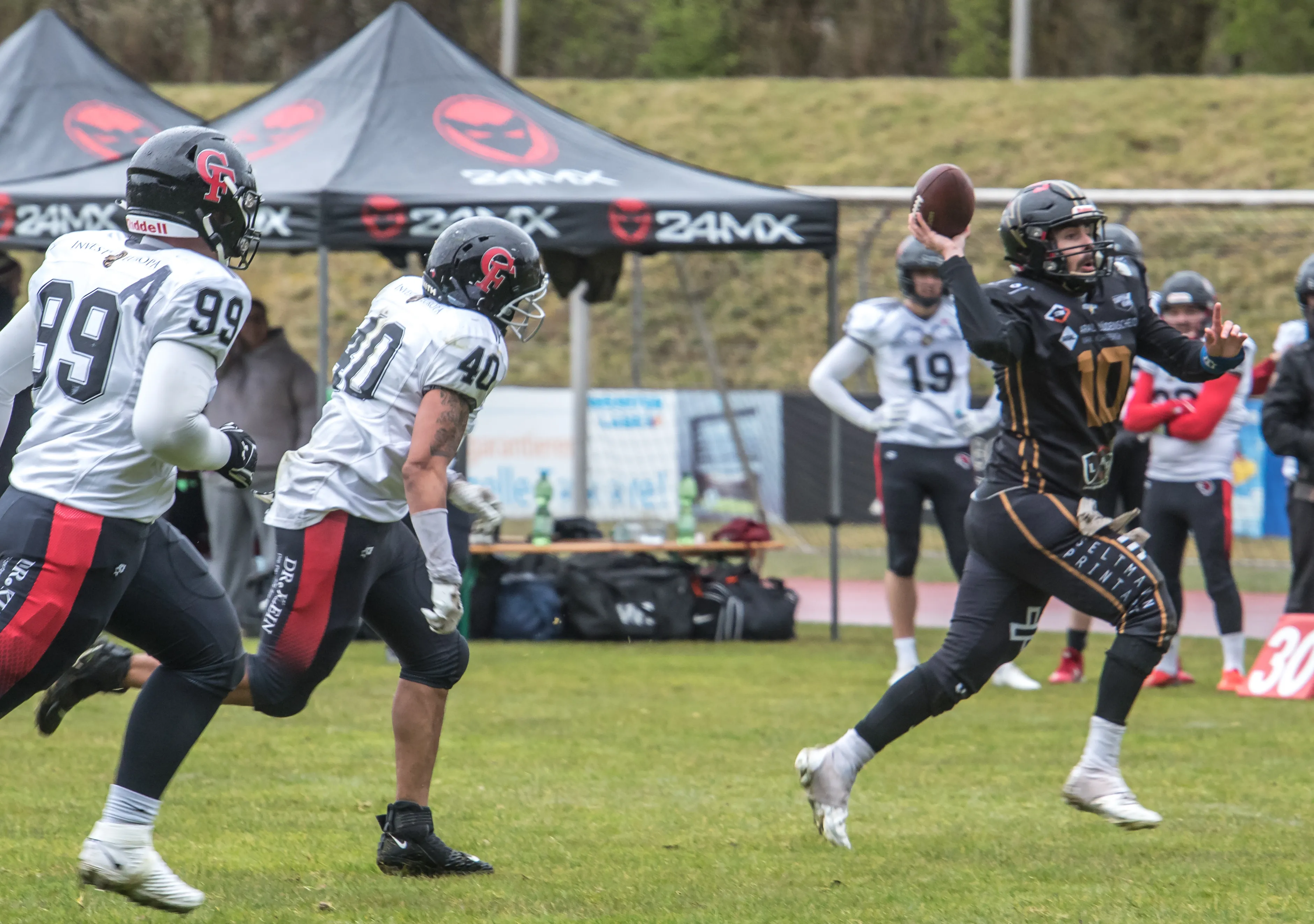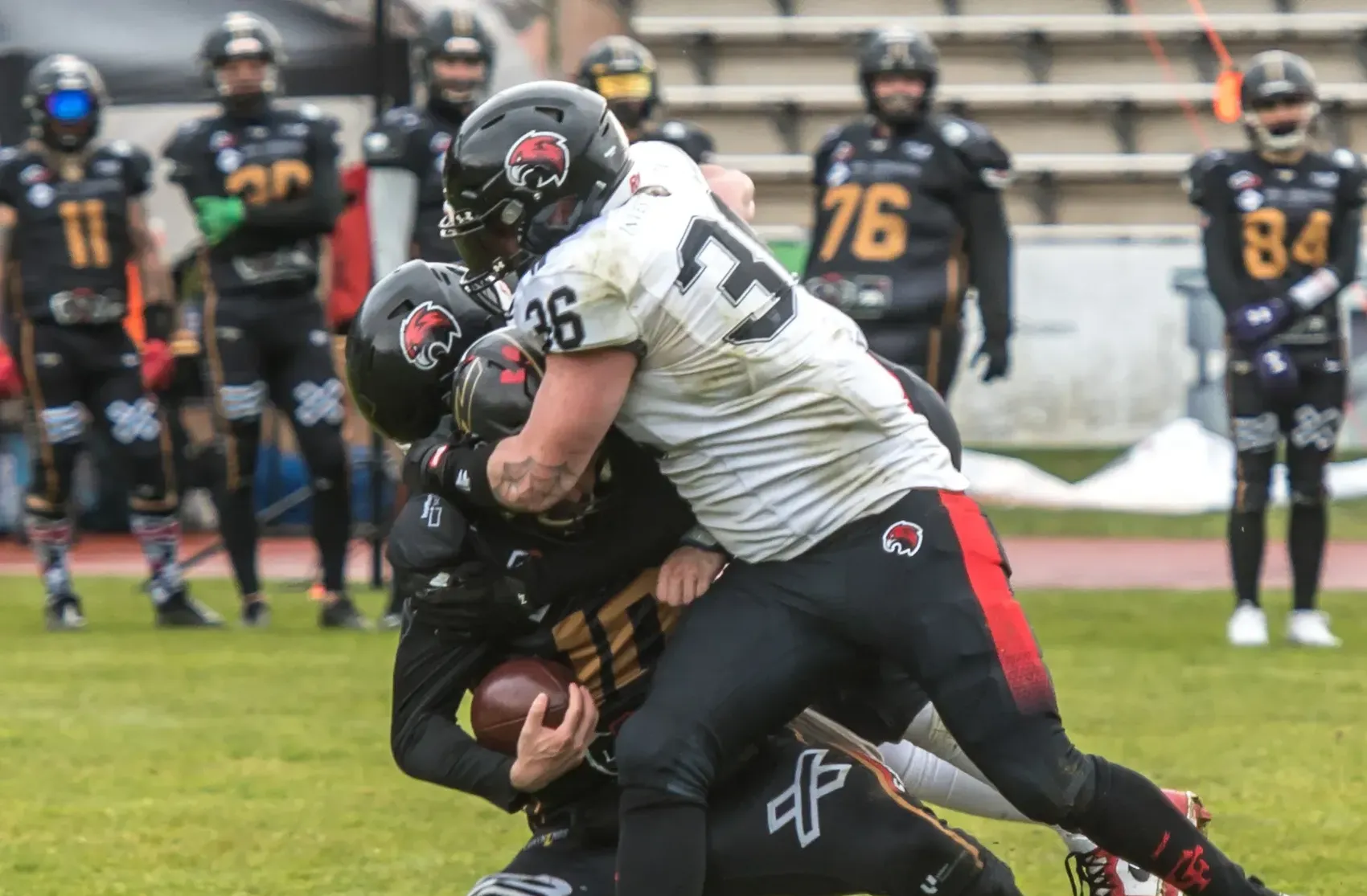 Nach der Halbzeitpause war es dann vollends die Defensive, die das Spiel bestimmte. Den Anfang machte Tobias Lahme mit der ersten Interception des Spiels, bevor Noel Gabriel und Hendrik Höh jeweils mit einem Pick-Six für das 29:0 sorgten. Im Anschluss war der Ball für beide Teams immer wieder etwas zu rutschig, was zu Fumble bei beiden Teams führte. Kurz vor Schluss besorgten Running Back Jan Berger mit einem 11 Yard Run und Steuber mit seinem vierten Extrapunkt des Tages den 36:0-Endstand.