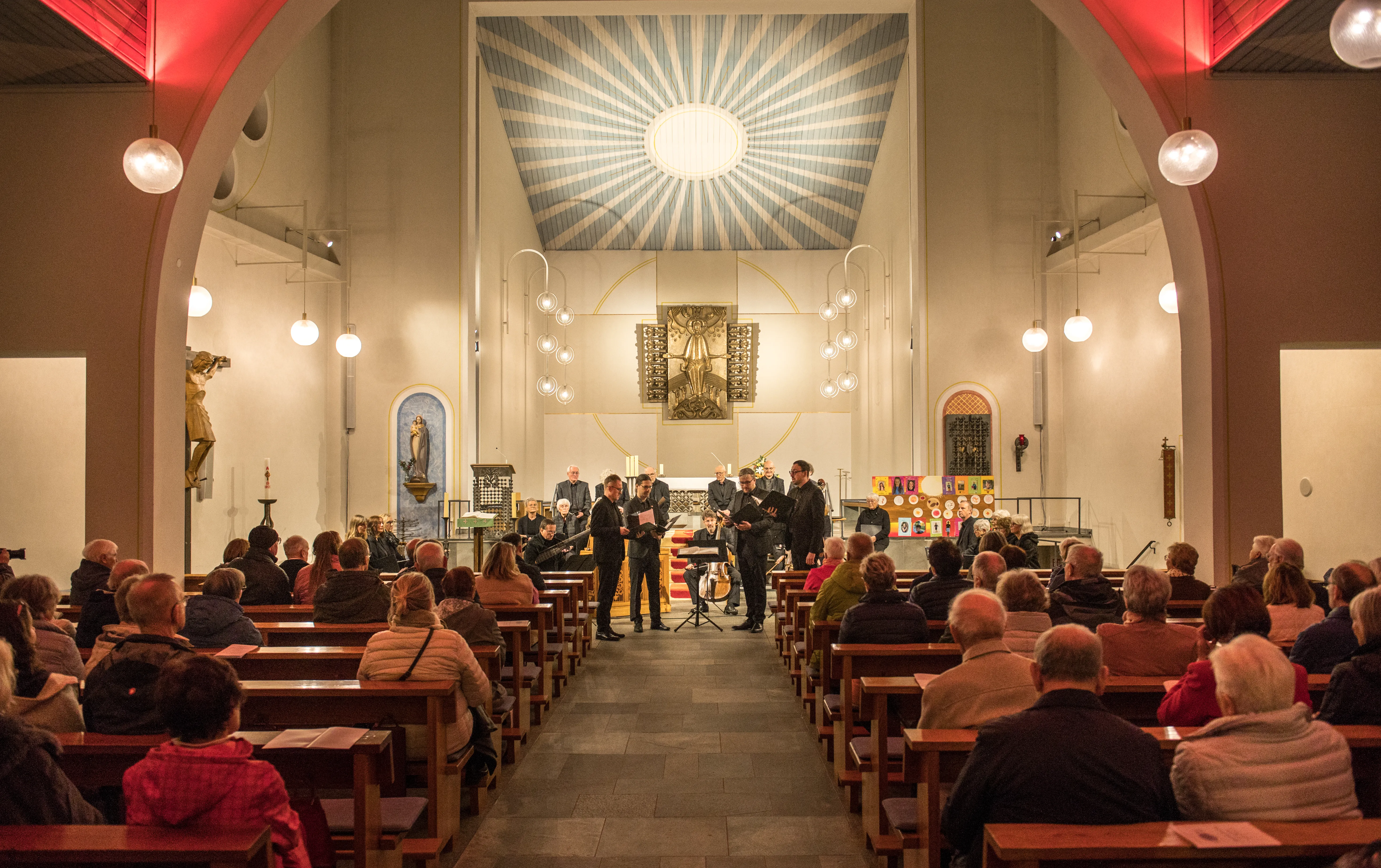 In der gut besuchten, aber nicht bis auf den letzten Platz besetzten katholischen Kirche Christus König Halver beeindruckten die Kantorei und die Cappella Montensis mit wechselnden Vorträgen. Gleich zum Auftakt ließ das Wuppertaler Männerensemble das „Requiem aeternam“ erschallen und faszinierte im Laufe des Konzertes mehrfach mit seinen gregorianischen Gesängen.