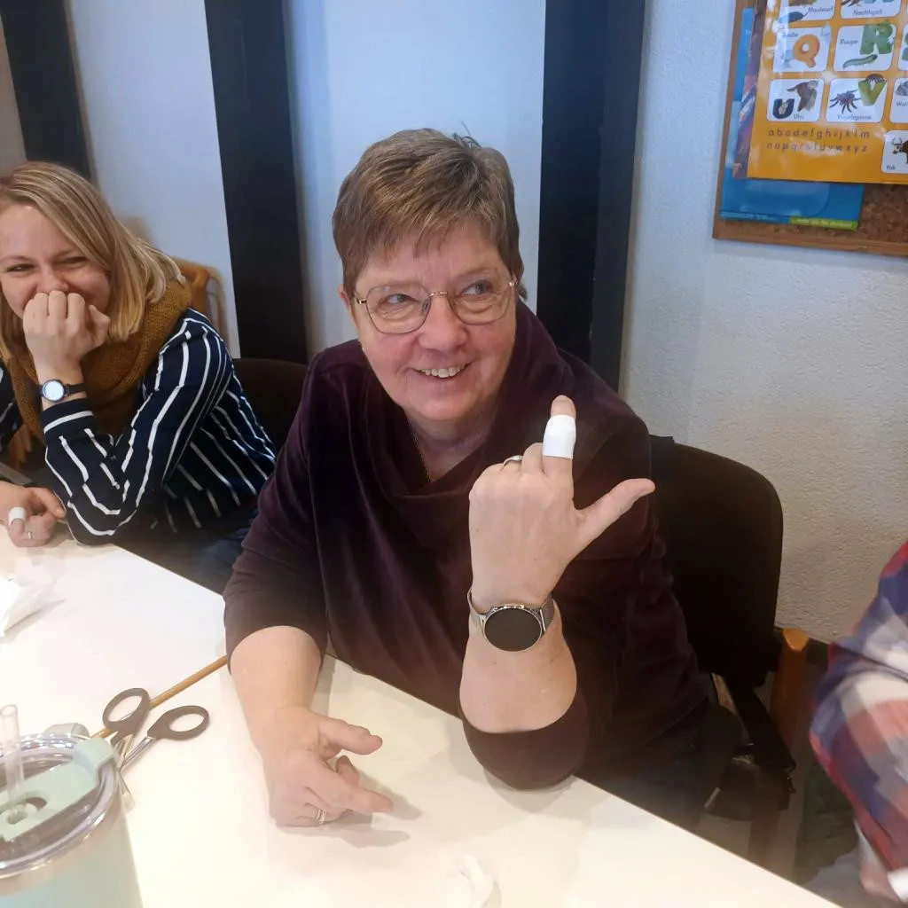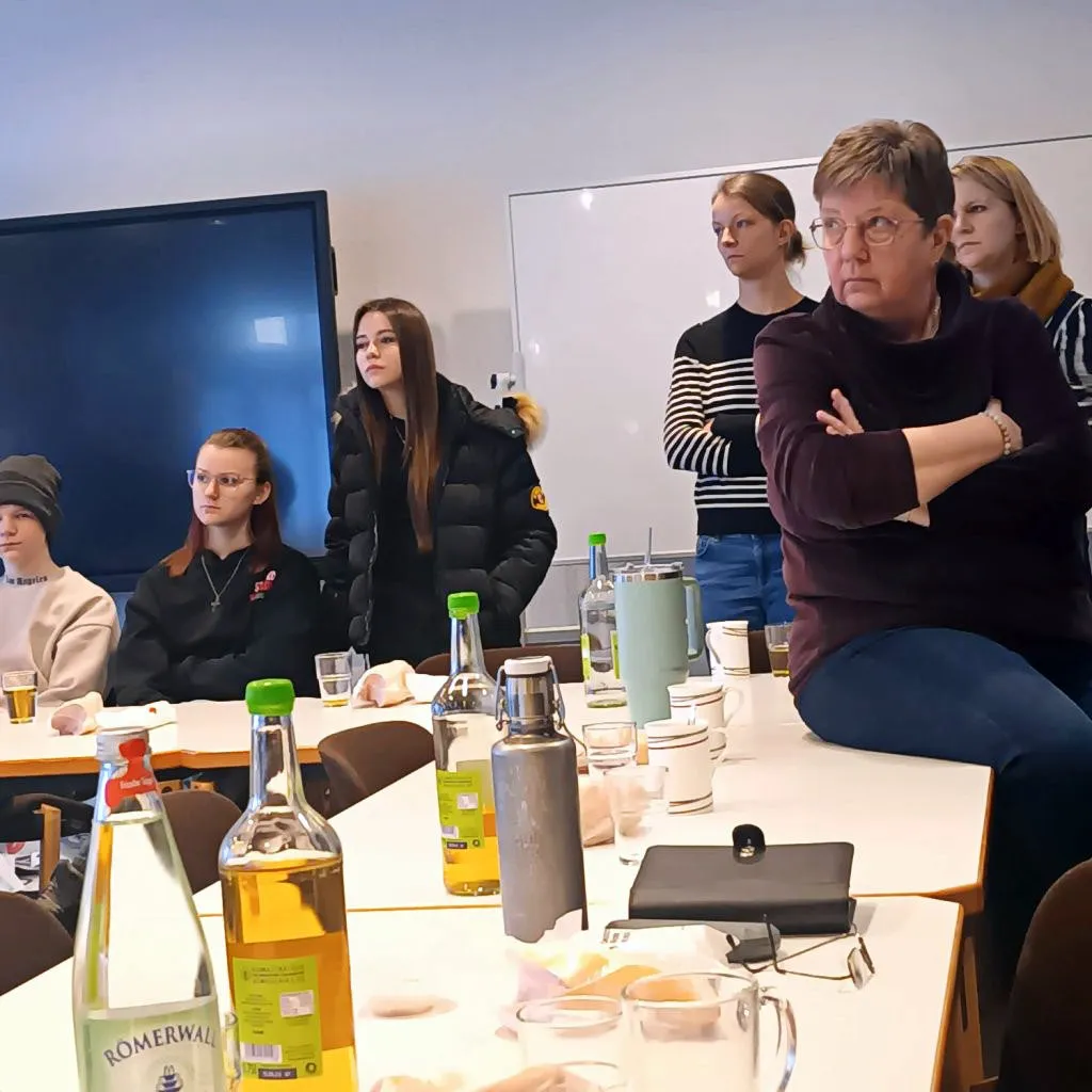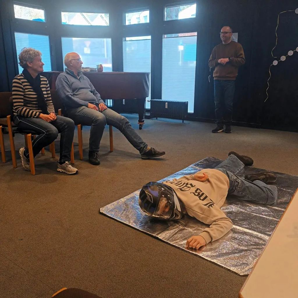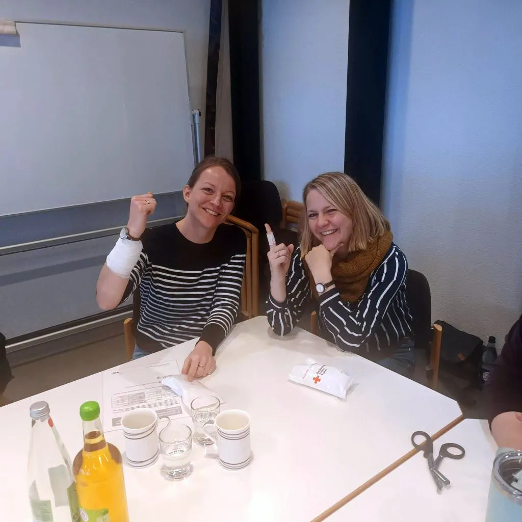 So fanden wir uns am Samstag, 17. Januar, um 8 Uhr mit 18 weiteren Gleichgesinnten im Gemeindezentrum der Evangelischen Kirchengemeinde Plettenberg ein. Der Andrang auf diesen Kurs war so groß, dass es sogar eine Warteliste gab, erzählte mir die Gemeindeschwester Sabine Hollweg. Hauptsächlich war die Veranstaltung für Mitarbeitende der Gemeinde gedacht, aber auch weitere Interessierte hatten sich angemeldet. Es war eine illustre Runde. Von „Alt“ (Jahrgang 1958) bis „Jung“ (Jahrgang 2011) war alles vertreten. Sehr erfreut zeigten sich die Organisatoren über die Teilnahme von fünf Konfi-Teamern aus der Kirchengemeinde.