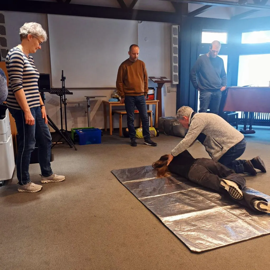 Wie lange ist es her? Diese Frage stellte sich, als meine Frau den Vorschlag machte, den von der Evangelischen Kirchengemeinde Plettenberg organisierten und unter der Leitung von Damian Schubert vom DRK im Märkischen Kreis durchgeführten Kurs „Kirche übt Erste Hilfe“ mitzumachen. Gedanken an die Jugend, an den Führerscheinerwerb, an den DLRG-Rettungsschein, an die Bundeswehr und mehr kamen unweigerlich auf. Wie lange war es denn nun her? 47 Jahre ergab die Sichtung in alten Unterlagen. Das waren meine letzten Berührungspunkte unter dem Aspekt „Erste Hilfe“. Aber aus der Nummer kam ich nicht mehr heraus, denn die Anmeldung war bereits durch meine Gattin erledigt worden.