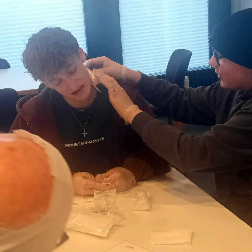 Damian Schubert machte aber auch klar, dass bei allen Laienhilfen an einem Unfallort immer der Eigenschutz vorgehe. Von der stabilen Seitenlage, über die Mund-zu-Mund-Beatmung und Herzdruckmassage am Dummy „Herr Müller“, Anlegen von Verbänden, Absicherung von Unfallstellen bis zum Absetzen von Notrufen gab es an diesem Tag ein breites Spektrum der Wissensvermittlung.
