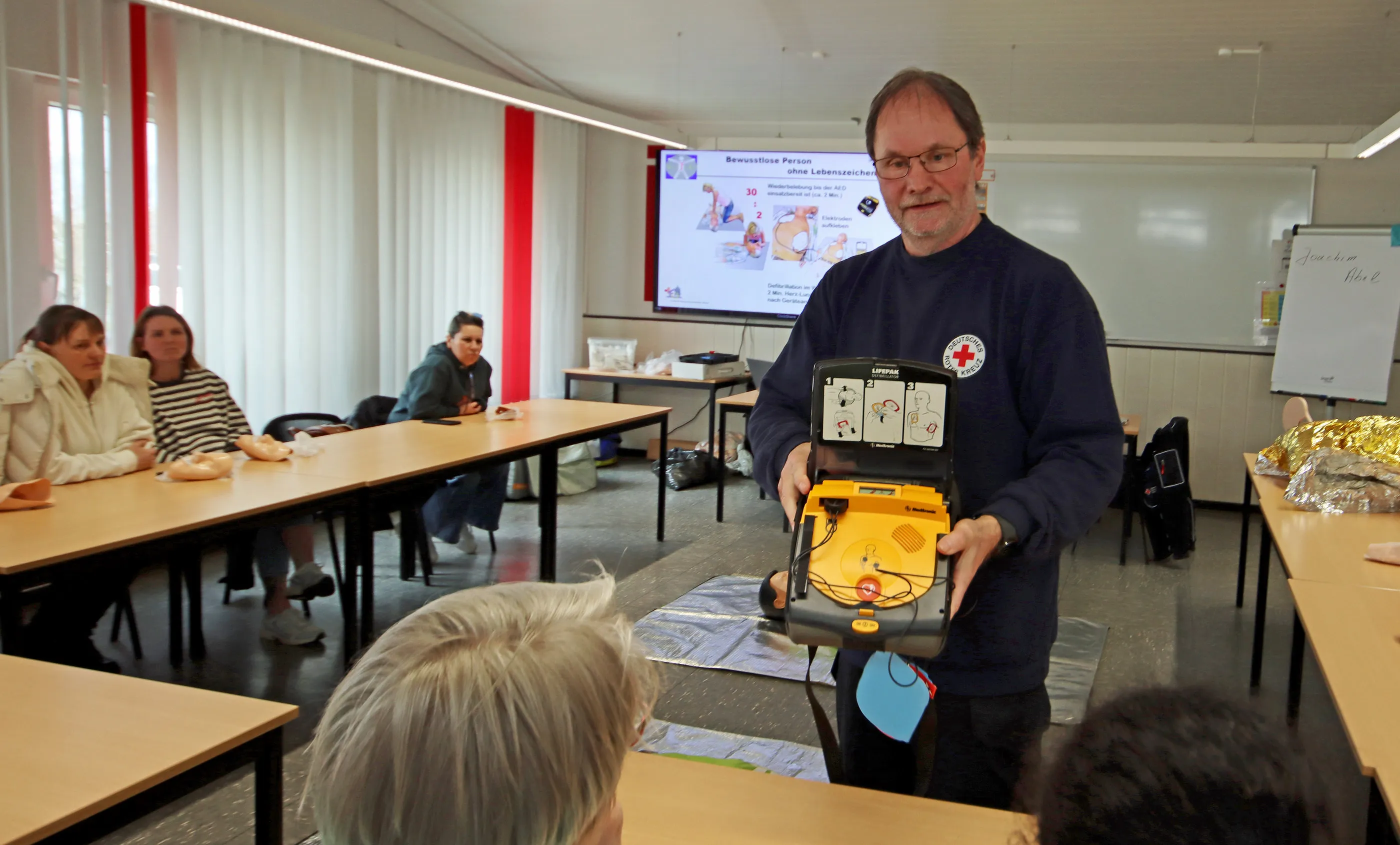 Nach gut zwei Stunden bedankten sich die Teilnehmer mit Applaus bei Joachim Abel für den Unterricht. Einige waren erstaunt, welcher Kraftaufwand nötig ist, um etwa bei der Herz-Druck-Massage oder Mund-zu-Nase-Beatmung die Vitalfunktionen zu erhalten.