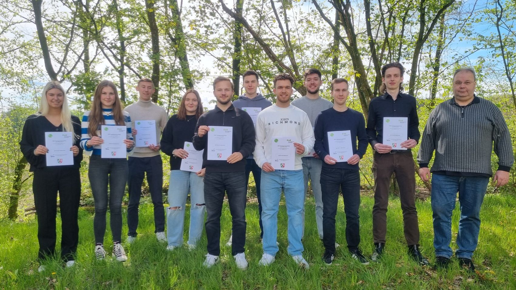 Auch im Fach Englisch wird seit vielen Jahren in den Bildungsgängen Industrie, Großhandel und Kaufleute für Büromanagement den Schülern ermöglicht, das KMK-Zertifikat auf verschiedenen Niveaustufen zu erwerben. Die höchstmögliche Leistungsstufe ist die Niveaustufe C1. Dieses Zertifikat erwarben bereits im März `24 insgesamt 16 Schüler. Es waren Florian Linde, Jannik Hammann, Luis Richter, Enrico Wolf, Carsten Schmidt, Pia Hergt, Marya Abo Shama, Jasmin, Joy König, Jannik Lappe, Leon Jakob Henseler, Melike Deniz, Nikoletta Kounatidis, Aleyna Yazici, Anna-Lena Rohleder und Leon Scholz. Alina Backhaus holte die Prüfung auf der Niveaustufe B2 nach, da sie an der Dezemberprüfung wegen Krankheit nicht teilnehmen konnte. „Es ist herausragend, wie viele Schüler sich dazu entscheiden, die KMK-Qualifikation zu erwerben und die Prüfung bei uns am ESBK absolvieren“, so Markus Quast, der KMK-Koordinator für das Fach Englisch. „Damit stehen wir von allen Schulen des Regierungsbezirks mit weitem Abstand an erster Stelle im Fach Englisch.“