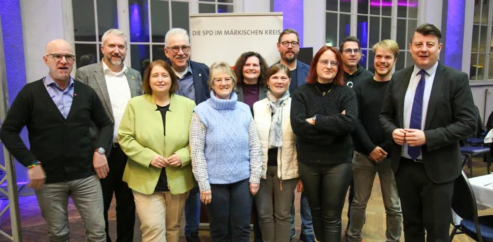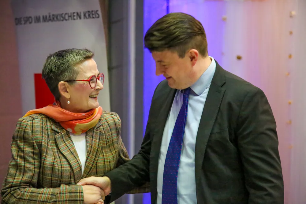 Damit waren die Personalien erledigt. Für eine überraschende und mit viel Beifall von den Anwesenden kommentiert wurde die Ankündigung des SPD-Landtagsabgeordneten Gordon Dudas. Der Lüdenscheider beendete seinen „Bericht aus dem Landtag“ mit dem Versprechen an die Sozialdemokraten: „Ich werde bei der Landtagswahl 2027 wieder kandidieren und mithelfen helfen, dass die SPD mehr als die zuletzt 16 Prozent bekommt.“ Zielmarke, so Dudas, seien deutlich mehr als 20 Prozent – „damit wir wieder mitregieren können.“ Für den Bericht aus dem Europaparlament sorgte Europaabgeordnete Birgit Sippel, aus dem Bundestag berichtete Bettina Lugk.