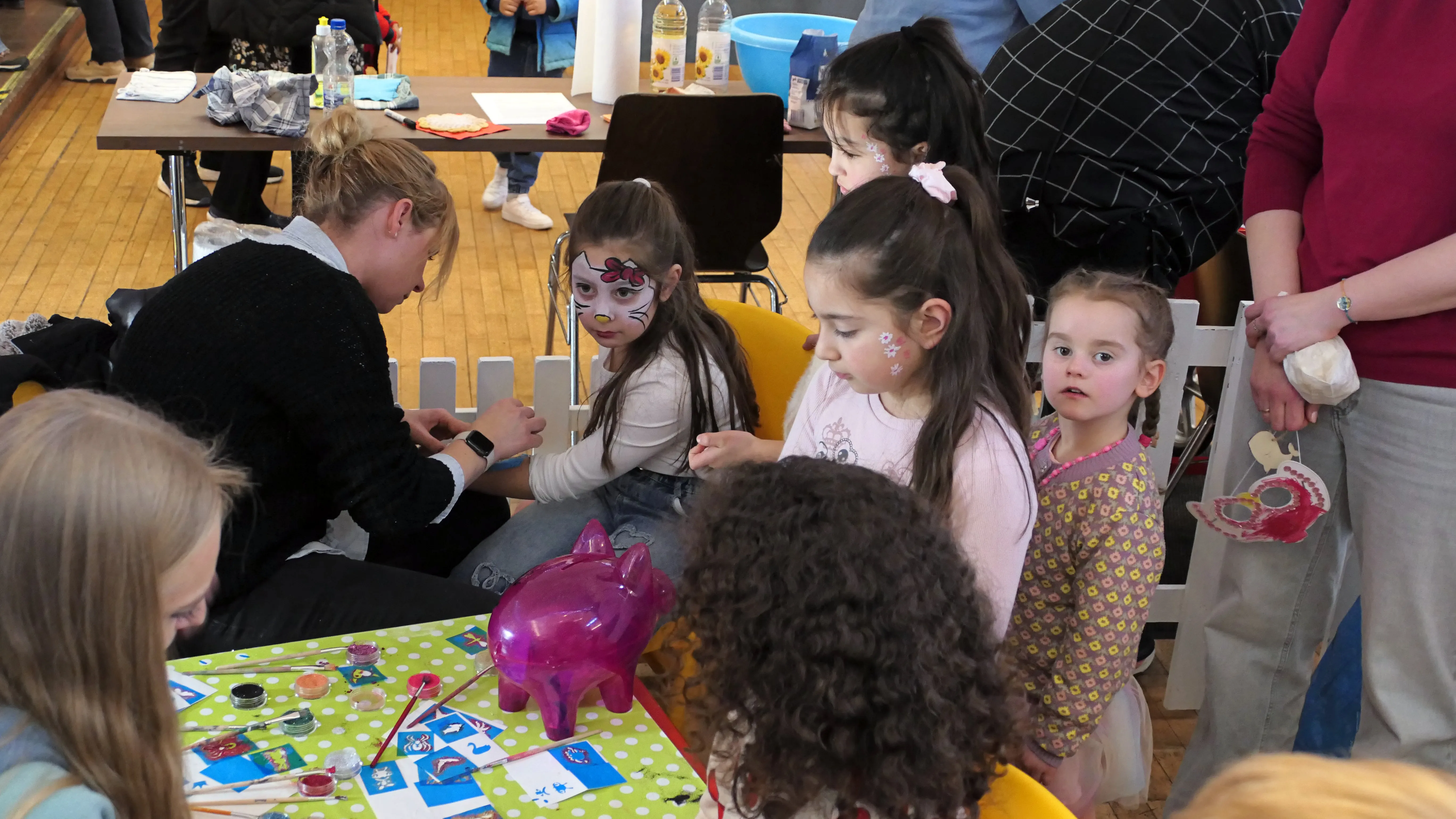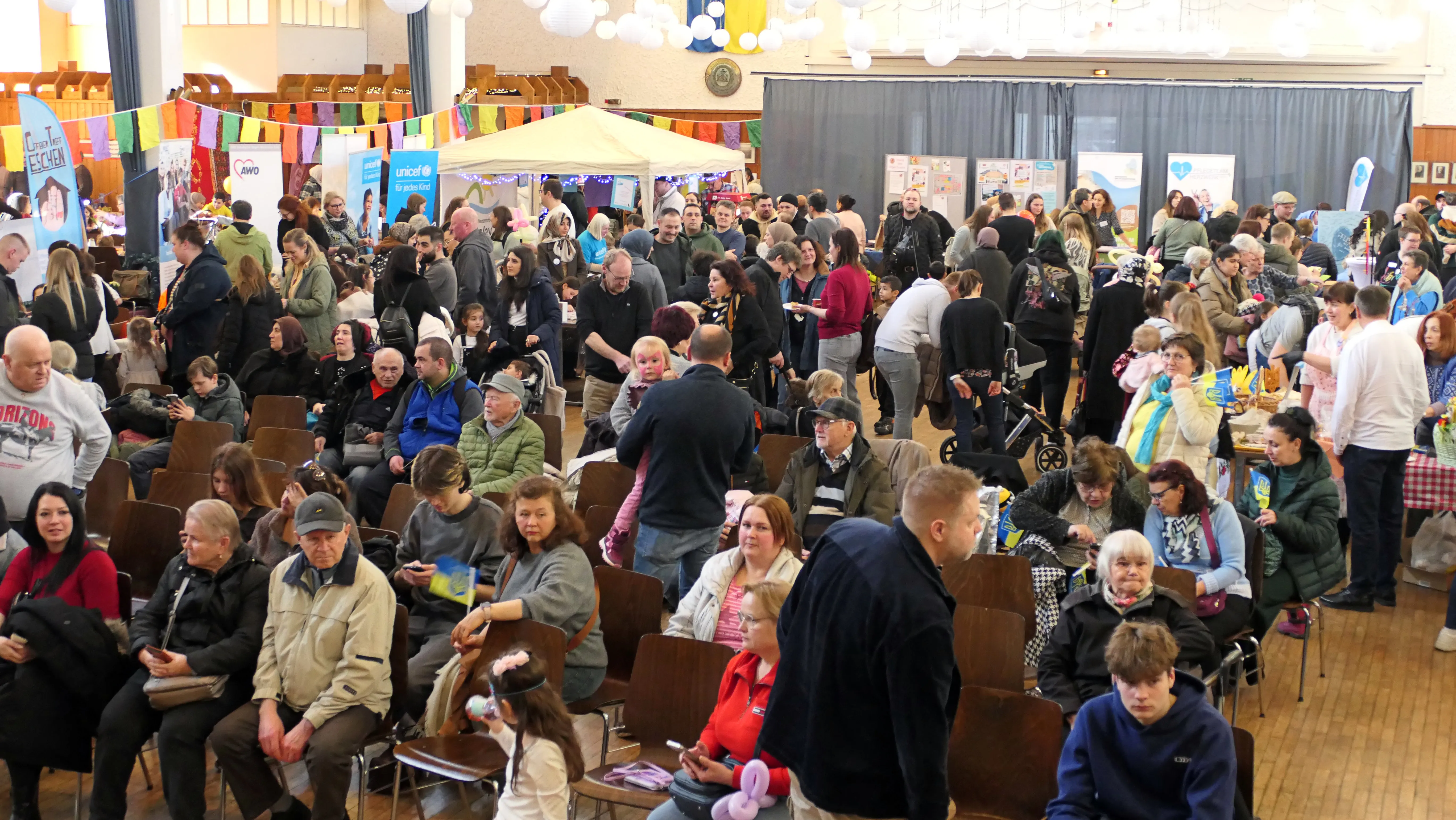 Aber nicht nur die Kulinarik, sondern auch vielfältige Informationen und Angebote von unterschiedlichen Vereine und Vereinigungen, z. B. Polizei, DRK, UNICEF, Pflege- und Alltagshilfen, Religionsgemeinschaften sowie die breite Palette des Ehrenamtes: Alles das wurde mit Begeisterung präsentiert und von allen Gästen, egal ob alt oder jung, dankbar aufgenommen. Kinderschminken, Geschicklichkeitsspiele und Bastelarbeiten unter fachlicher Anleitung von Erwachsenen für die jüngsten Besucher zauberten diesen ein Lächeln auf die Gesichter. In der Zwischenzeit konnten sich die Eltern oder Großeltern bei einer Tasse Kaffee entspannen und dann gemeinsam mit den vielen Kindern dem umfangreichen Bühnenprogramm folgen.