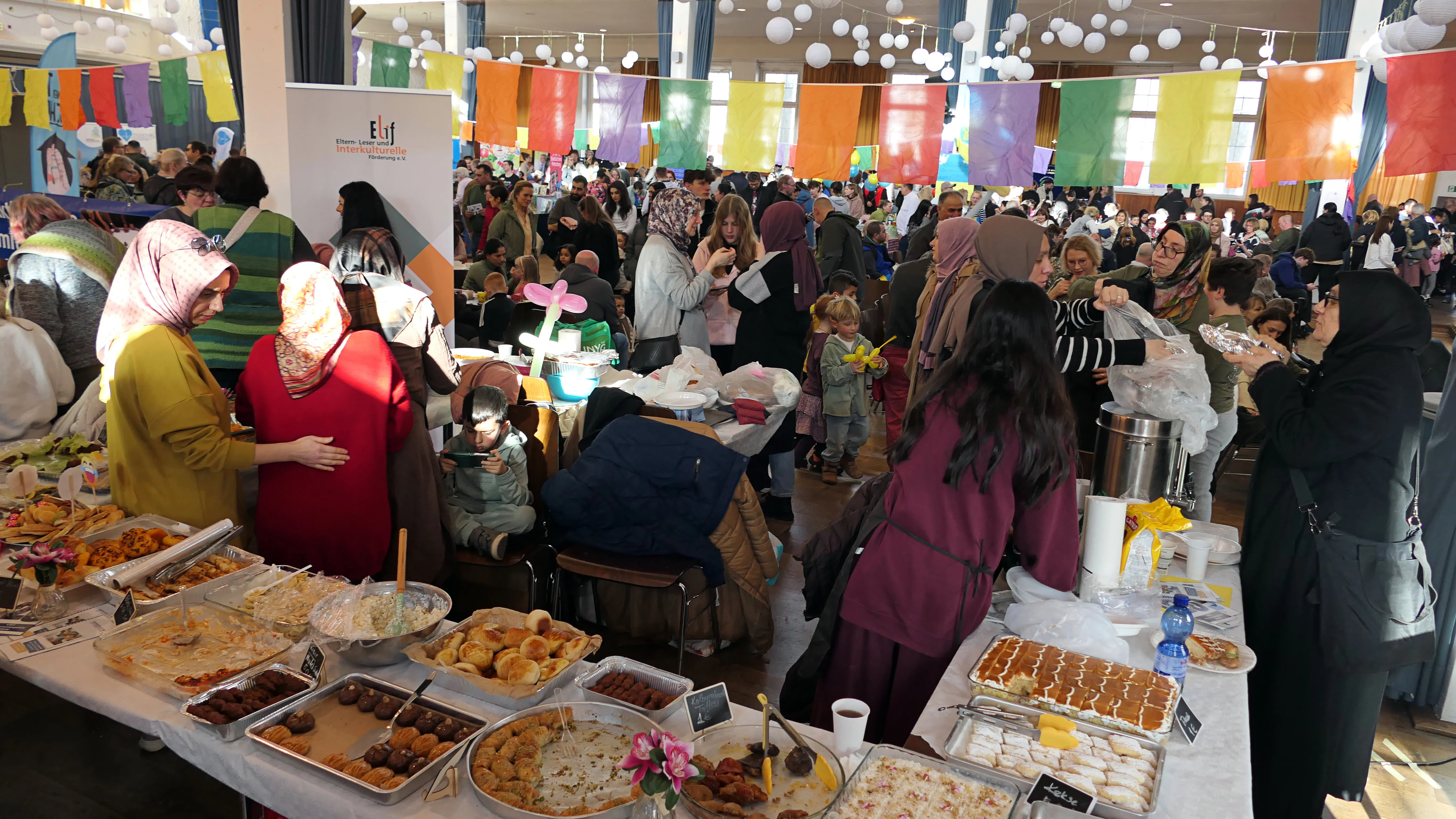 Ab 11 Uhr wurde für alle Altersgruppen etwas geboten. Während im Jugendzentrum Kicker, Air Hockey und Billard gespielt und süße Crêpes neben warmen und kalten Getränken angeboten wurden, ging es in der Halle mit süßen und herzhaften Angeboten in schier unendlicher Vielfalt weiter.