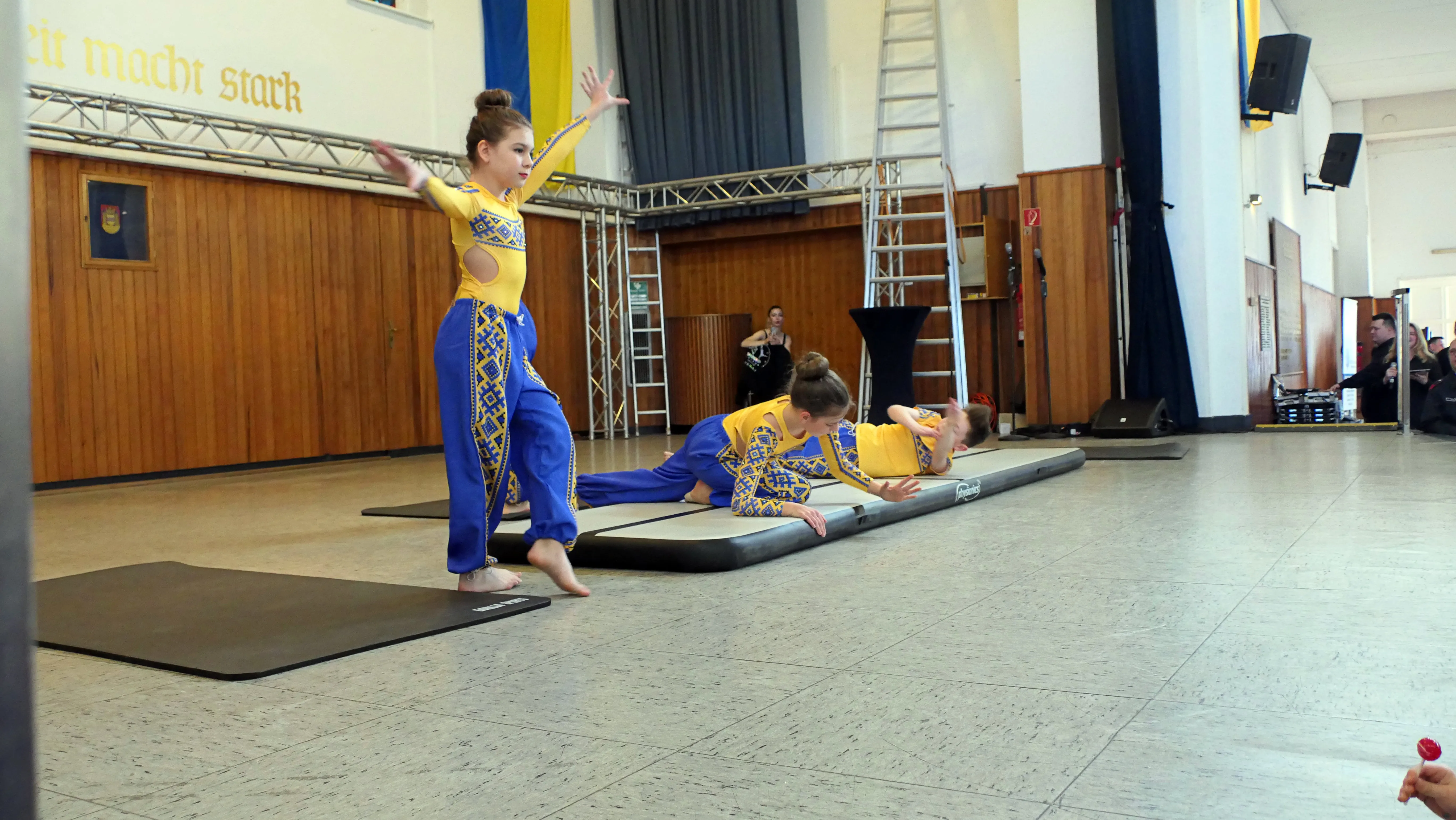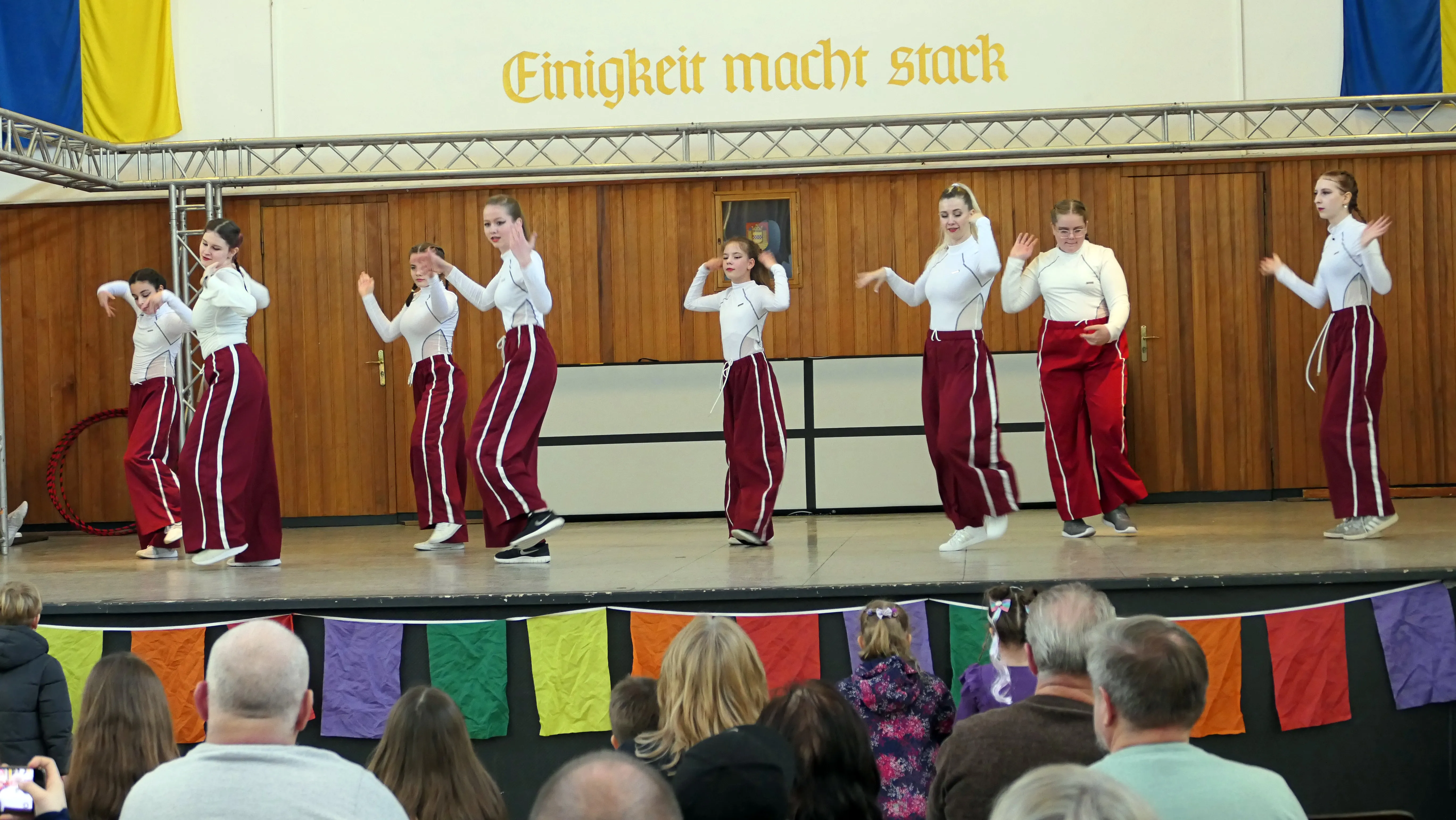 Es gab die Vorführung der Rettungshundestaffel, eine sportliche Darbietung des TV Jahn Plettenberg, die Vorführung des griechischen Ipirotischen Vereins. Der Plettenberger Turnverein präsentierte sich, die Kinder der städtischen KiTas tanzten und sangen. Als letzten Programmpunkt gab es eine sehr gelungene Vorführung der ukrainischen Gruppe mit Akrobatik, Gesang und Tanz. Starker Beifall ob der tollen Leistungen der Darbietenden belohnten alle Aktiven auf der Bühne, aber auch den Übungsleiterinnen und Übungsleitern für die Einstudierung der einzelnen Auftritte galt der Applaus.