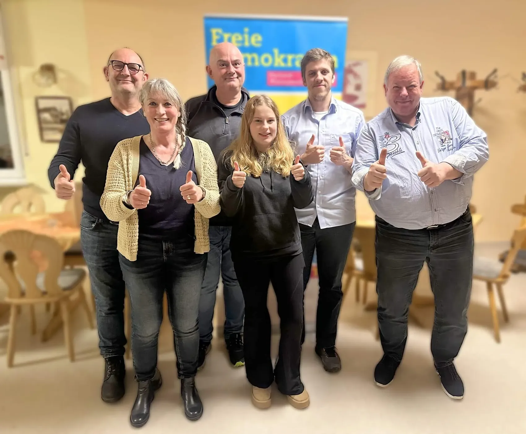 Im Mittelpunkt stand dabei vor allem das Abschneiden der FDP bei der Kommunalwahl 2025. Der Ortsverband hatte den Landesdurchschnitt deutlich übertroffen, verfehlte jedoch knapp einen zweiten Sitz im Gemeinderat und damit den Fraktionsstatus - es fehlten nur wenige Stimmen. Ungeachtet dessen ist die FDP weiterhin mit Ratsmitglied Armin Speckmann im Rat vertreten. Speckmann berichtete aus den ersten Ratssitzungen und schilderte insbesondere die angespannte finanzielle Lage der Gemeinde. Ergänzt wurden seine Ausführungen durch Claus Vogel, der als sachkundiger Bürger Einblicke in die Kreispolitik gab.
