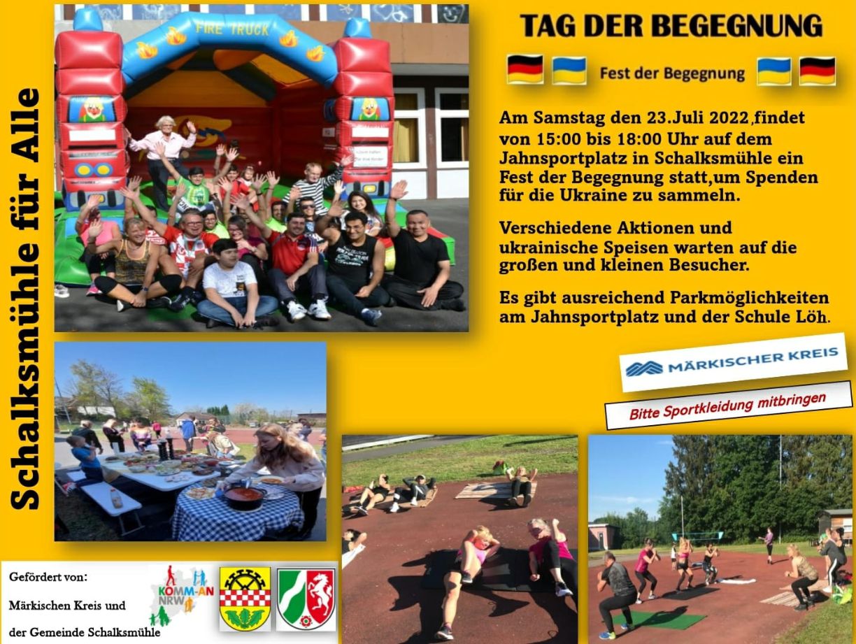 Am morgigen Samstag veranstaltet die Gemeinde Schalksmühle von 15 Uhr bis 18 Uhr auf dem Jahnsportplatz eine Spendenaktion zugunsten der Ukraine-Hilfe in Verbindung mit einem Familienfest.