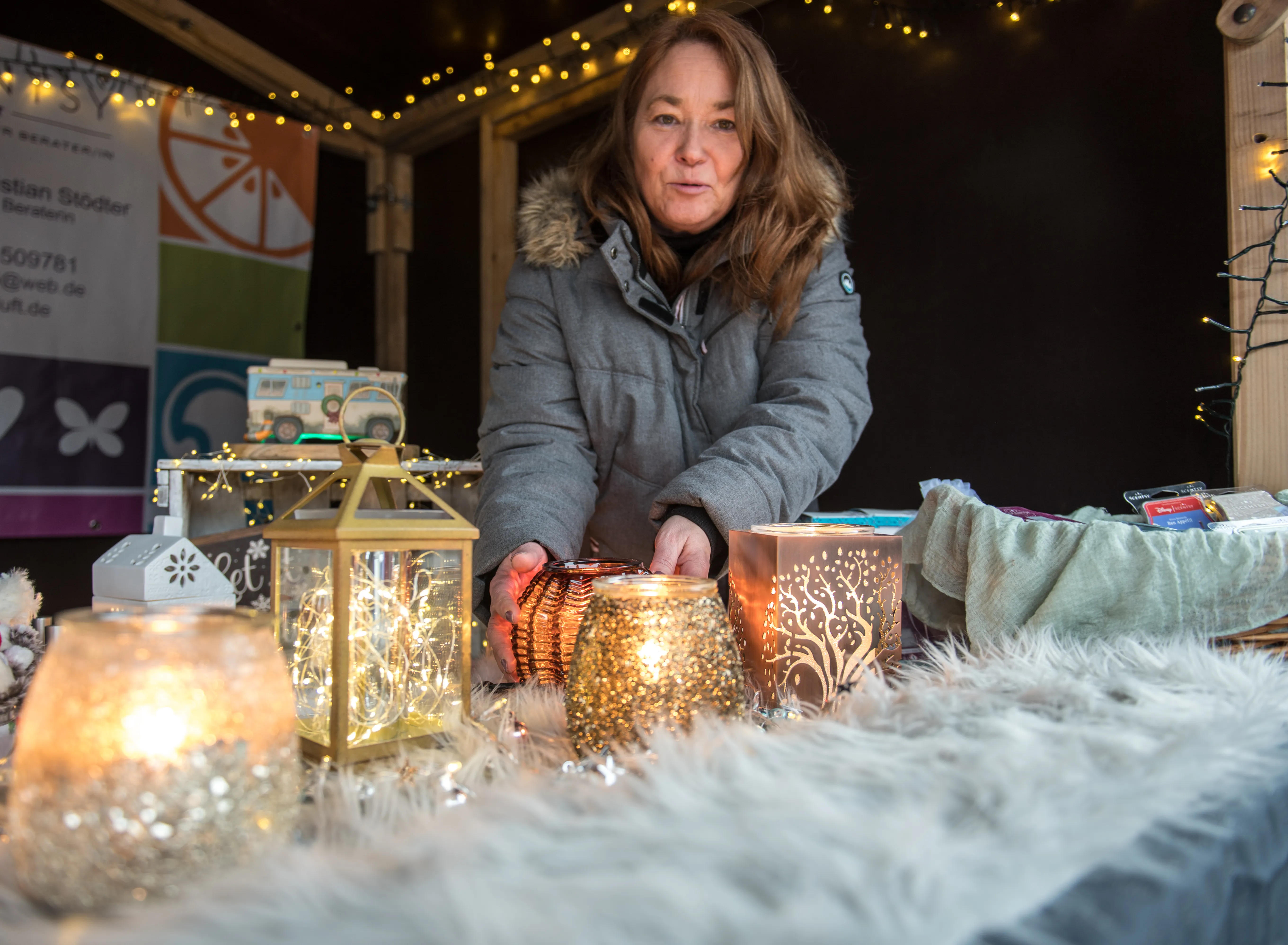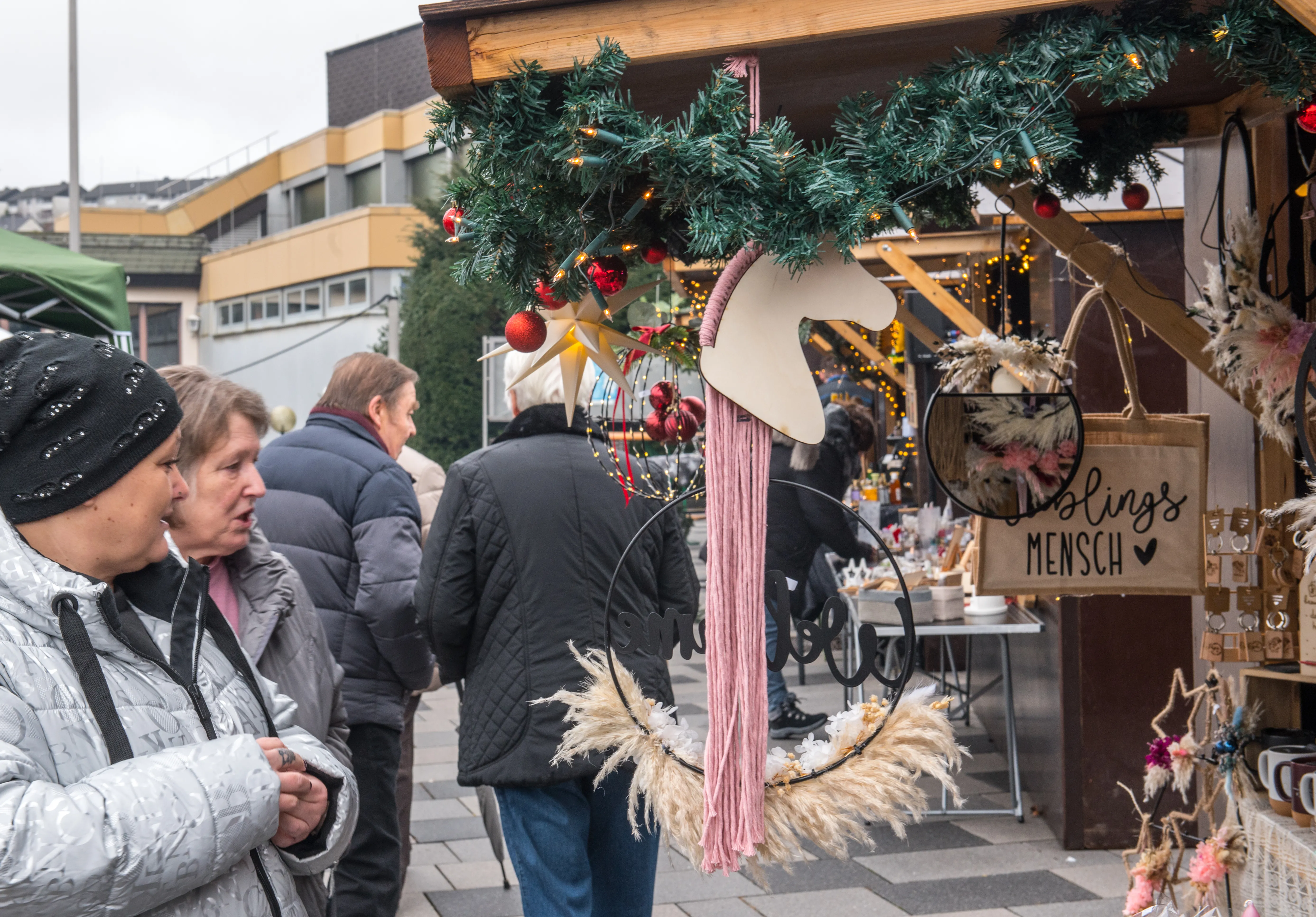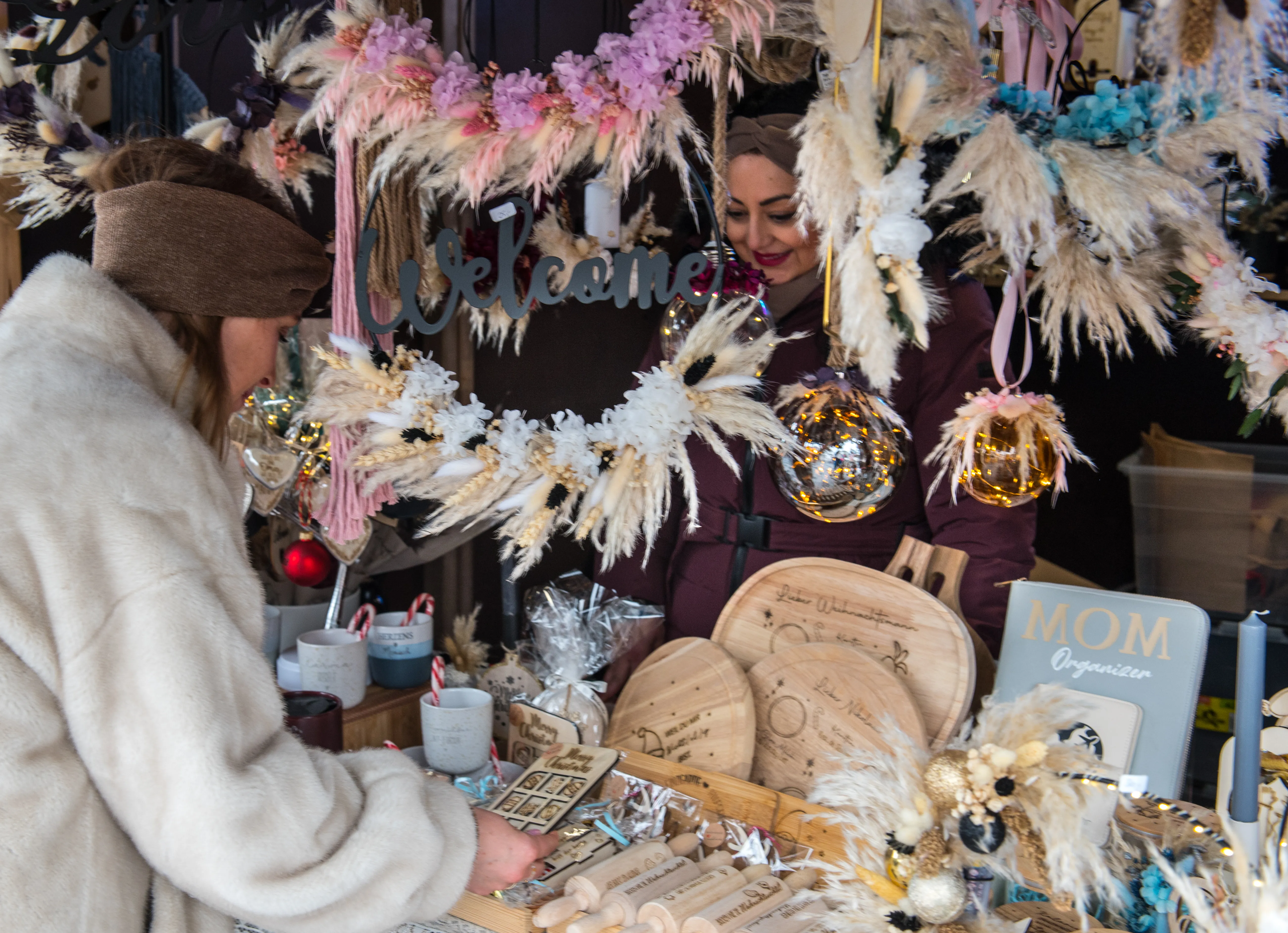 Als Ersatz für die umbaubedingt gesperrte Stadthalle hatte man neben der weihnachtlichen Hüttenstadt zwei große, beheizte Festzelte aufgebaut. Dort konnten die Besucher ungestört von Regen und Kälte im großen Kreativangebot stöbern und zwischen Geschenkideen, Kunstvollem für jeden Geschmack und Deko-Artikeln in unzähligen Variationen wählen.