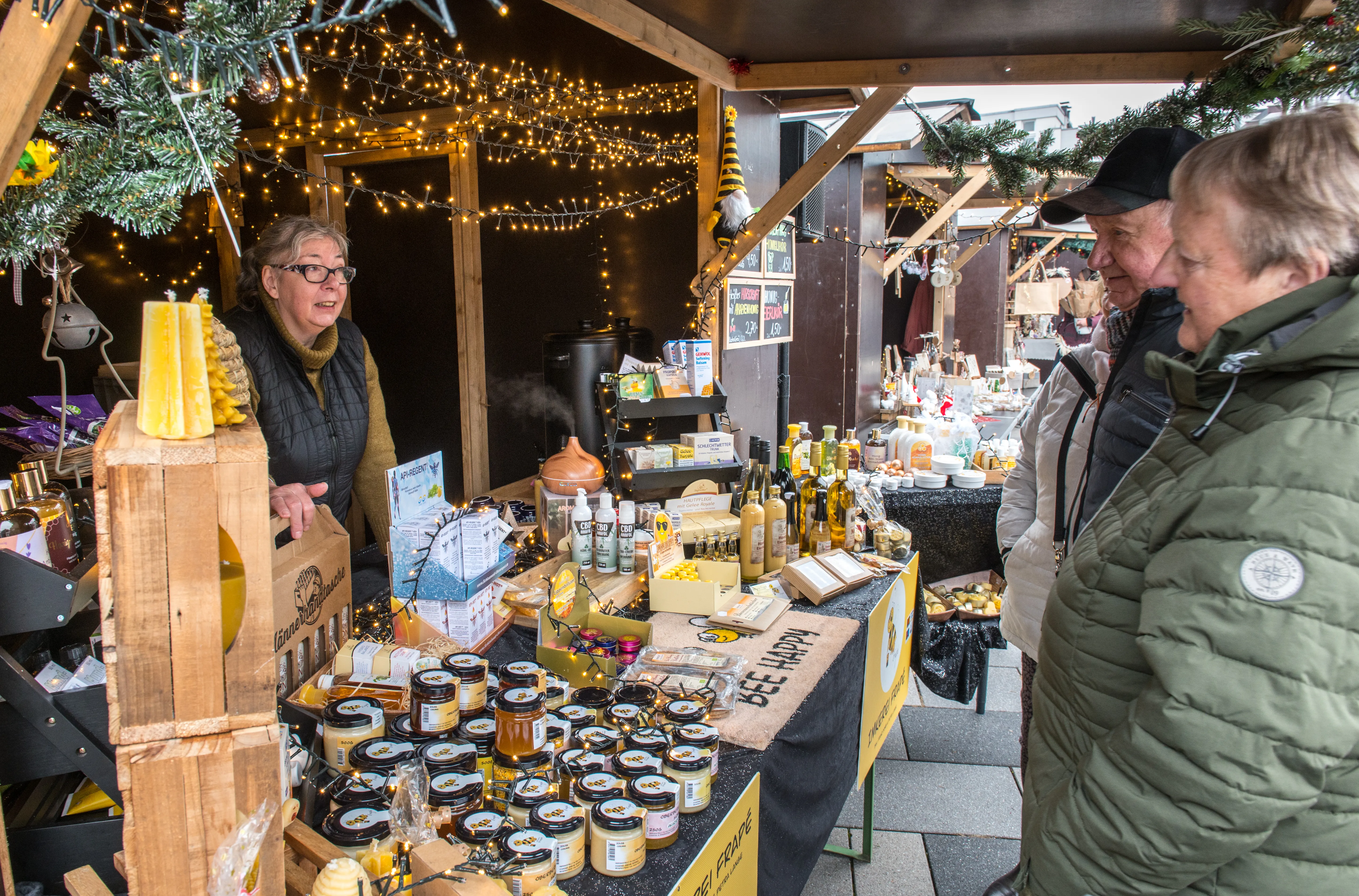 Buntes Treiben und festliche Stimmung herrschten auf dem traditionellen Weihnachtsmarkt am zweiten Adventwochenende auf dem Meinerzhagener Otto-Fuchs-Platz.