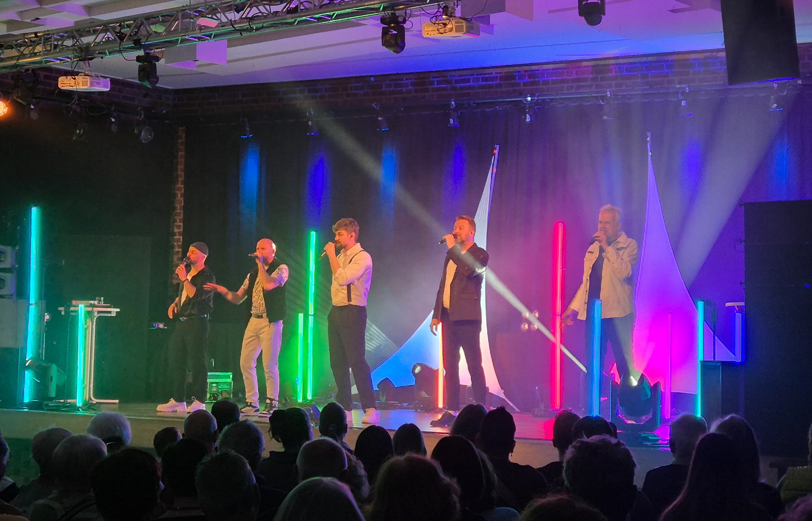 Zwischendurch wird es auch politisch. Dann geht es um die zunehmende Überwachung. „Pack die Drohne ein, wir wollen heut Spione sein“, greift einen Trend zur Videoüberwachung auf. Mit „Wir sind mehr“ beziehen die fünf Sänger eindeutig Position gegen Hass und Ausgrenzung. Sie stellen sich denen entgegen, die fordern Künstler dürften sich nicht politisch nicht äußern, selbst aber die Lautesten sind. „Die Freiheit, die wir haben, die geben wir nicht her“, ist ein Statement, dass die 200 Besucher mit tosendem Beifall unterstützen.