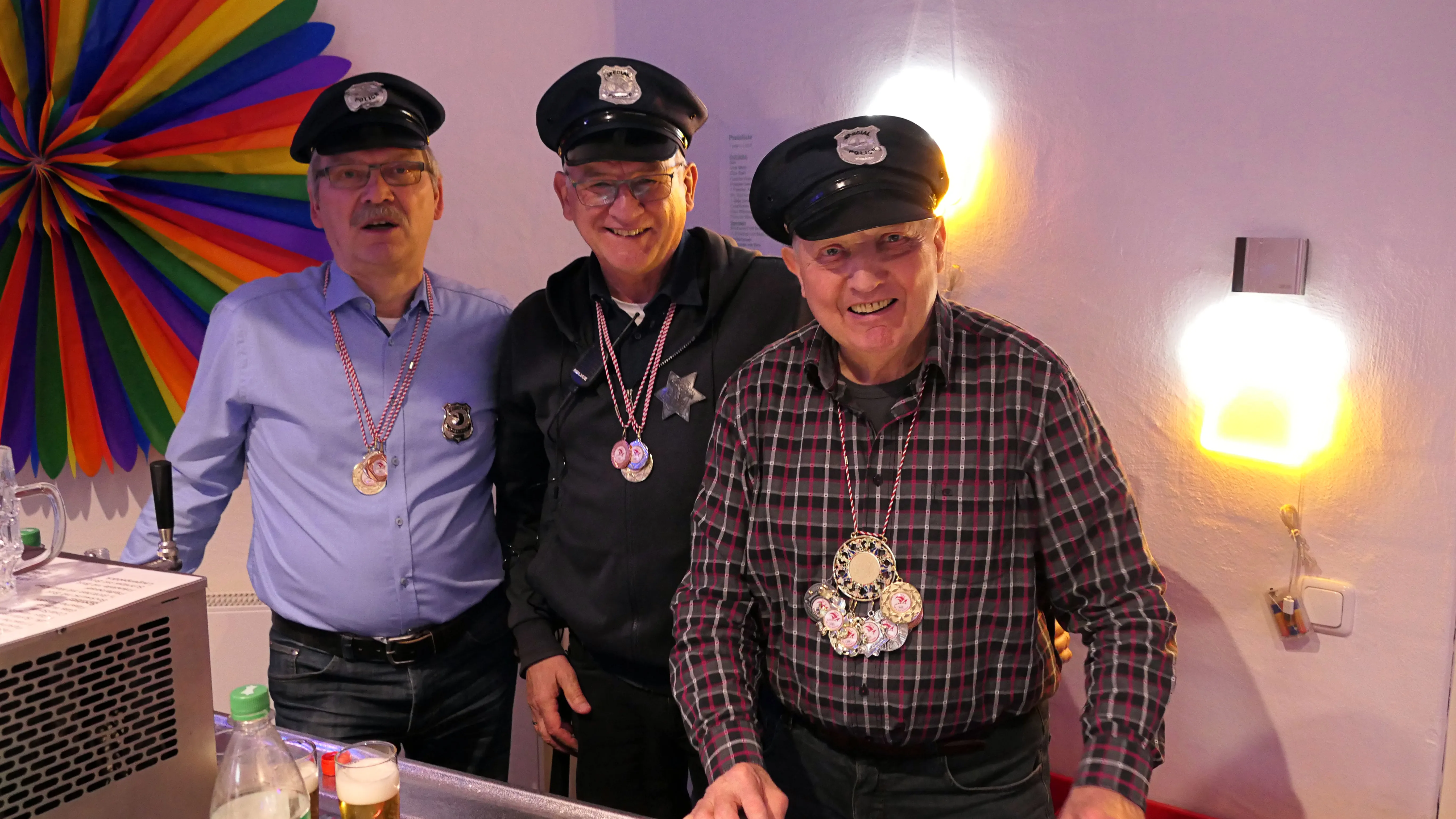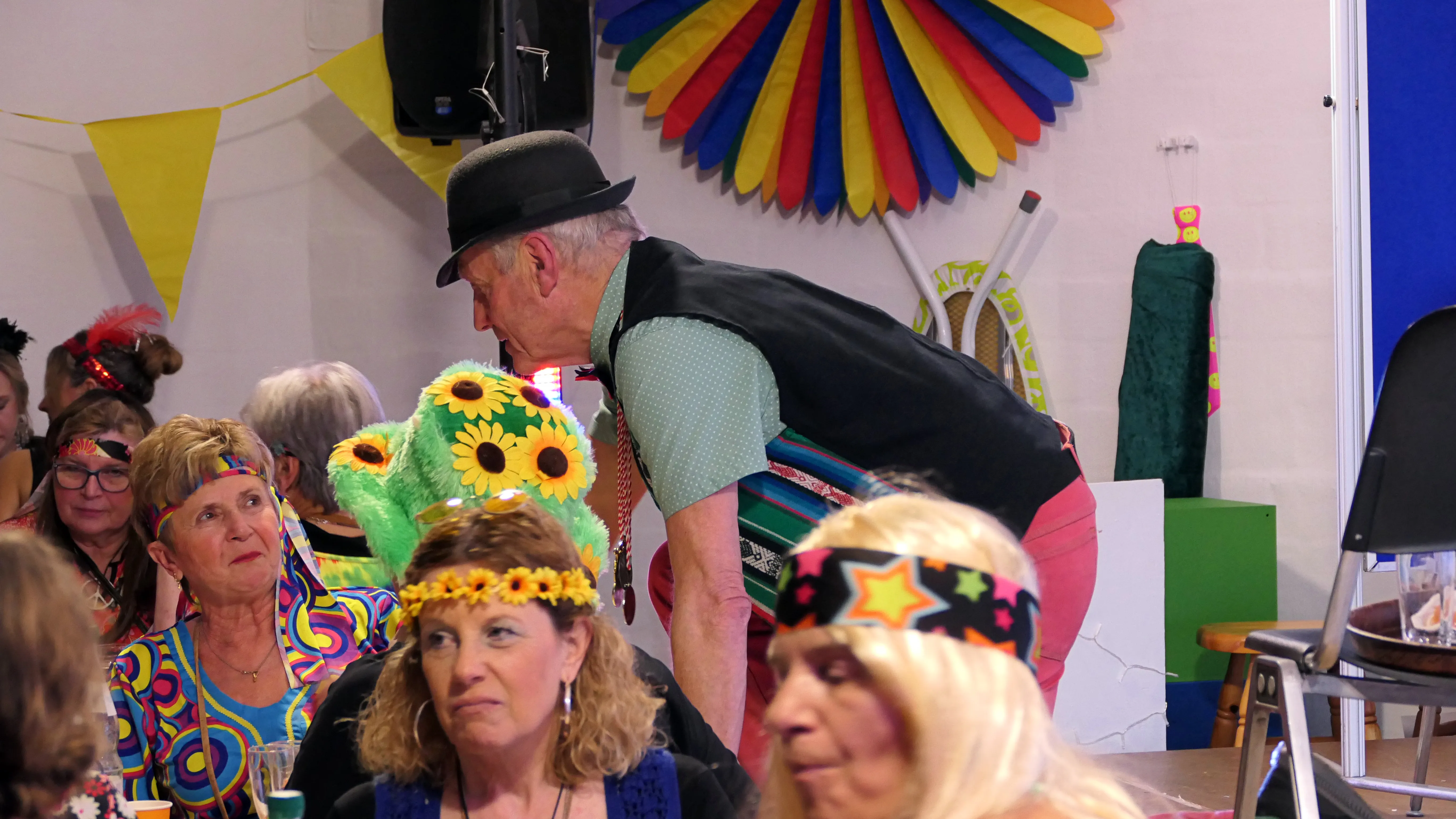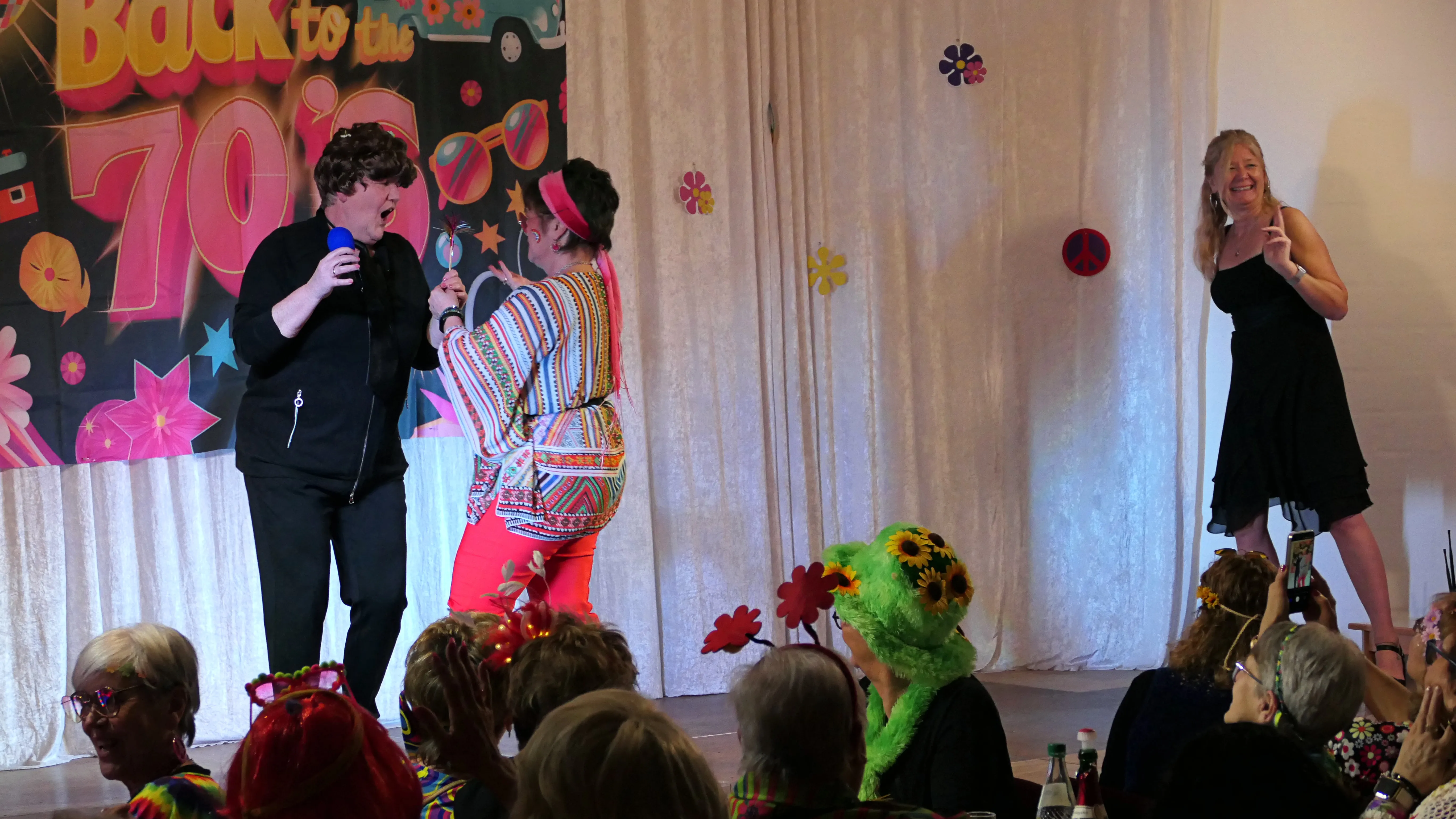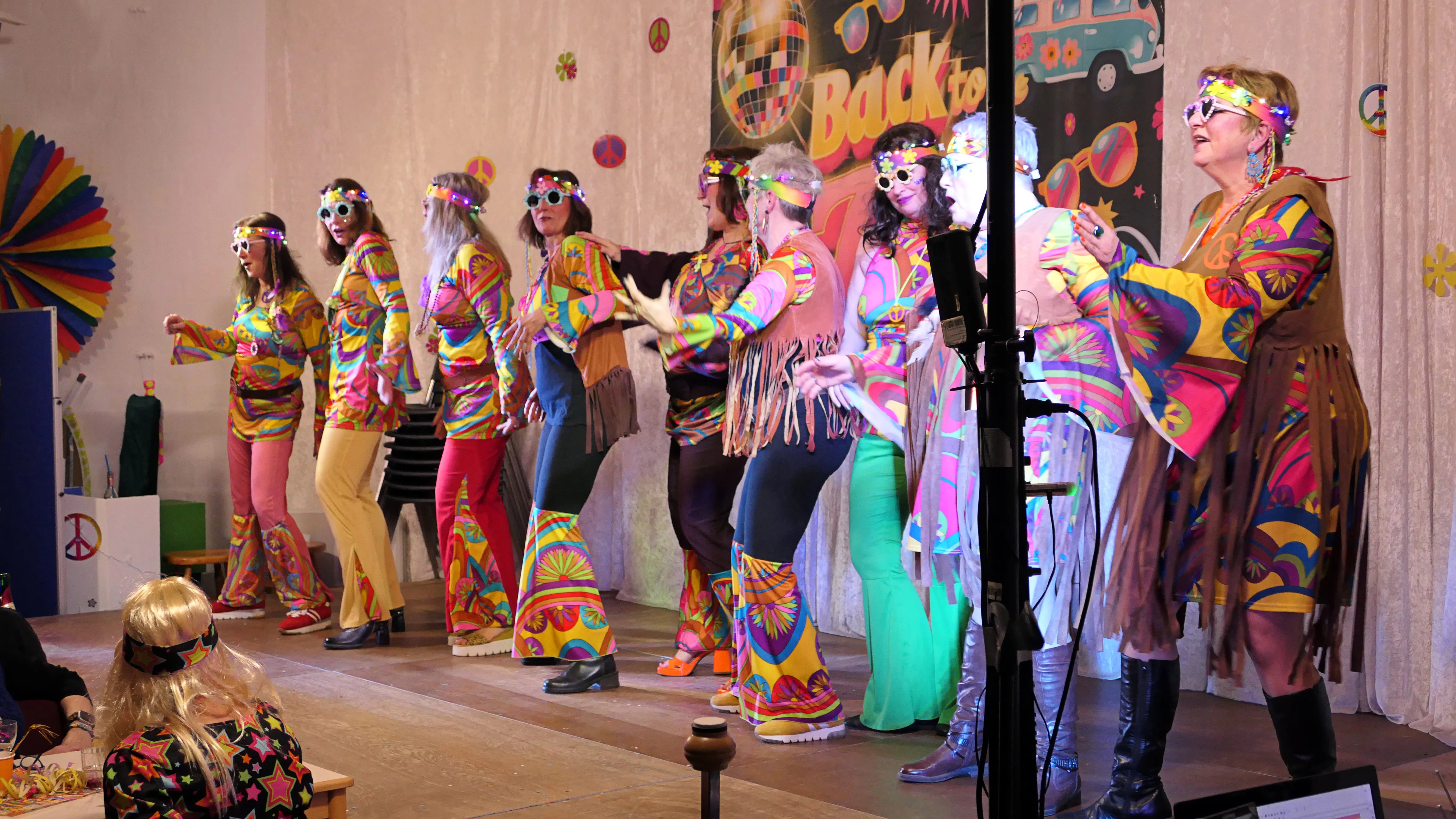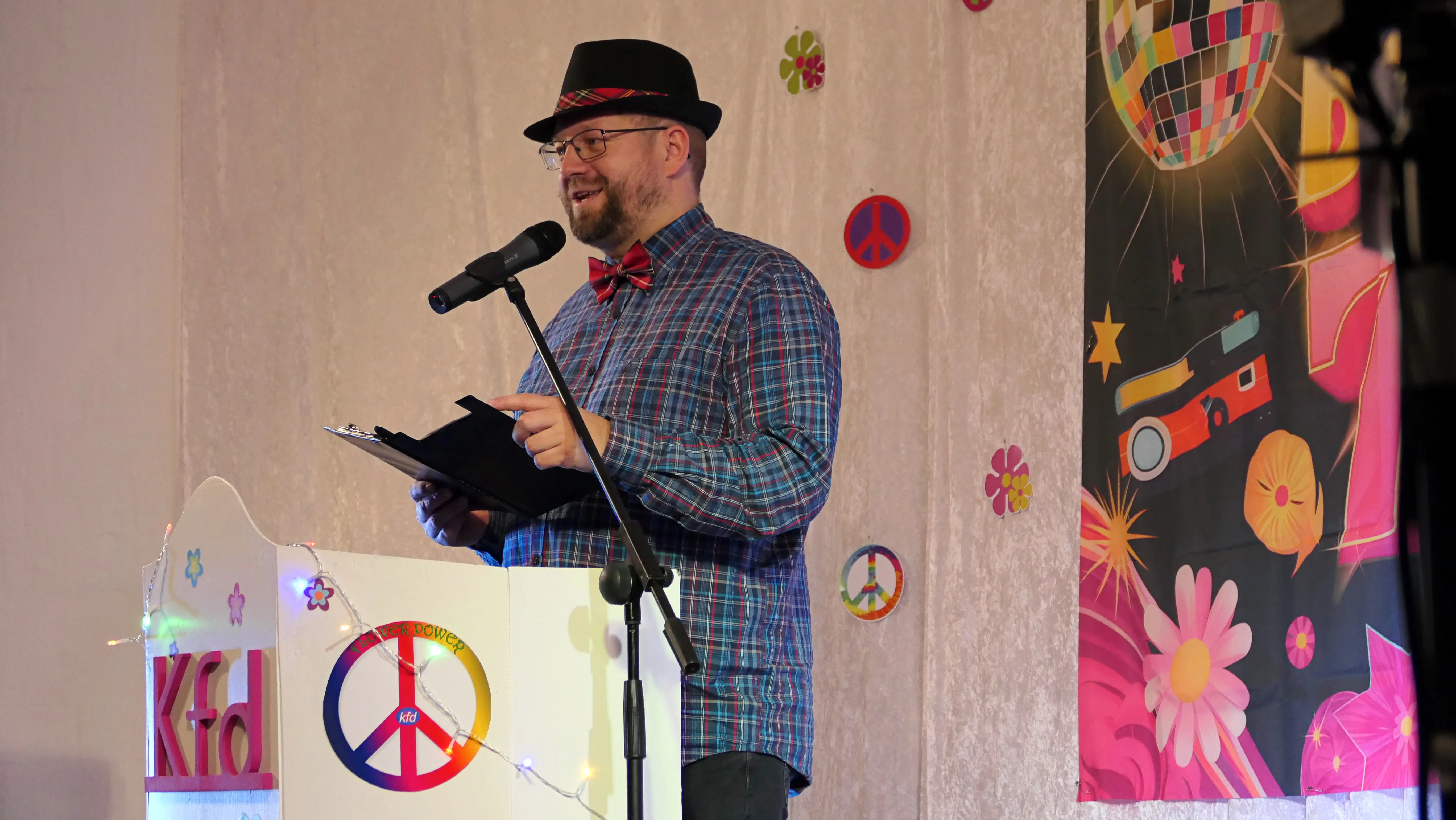 Das gelang mit den Programmpunkten „Die Pilze“ und der „Kneipe Freudenhaus“ ganz vorzüglich. Nach dem „Speeddating“ hatte der „Dä Blödschkopp“ alias Pew Baetzel die komplette, verdiente Aufmerksamkeit des Publikums. Ob die Geschichte von der Wünschelrute oder dem Erlebnis als Stripteasetänzer oder Einräumen der Spülmaschine - als Büttenredner aus Köln gab er alles. „Krankheiten beim Älterwerden“ und ein erster Auftritt der „Gemeindehüpfer Hübl“ beendeten den ersten Teil des Programms.