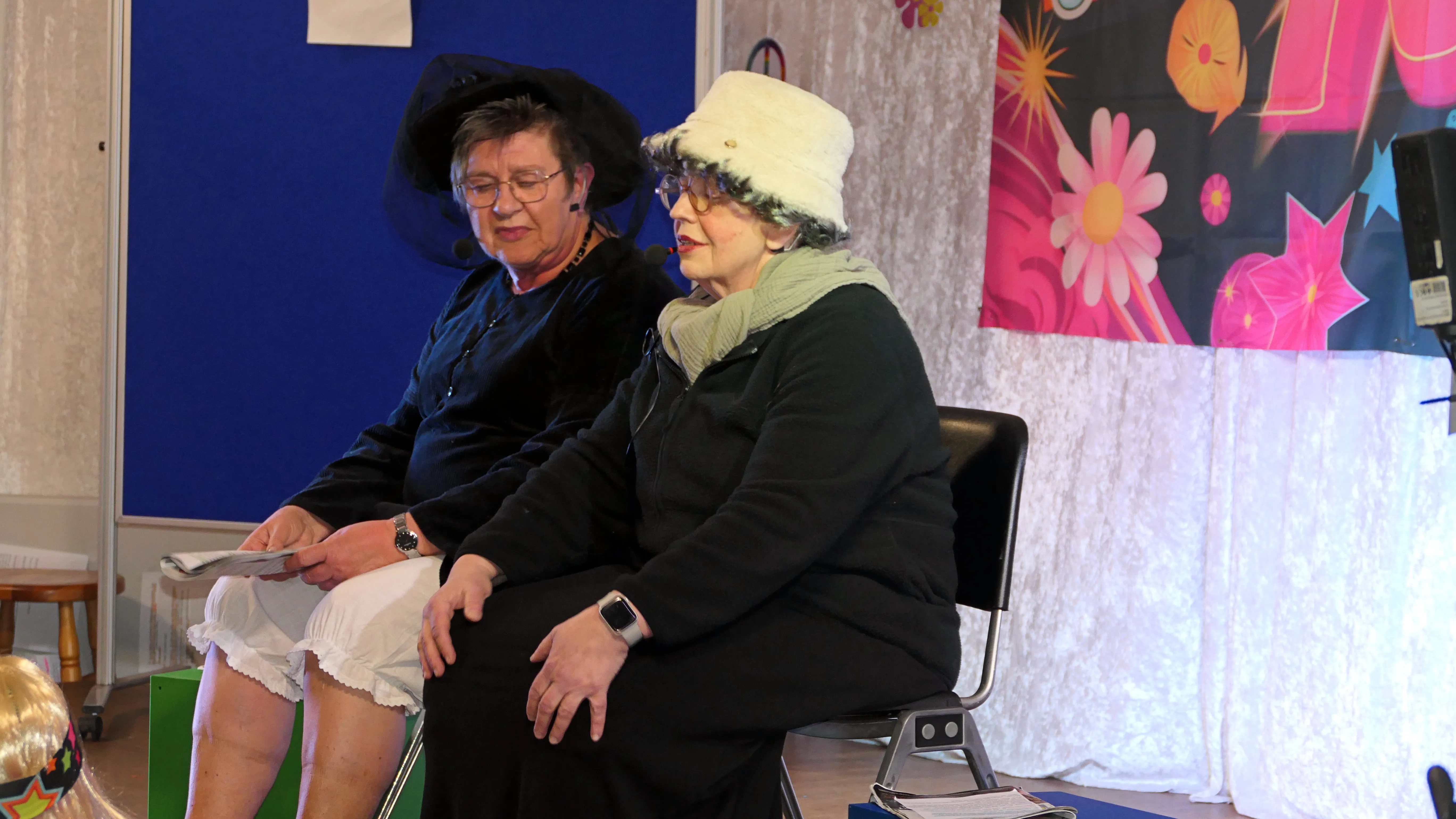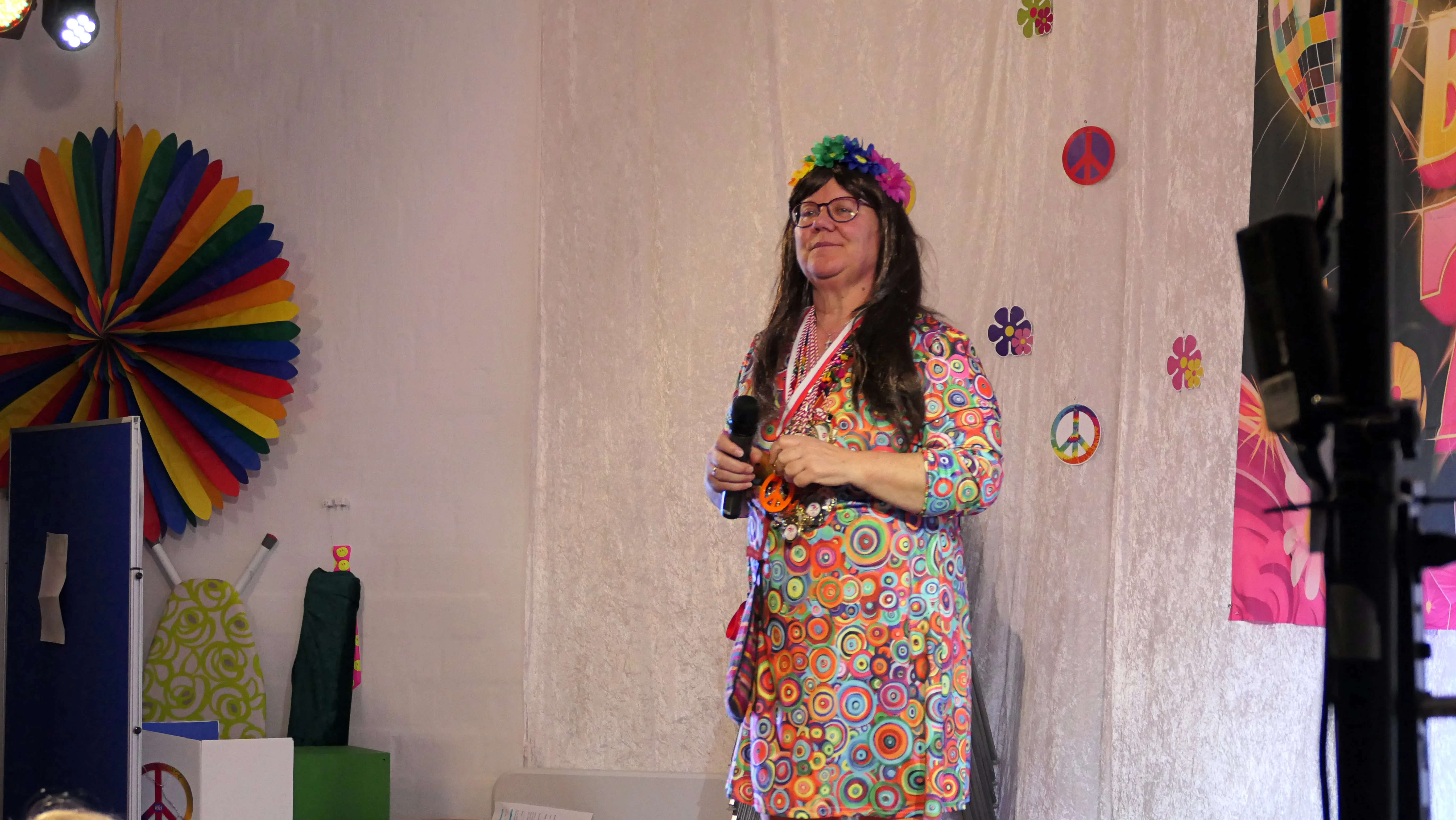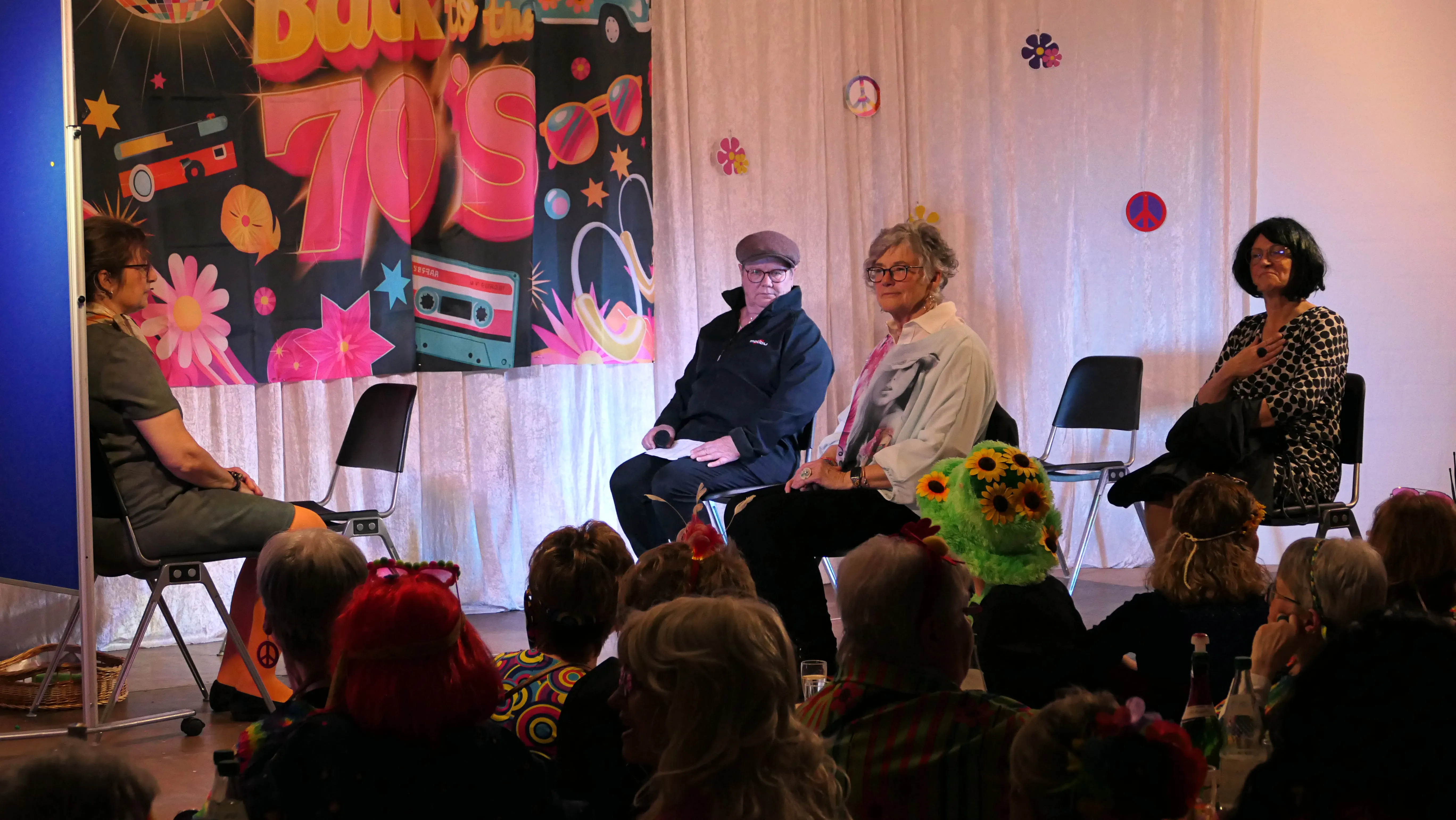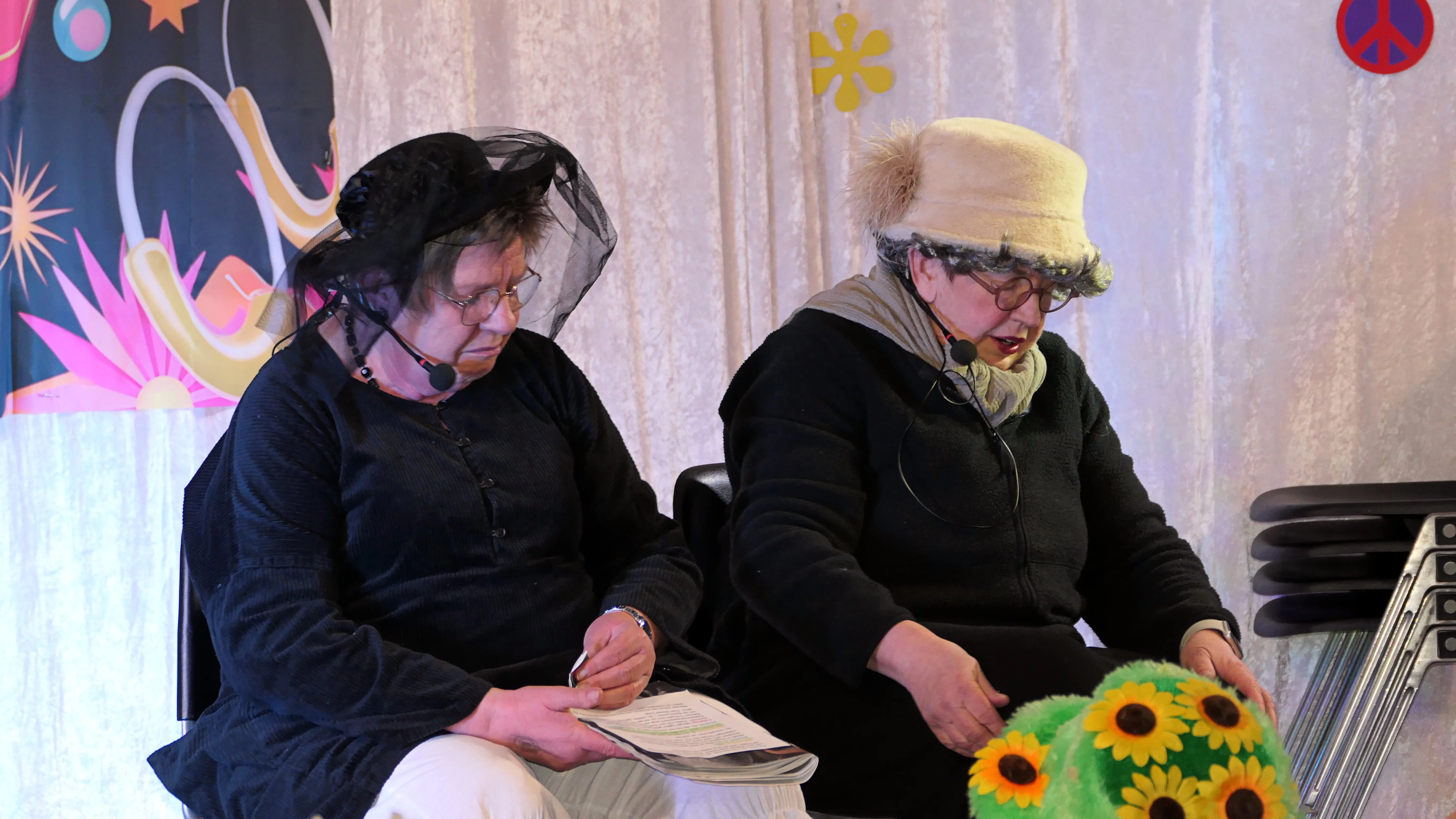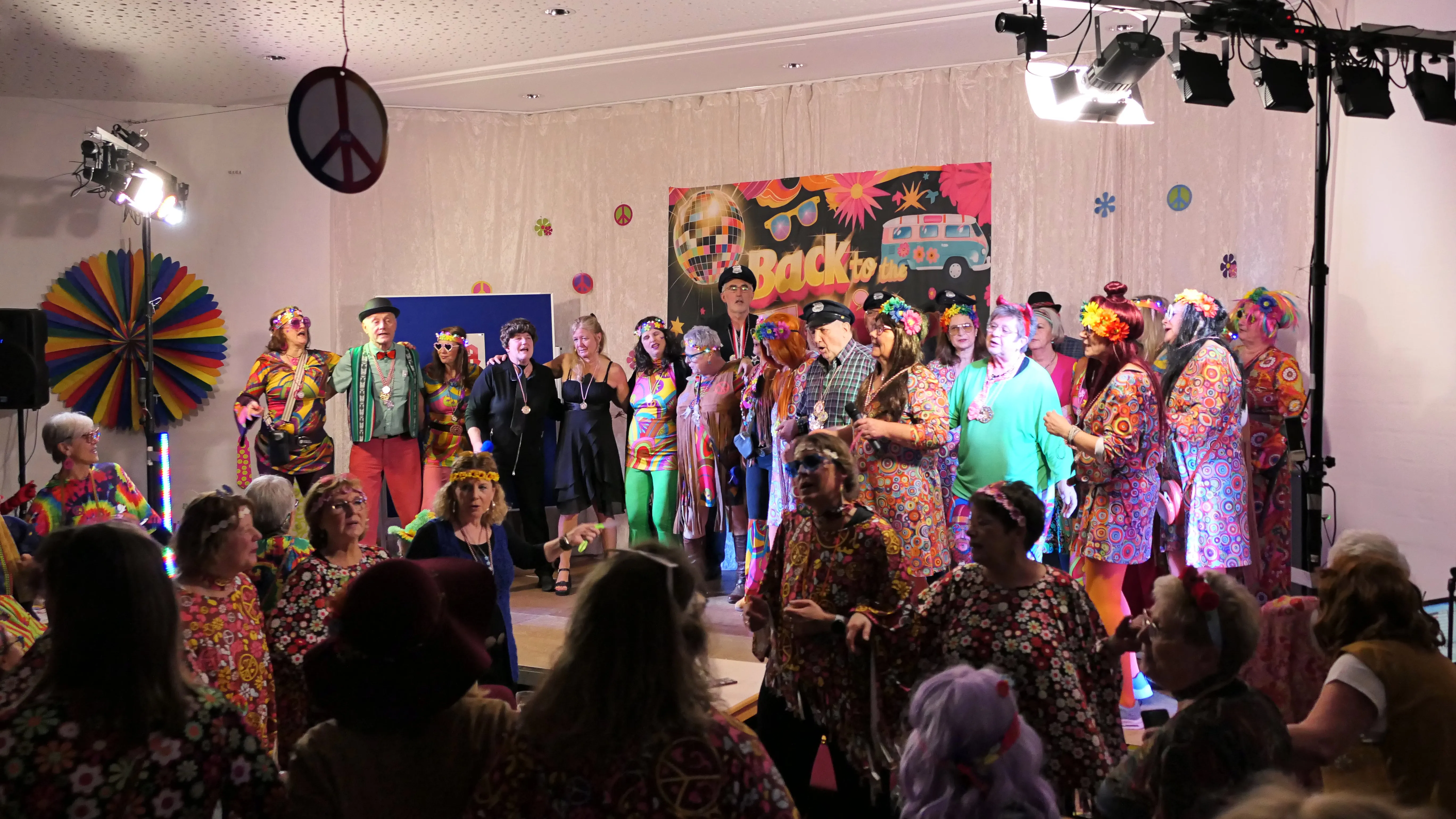 Das gelang mit den Programmpunkten „Die Pilze“ und der „Kneipe Freudenhaus“ ganz vorzüglich. Nach dem „Speeddating“ hatte der „Dä Blödschkopp“ alias Pew Baetzel die komplette, verdiente Aufmerksamkeit des Publikums. Ob die Geschichte von der Wünschelrute oder dem Erlebnis als Stripteasetänzer oder Einräumen der Spülmaschine - als Büttenredner aus Köln gab er alles. „Krankheiten beim Älterwerden“ und ein erster Auftritt der „Gemeindehüpfer Hübl“ beendeten den ersten Teil des Programms.