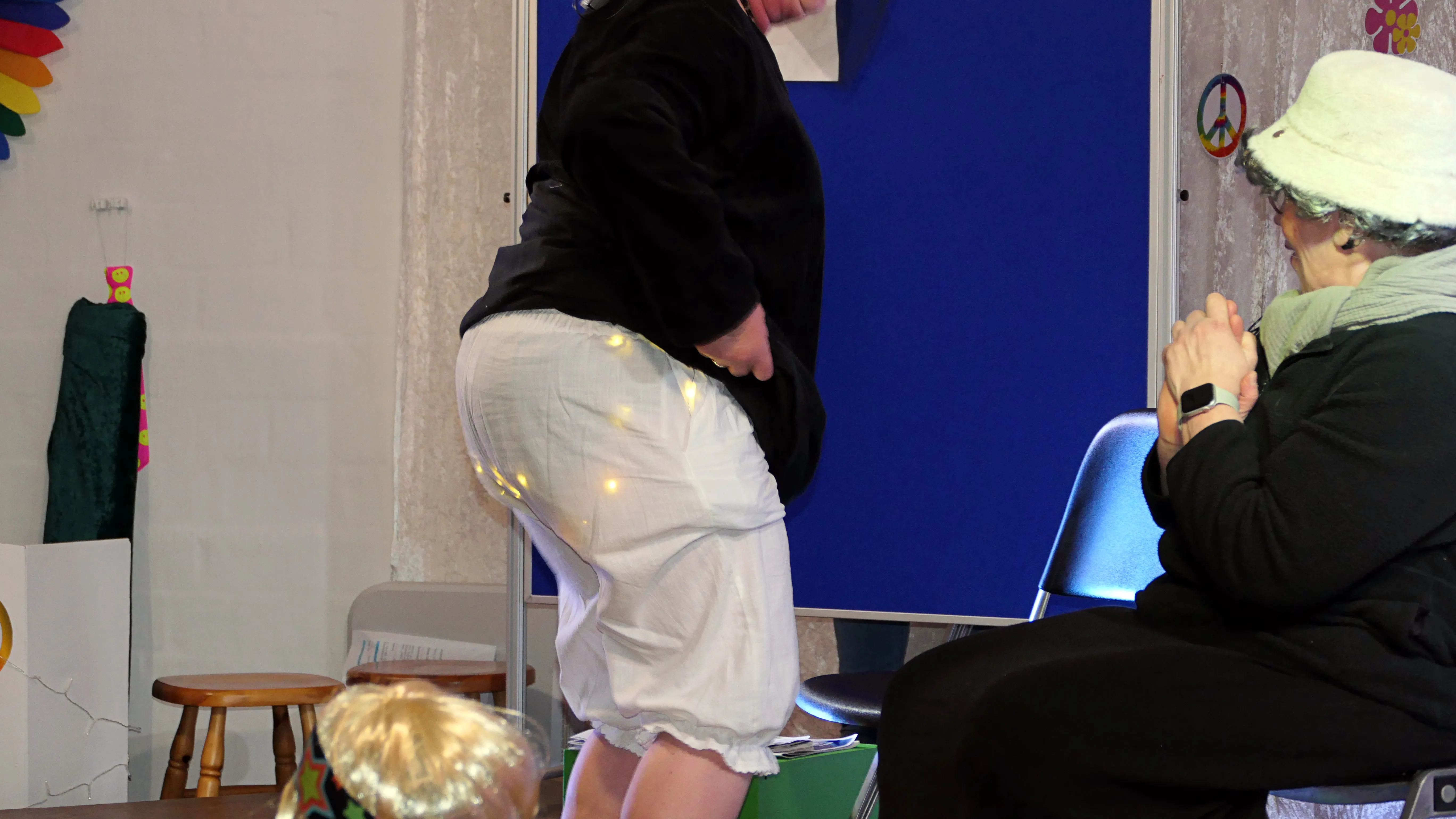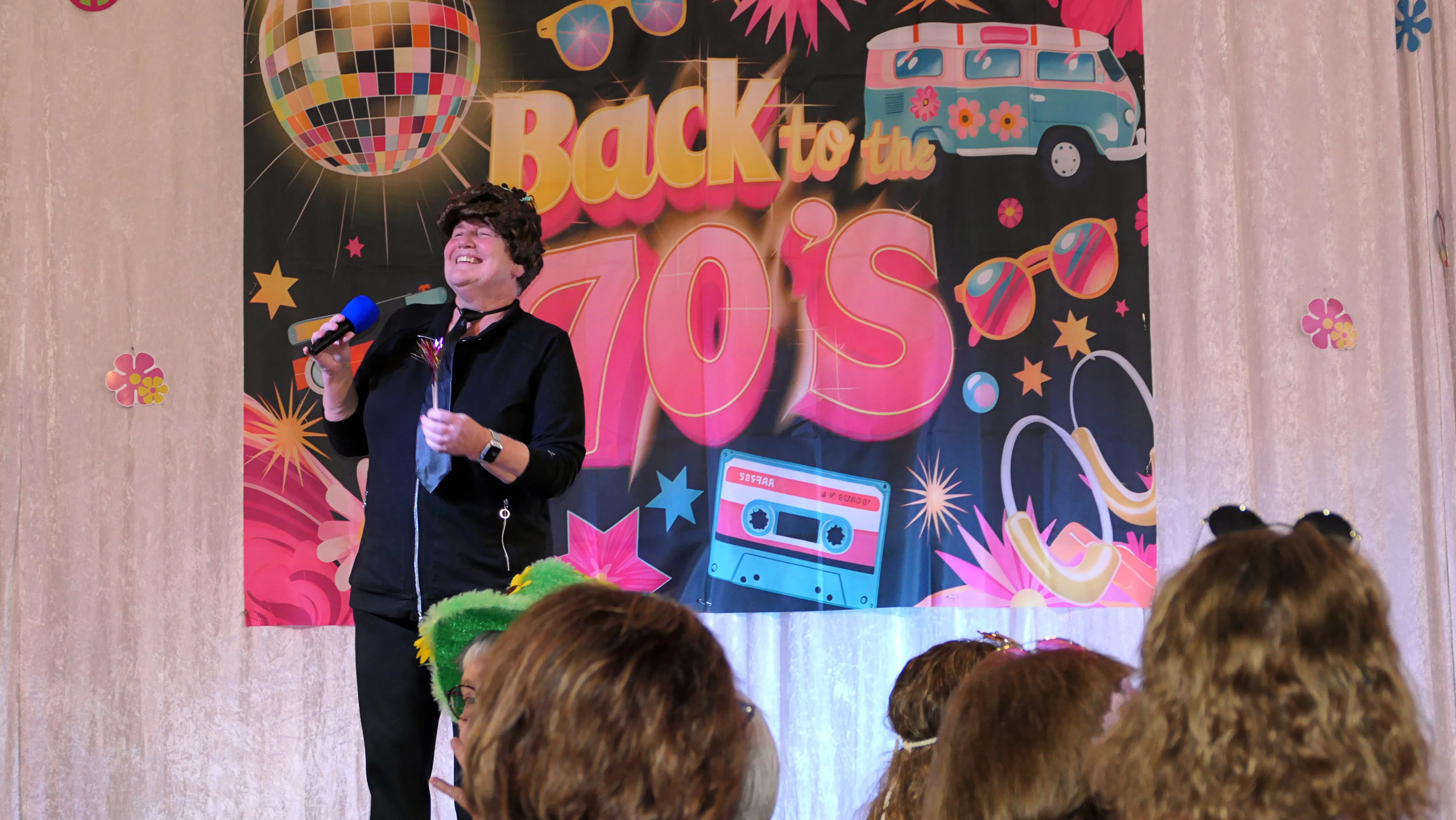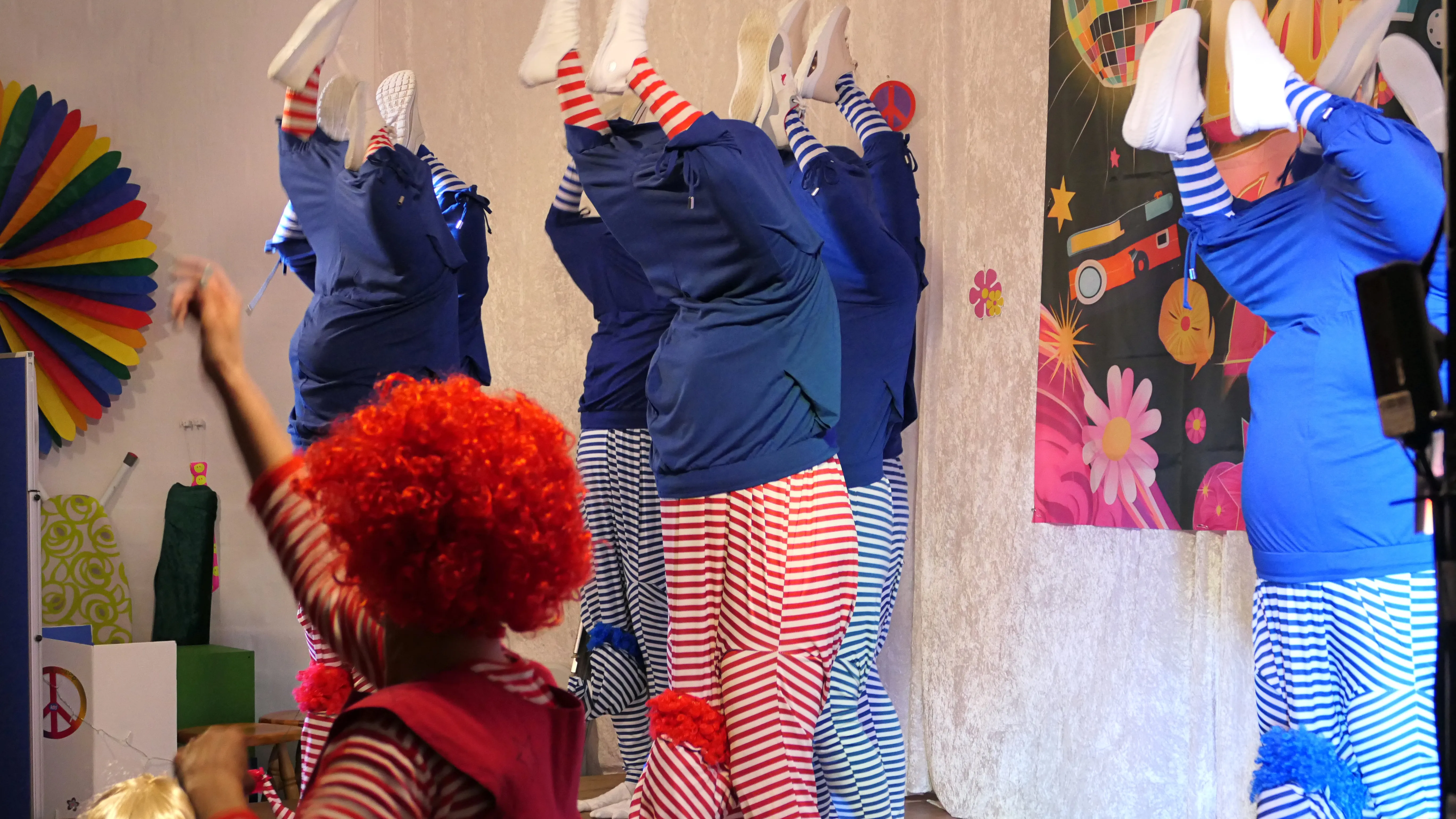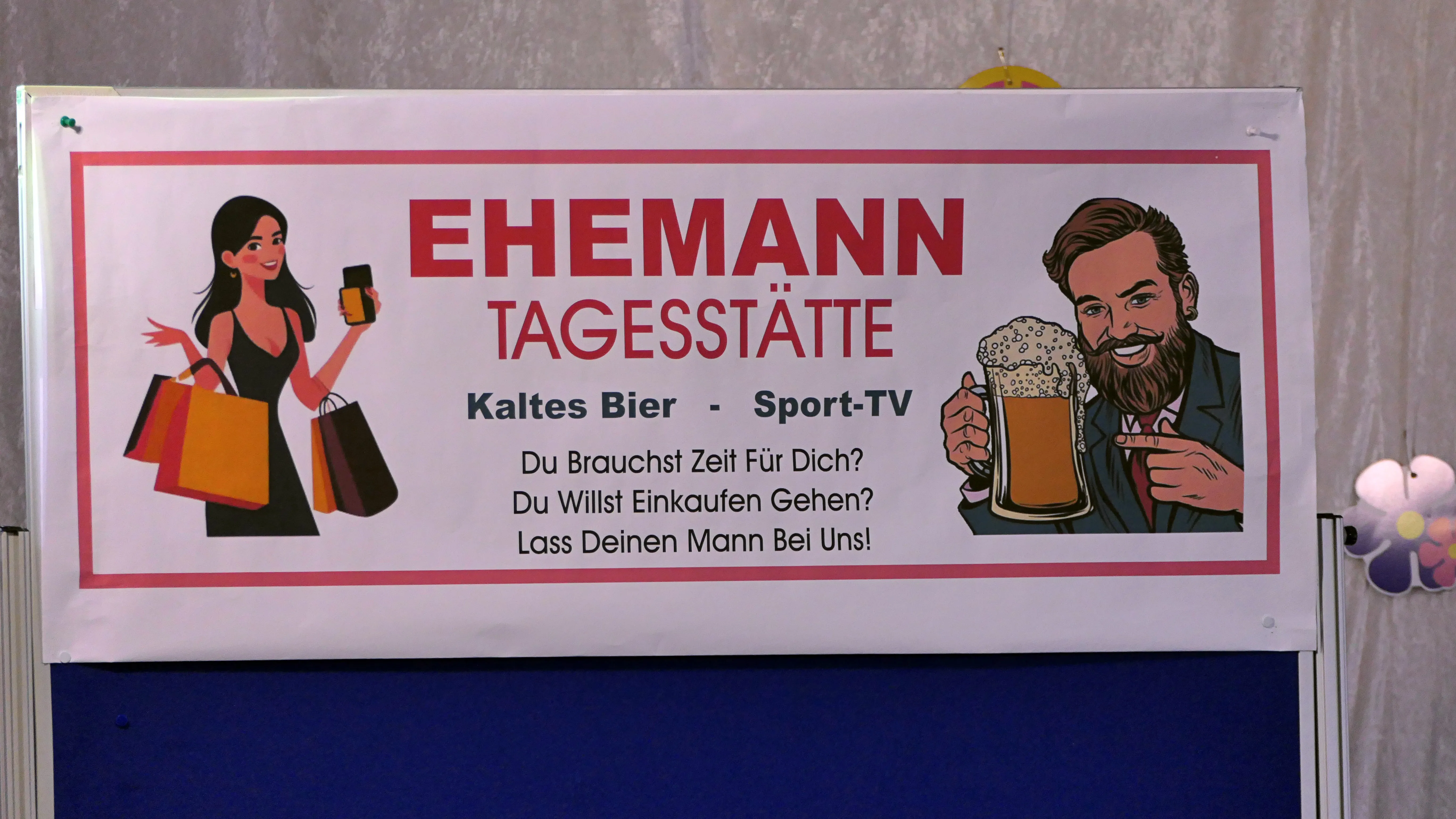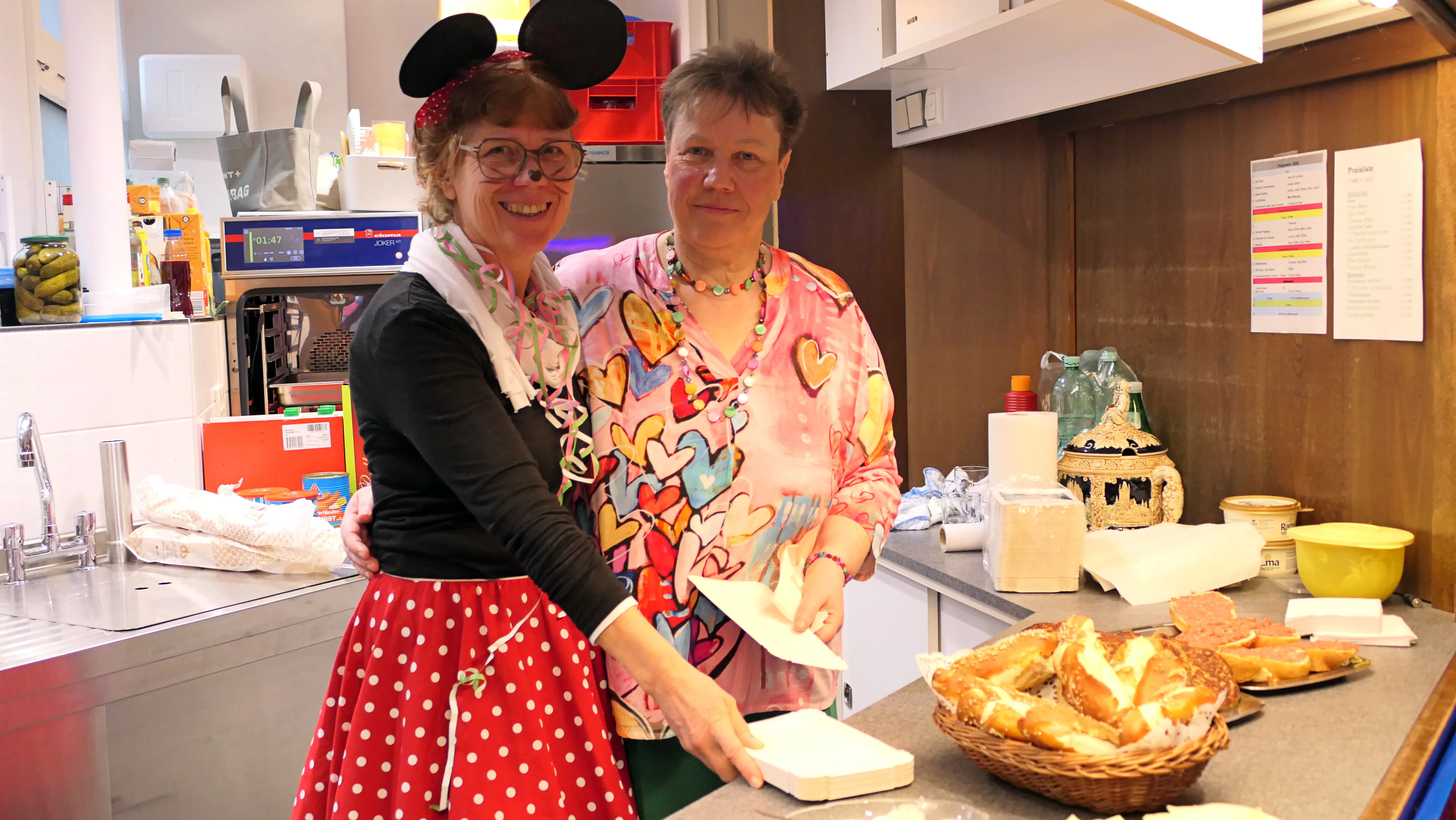 Das gelang mit den Programmpunkten „Die Pilze“ und der „Kneipe Freudenhaus“ ganz vorzüglich. Nach dem „Speeddating“ hatte der „Dä Blödschkopp“ alias Pew Baetzel die komplette, verdiente Aufmerksamkeit des Publikums. Ob die Geschichte von der Wünschelrute oder dem Erlebnis als Stripteasetänzer oder Einräumen der Spülmaschine - als Büttenredner aus Köln gab er alles. „Krankheiten beim Älterwerden“ und ein erster Auftritt der „Gemeindehüpfer Hübl“ beendeten den ersten Teil des Programms.