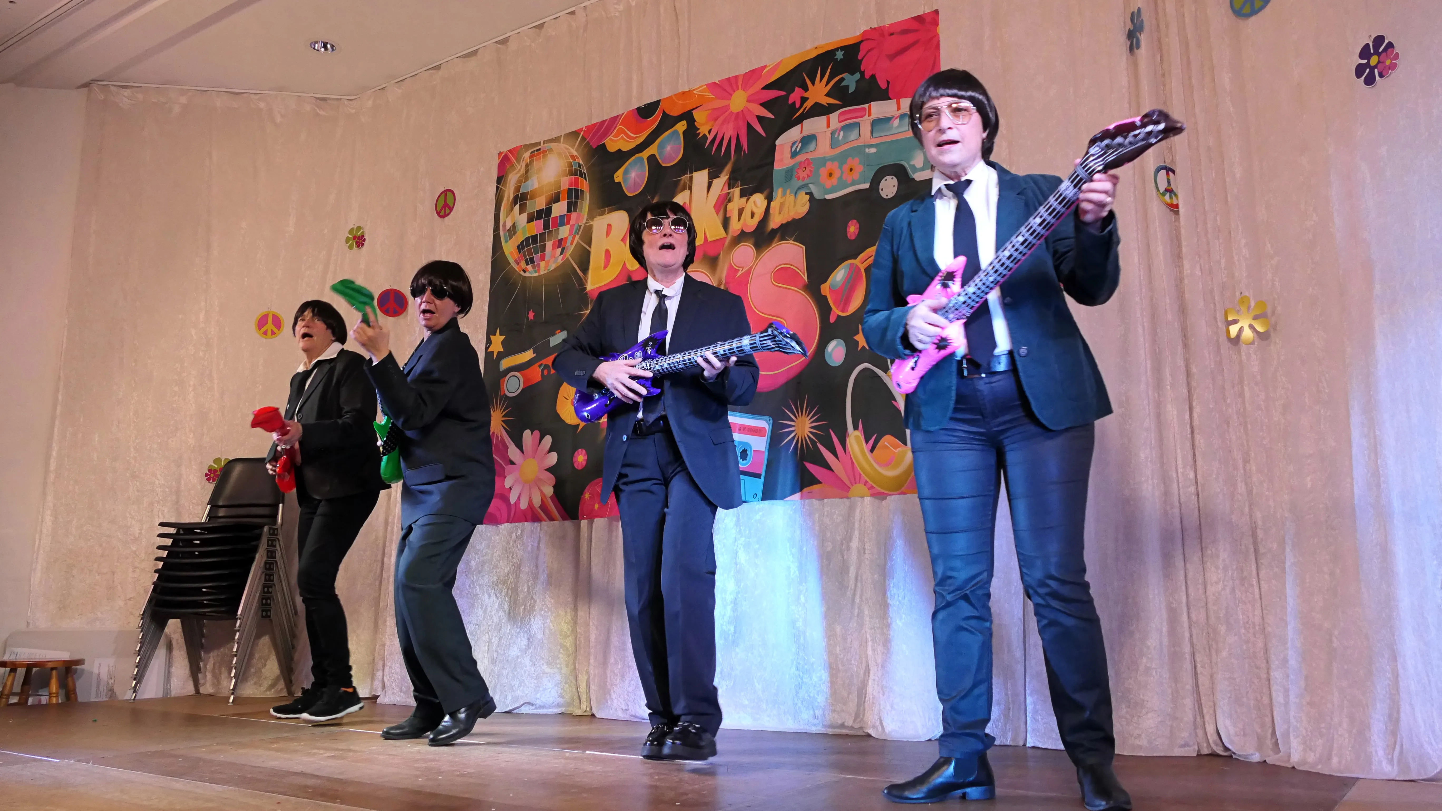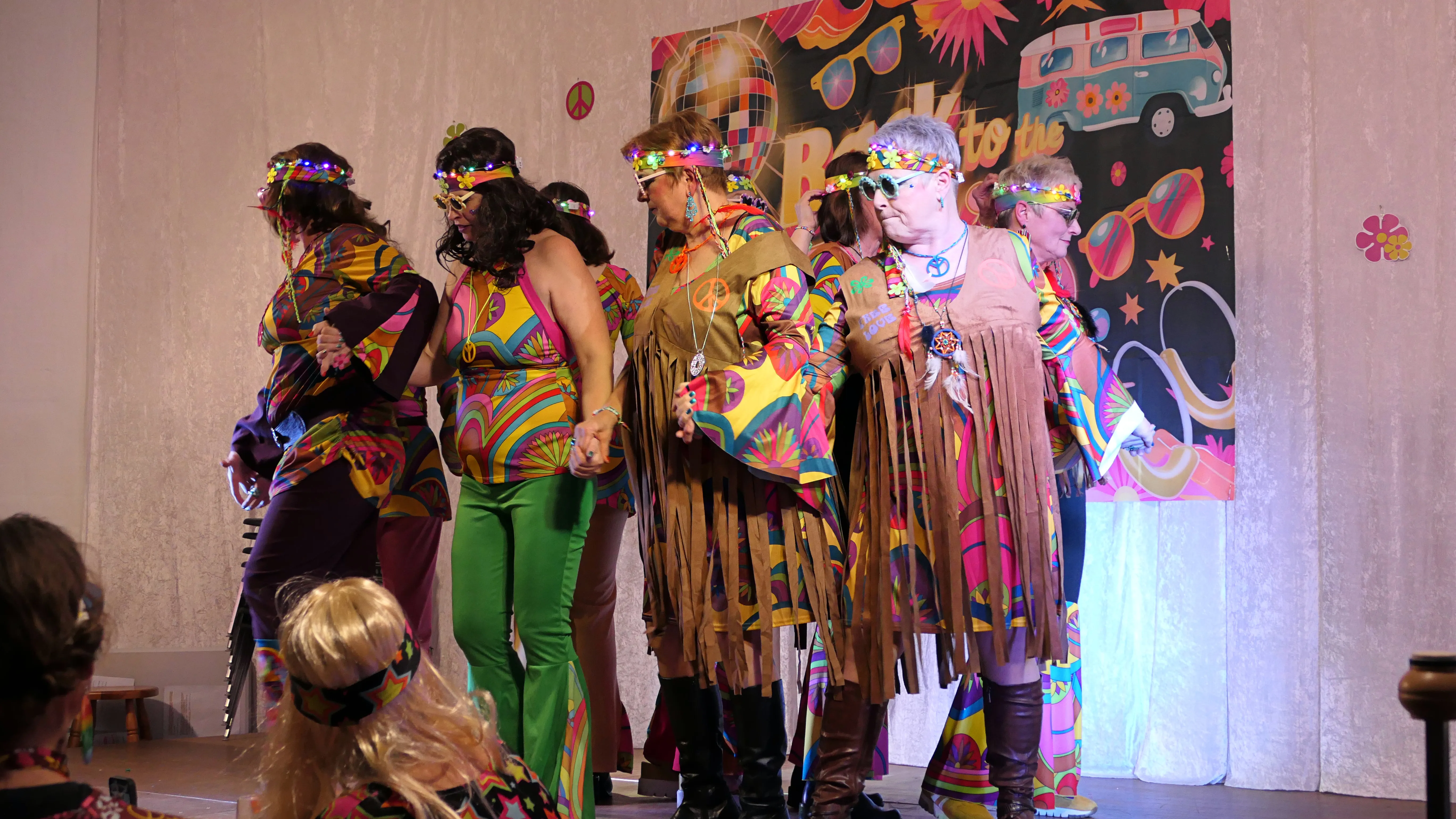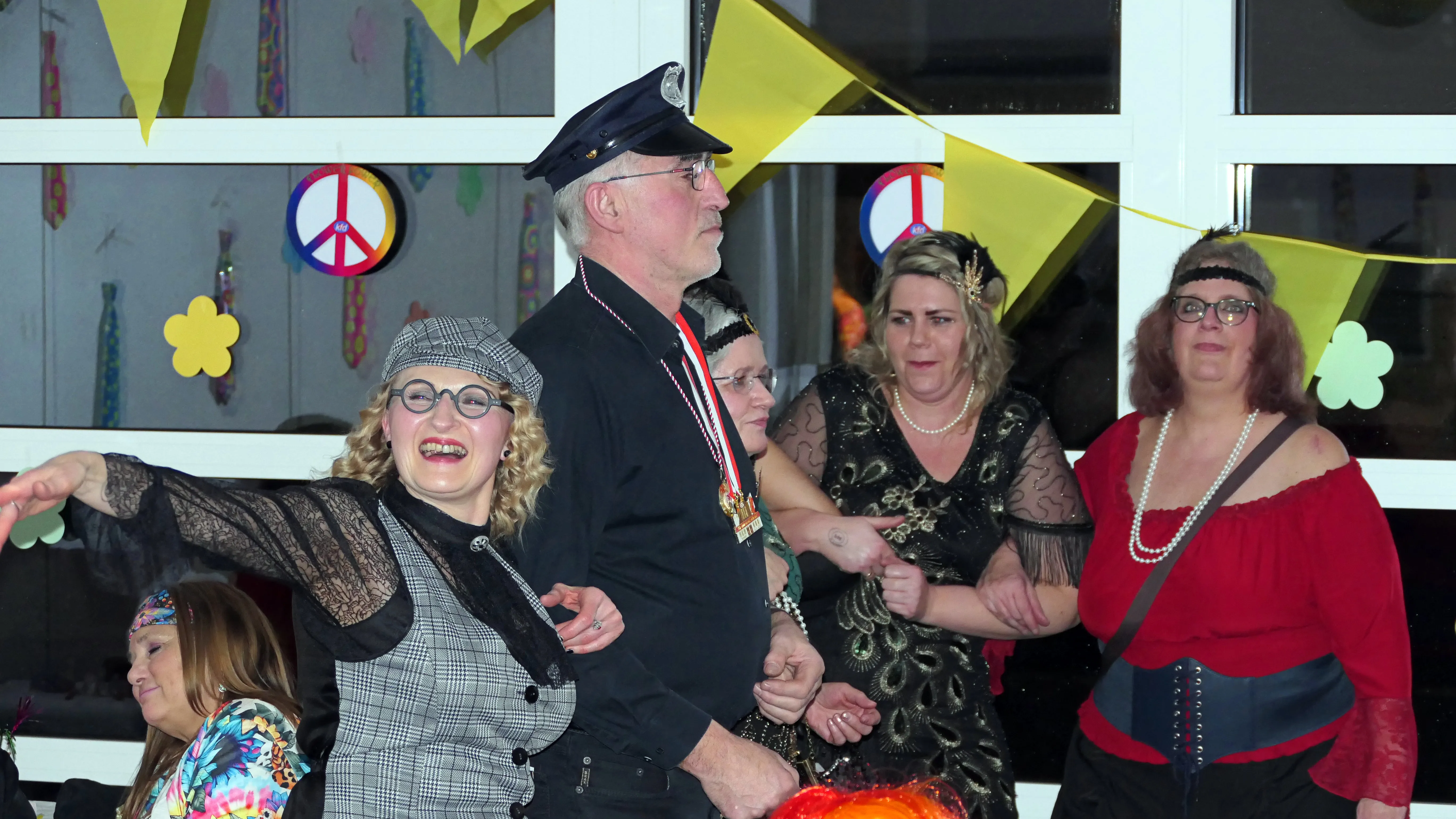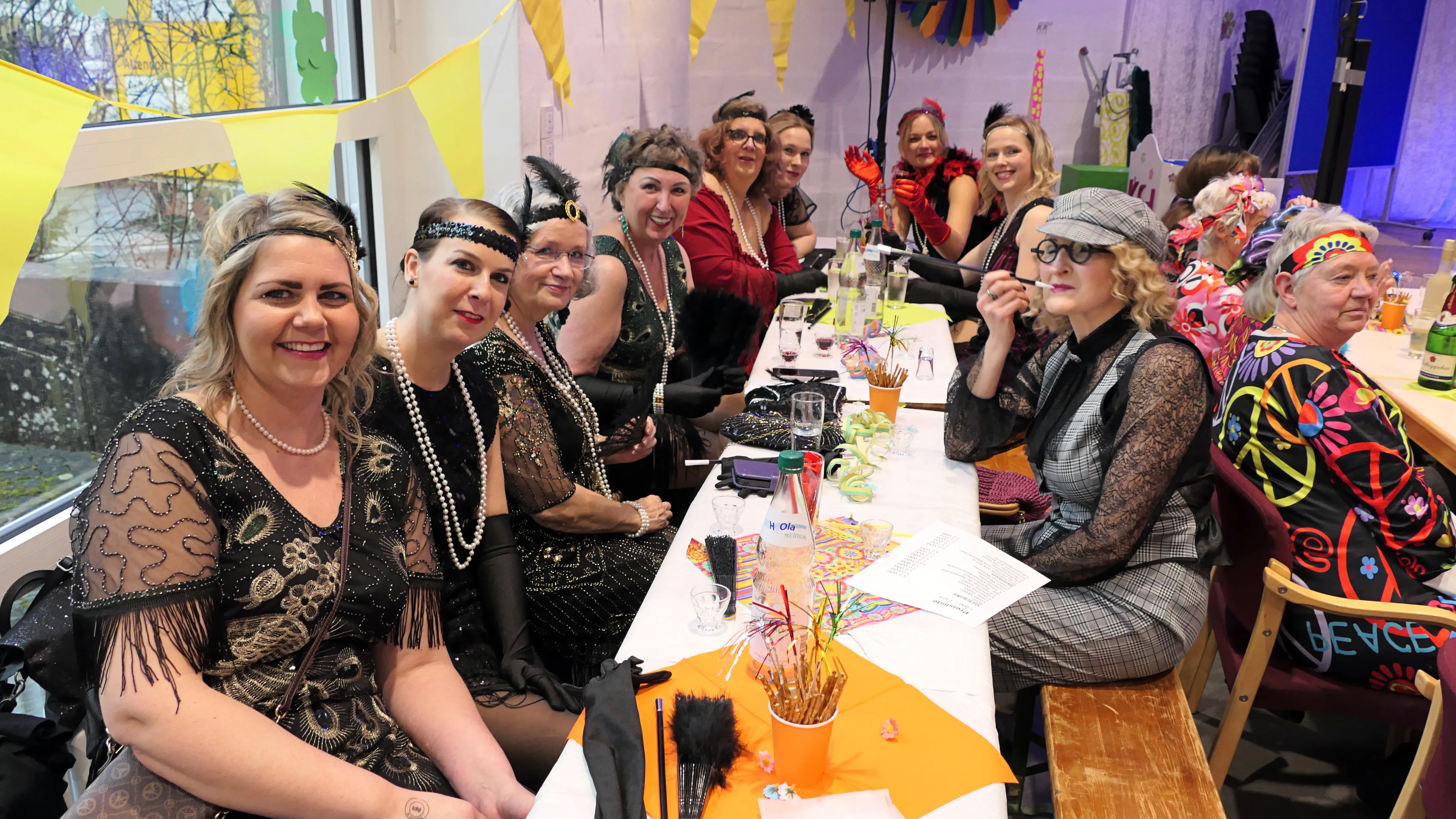 Dies lag ganz bestimmt nicht daran, dass Männer an diesem Abend eine eher untergeordnete Rolle als Bedienung, als Umbauteam auf der Bühne oder als Transporteure für einen sicheren Heimweg dienten, nein, es lag an den Verantwortlichen der kfd um Betty Küster und das siebenköpfige Team, die wieder ein tolles, abwechslungsreiches Programm auf die Beine gestellt hatten. Bis auf drei Auftritte wurden alle Programmpunkte mit nur fünf Proben vor Ort selber auf die Bühne gebracht. Es lag aber auch an den vielen feierwütigen, gut gelaunten „Weibern“, die sich getreu dem Motto des Abends verkleidet hatten und einen vergnüglichen Altweiberkarneval verbringen wollten.