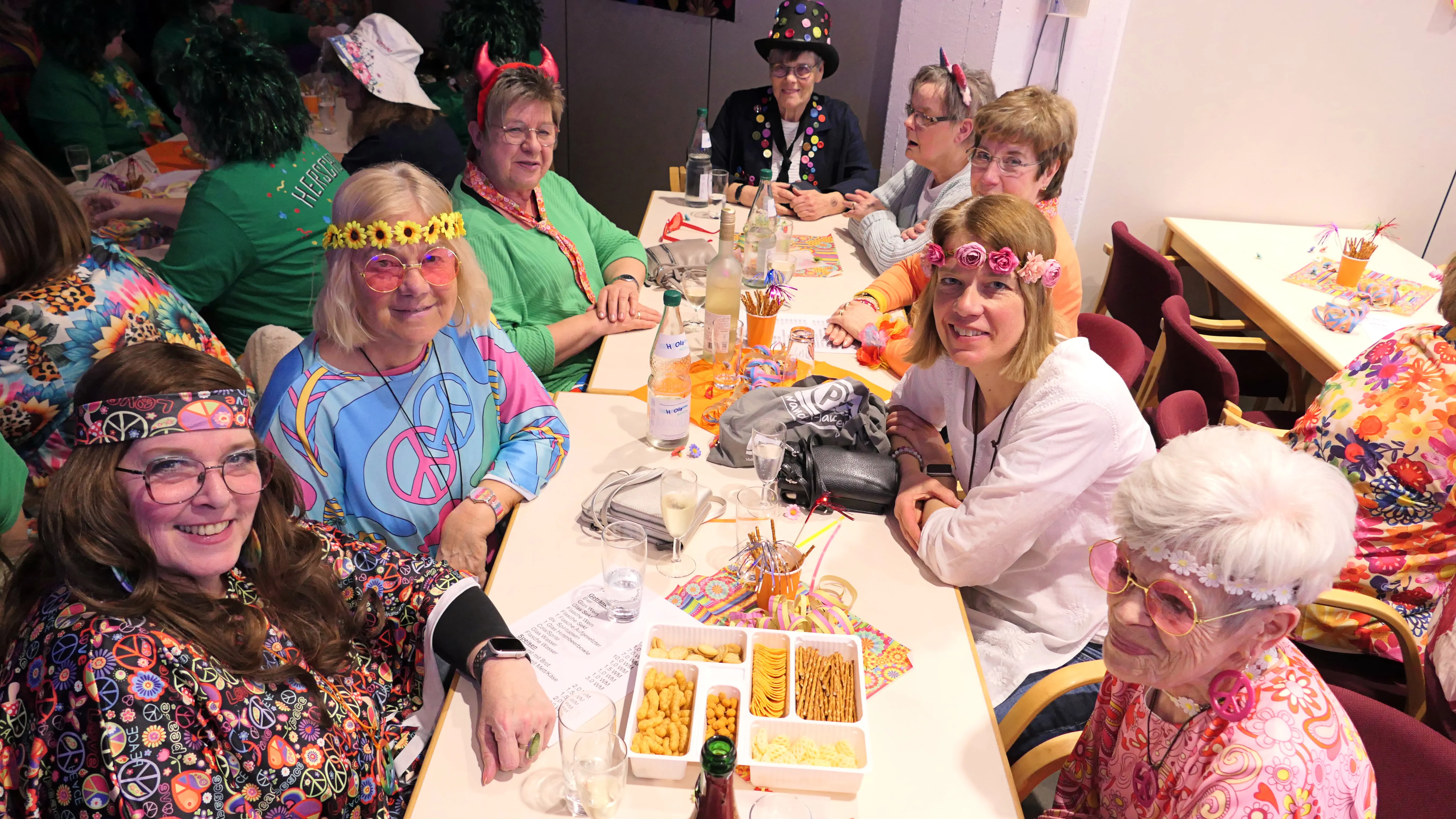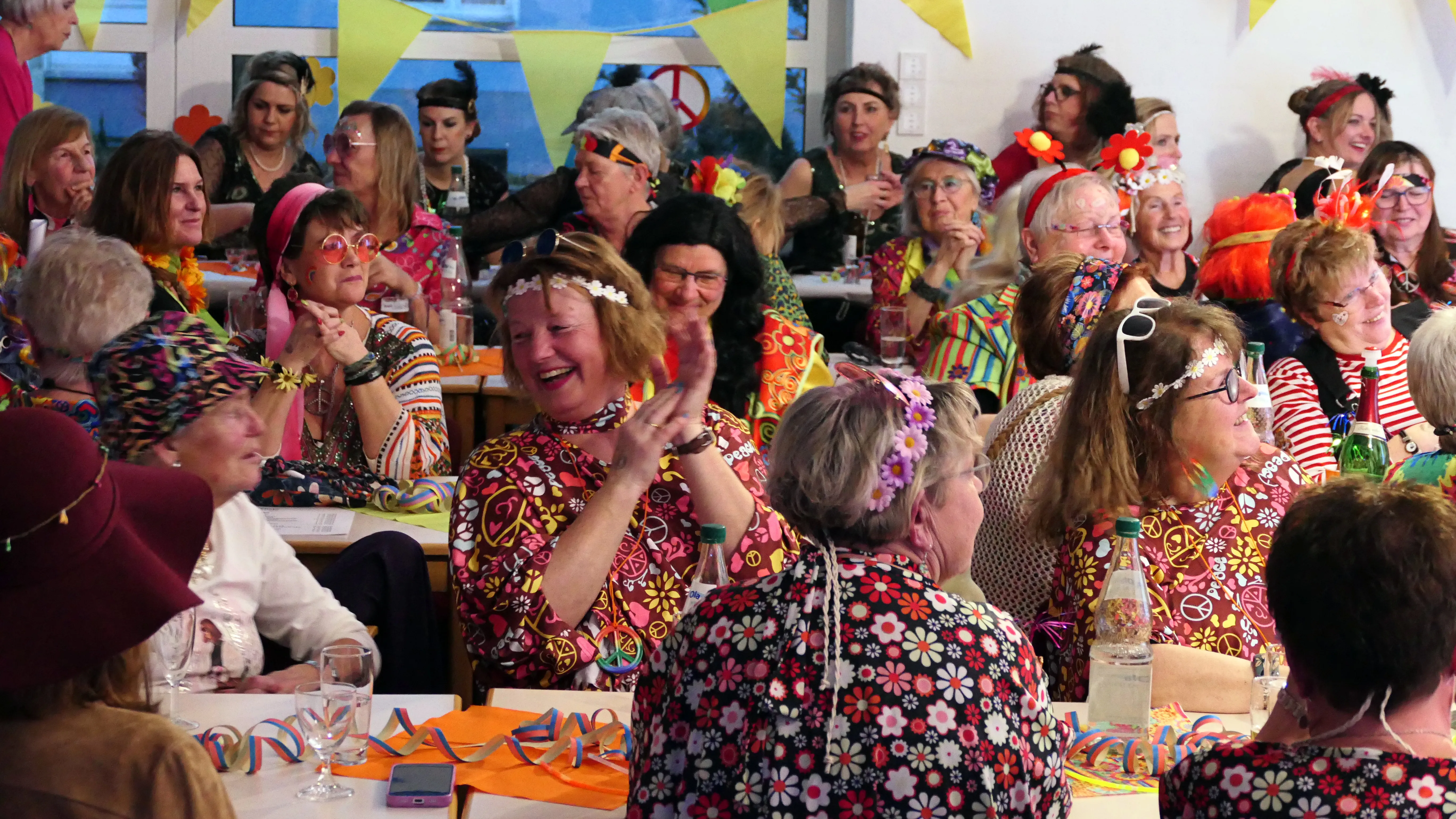 Alle Jahre wieder war der Kartenvorverkauf für die Karnevalsparty der kfd St. Laurentius in rekordverdächtigen fünf Minuten erledigt und 110 Eintrittskarten an die Frau gebracht. Zahlreiche weitere Kartenwünsche mussten unerfüllt bleiben. Und dann am Altweiberdonnerstag: von wegen sture Sauerländerinnen. Die Stimmung beim alljährlich wiederkehrenden Altweiberkarneval der kfd im Pfarrsaal der Kirchengemeinde St. Laurentius, der in diesem Jahr unter dem Motto „Flower Power“ stand, war wieder ganz hervorragend.