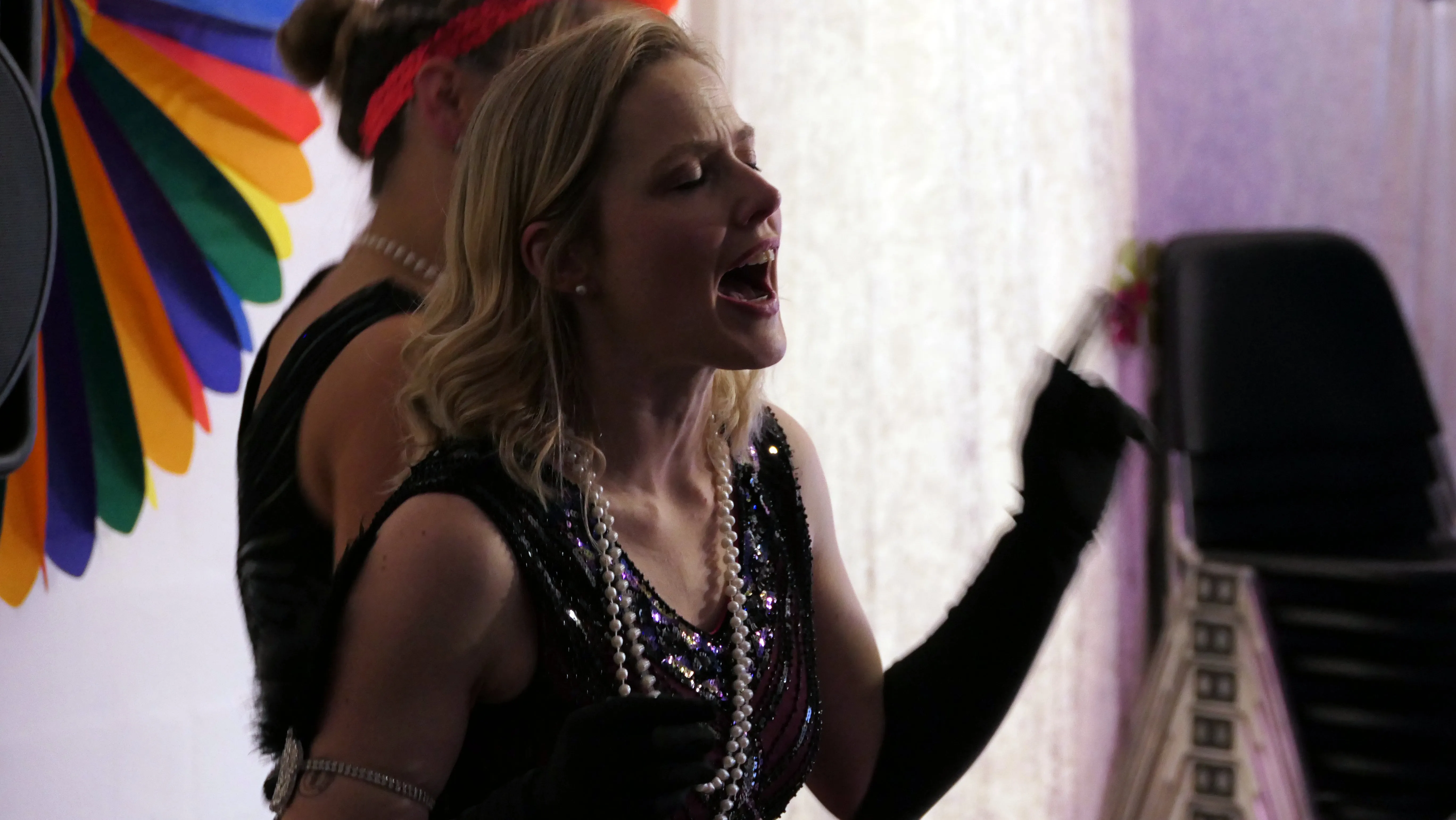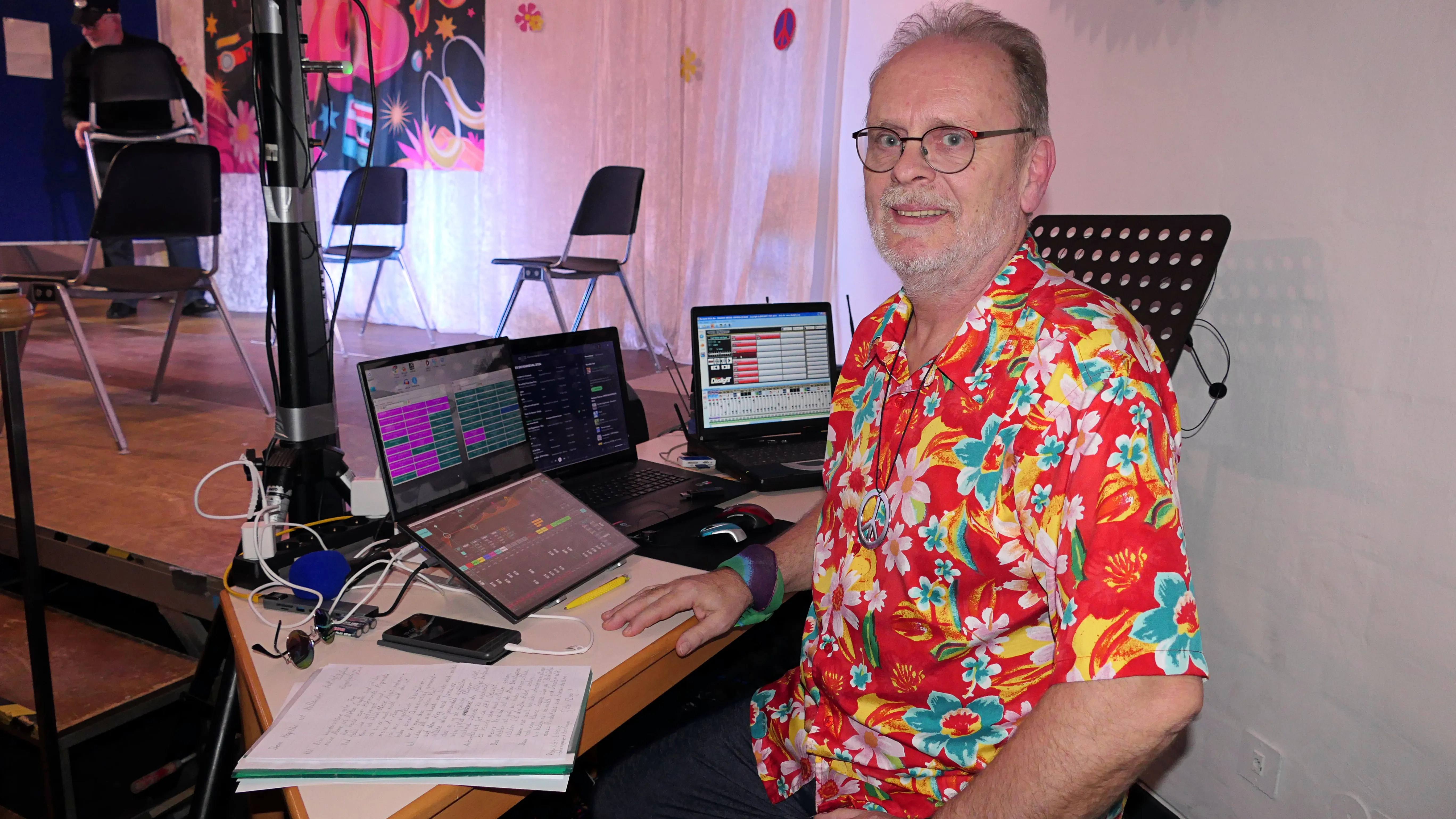 In der Pause konnten die Getränkereserven an den Tischen aufgefüllt werden, der Hunger gestillt oder einfach die Musikuntermalung von Dietmar Hecker mit weiterem Schunkeln begleitet werden. Dieter Hecker begleitete übrigens den ganzen Abend mit perfekter Musik- und Lichttechnik.
