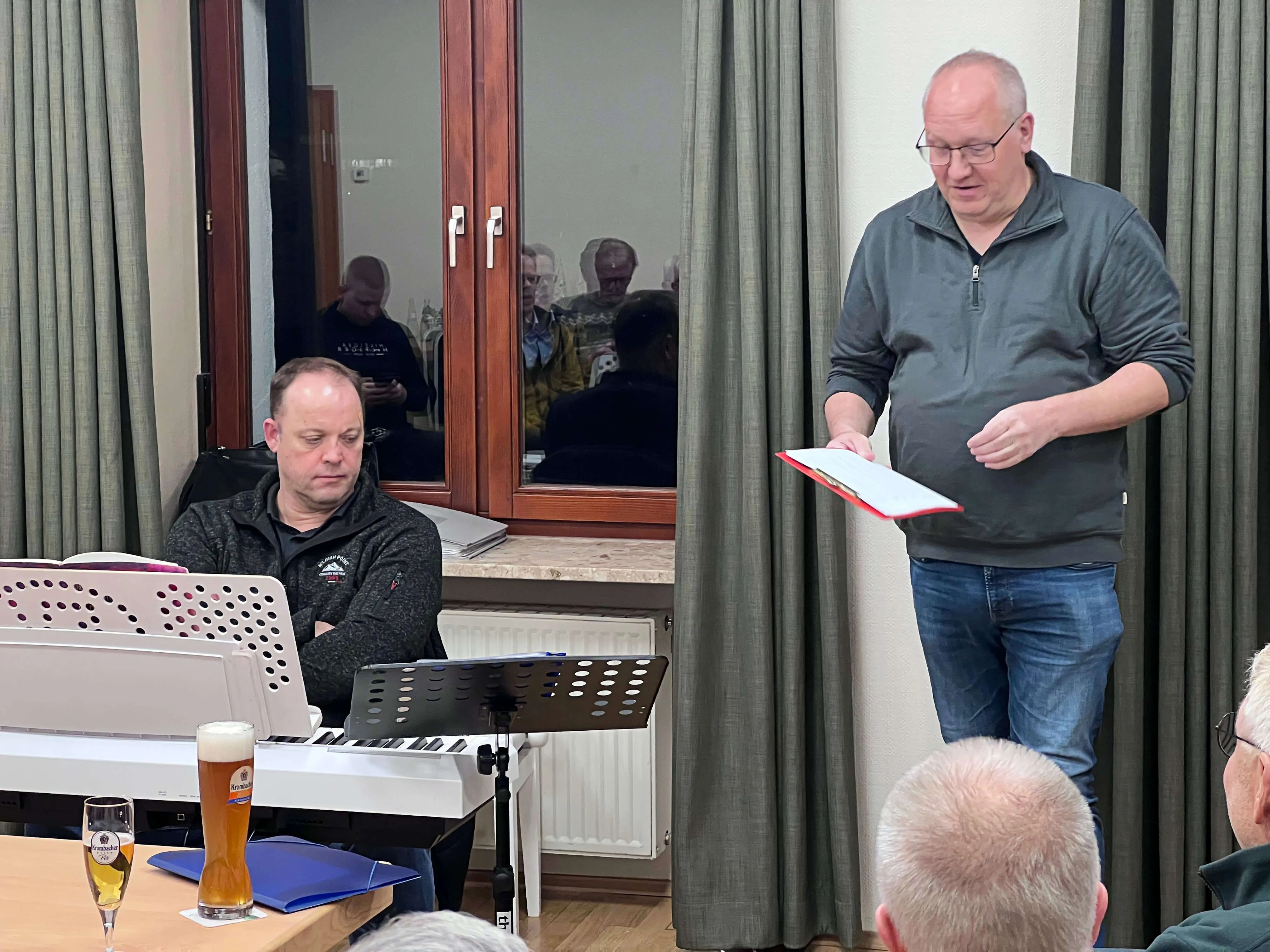 „Keine Angst vor Fehlern“, ermutigte Weidebach die Neuen. „Notenkenntnisse sind nicht unbedingt nötig.“ Mit Keyboard und eigener Stimme gab er die Melodie für die einzelnen Stimmgruppen vor. Am Ende der etwa 90-minütigen Probe klangen die Refrains von „Green, Green Grass“ (George Ezra) und „I Want It That Way“ (Backstreet Boys) schon vierstimmig und „recht gut“, wie Weidebach lobte.