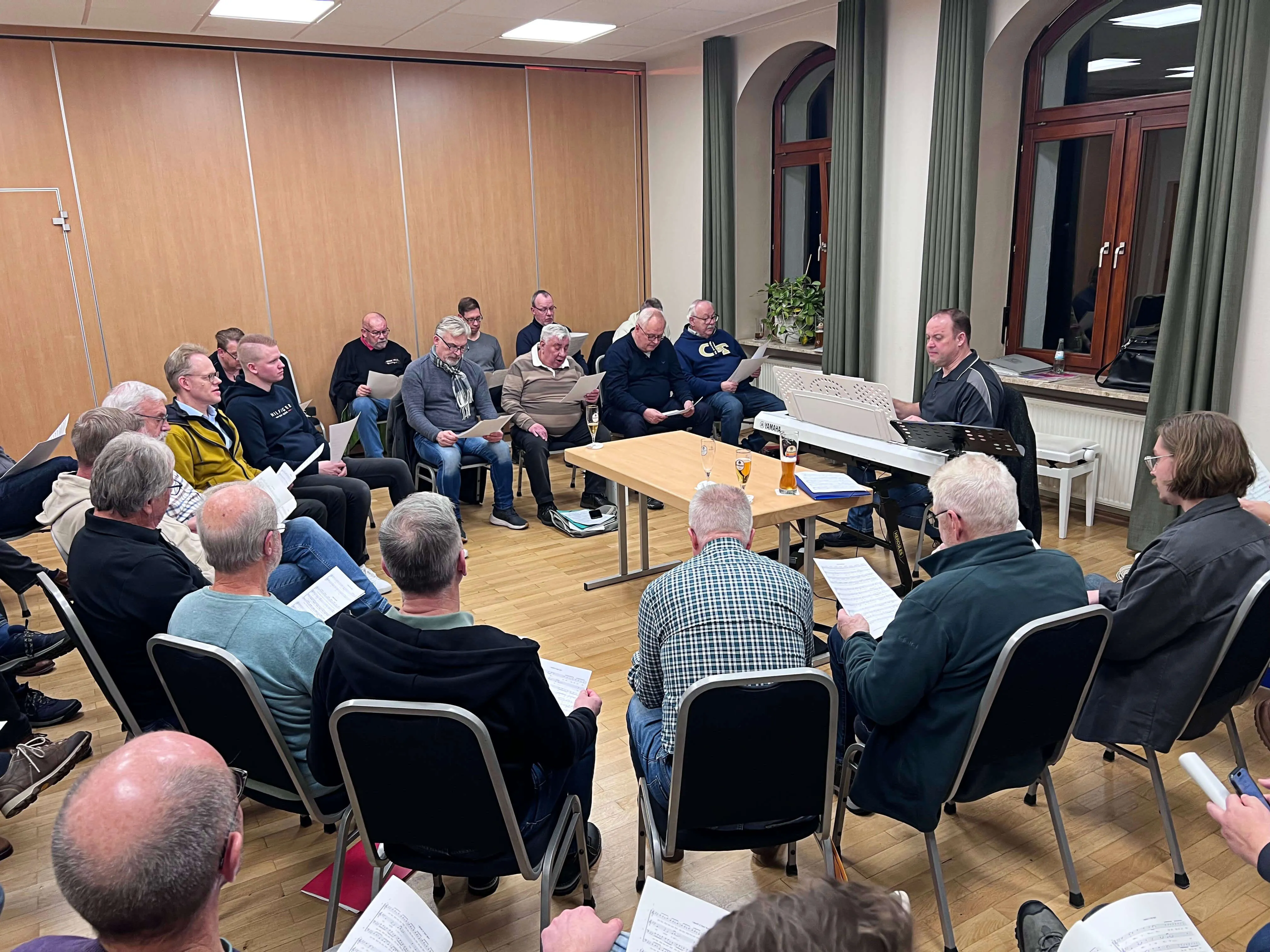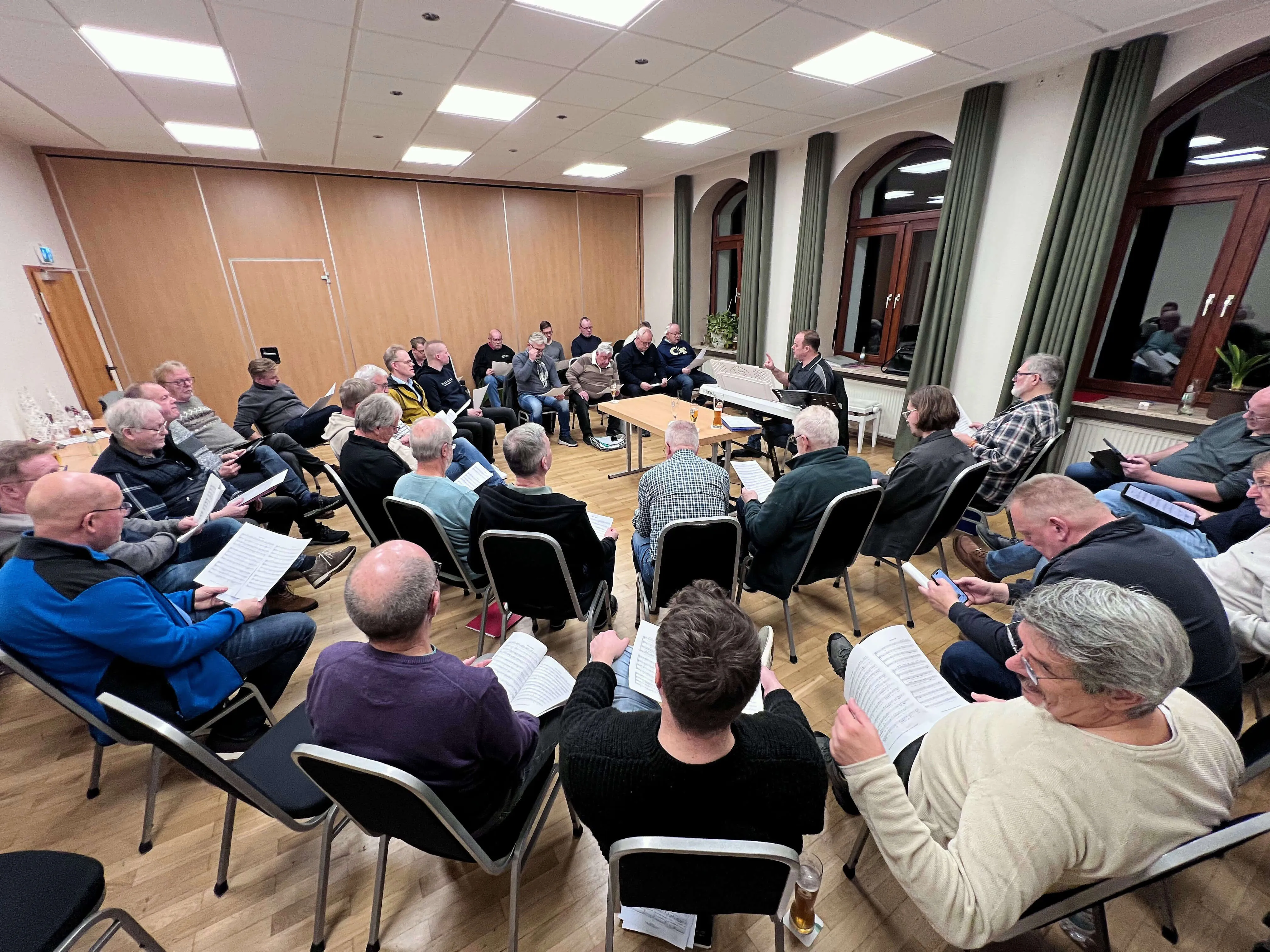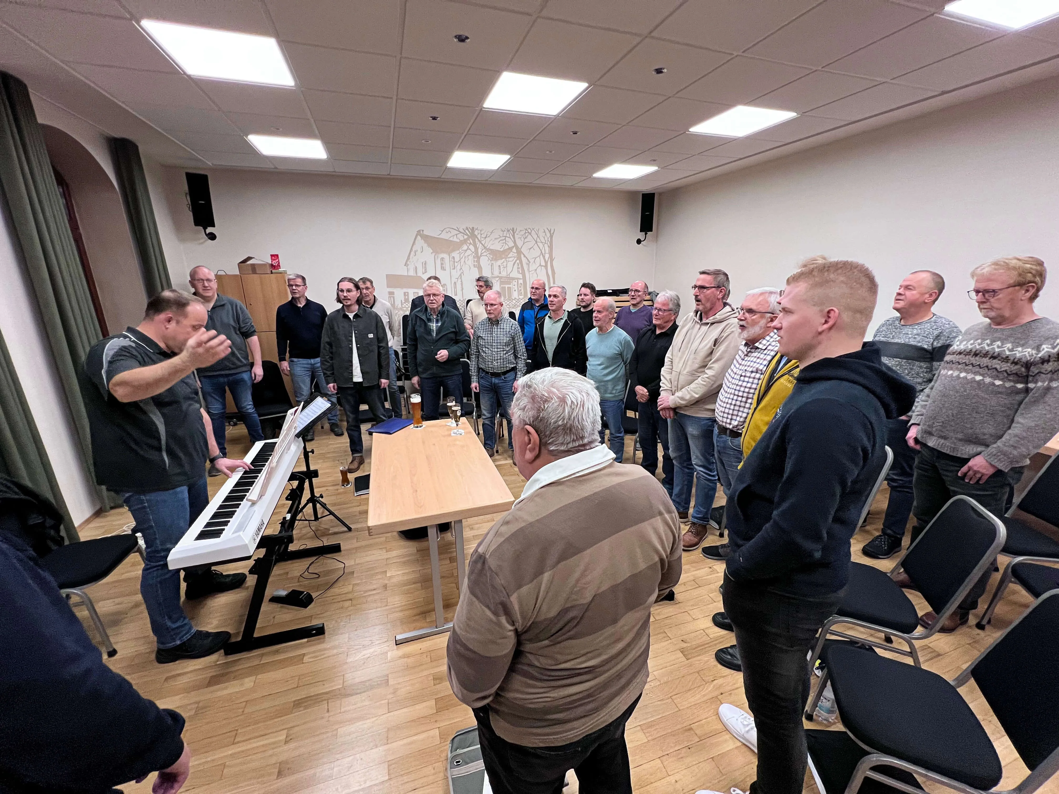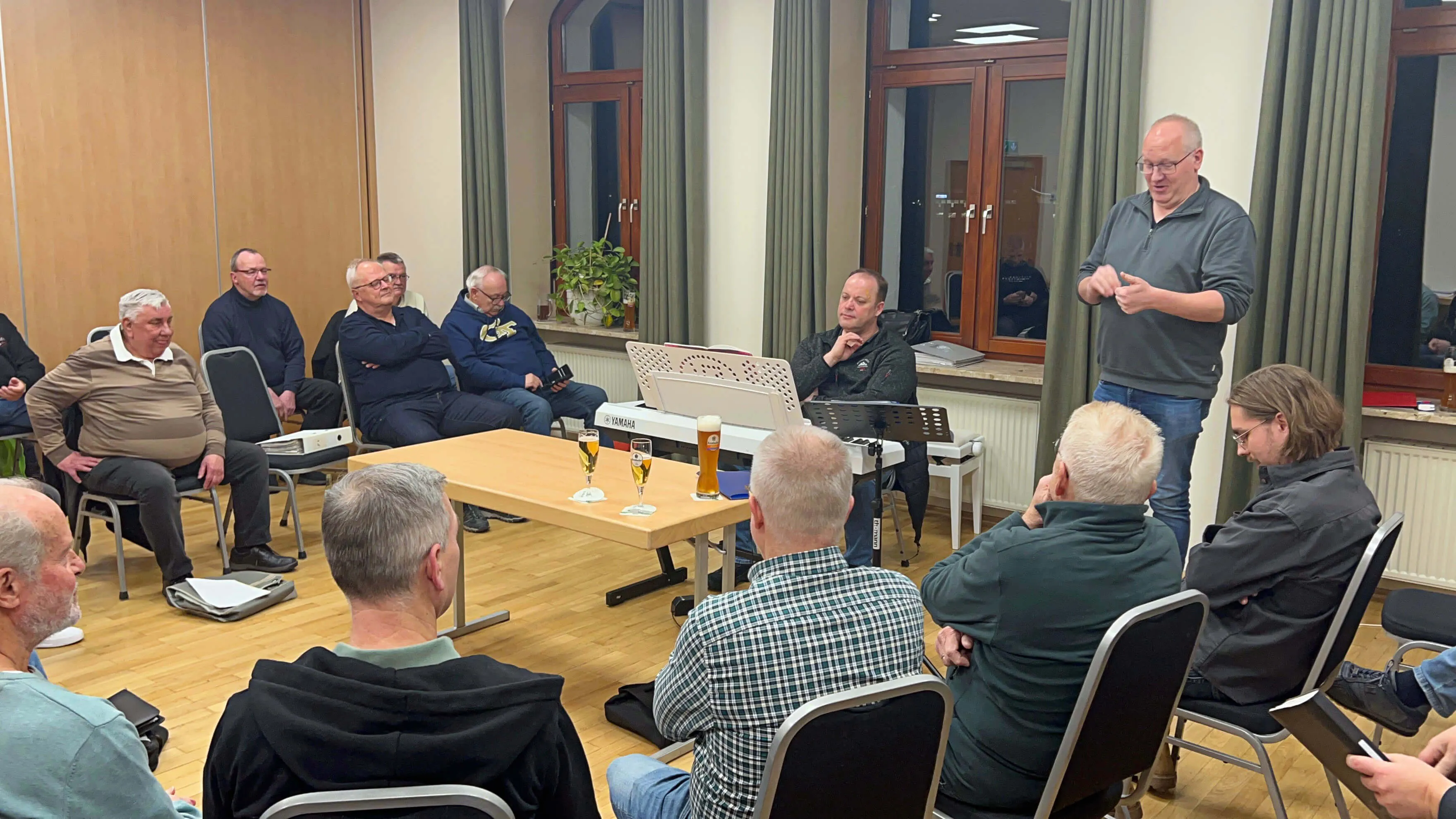 „Herzlich willkommen zur Bring-a-Buddy-Aktion“, begrüßte Sven Mialkas, Mitglied des Zukunftsworkshop-Teams der Four Valleys, die deutlich vergrößerte Sängerschar. Um den Interessierten den Einstieg leicht zu machen, wurde unter der Leitung von Thomas Weidebach mit dem Proben neuer Lieder begonnen, sodass alle Männer bei null anfingen.