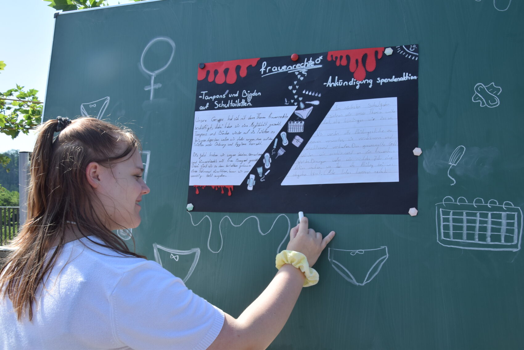 Binden und Tampons auf Mädchentoiletten anbieten – eine Idee, die bisher auf der Primusschule gescheitert ist. „Die Schüler haben zu viel Blödsinn damit angestellt“, erklärt Laura aus der Klasse Kopenhagen. Alle Hoffnungen sind aber noch nicht verloren: Für den „FreiDay“ wagten sie und ihre Gruppe einen Neustart, um allen Mädchen kostenlose Menstruationsprodukte zur Verfügung zu stellen.