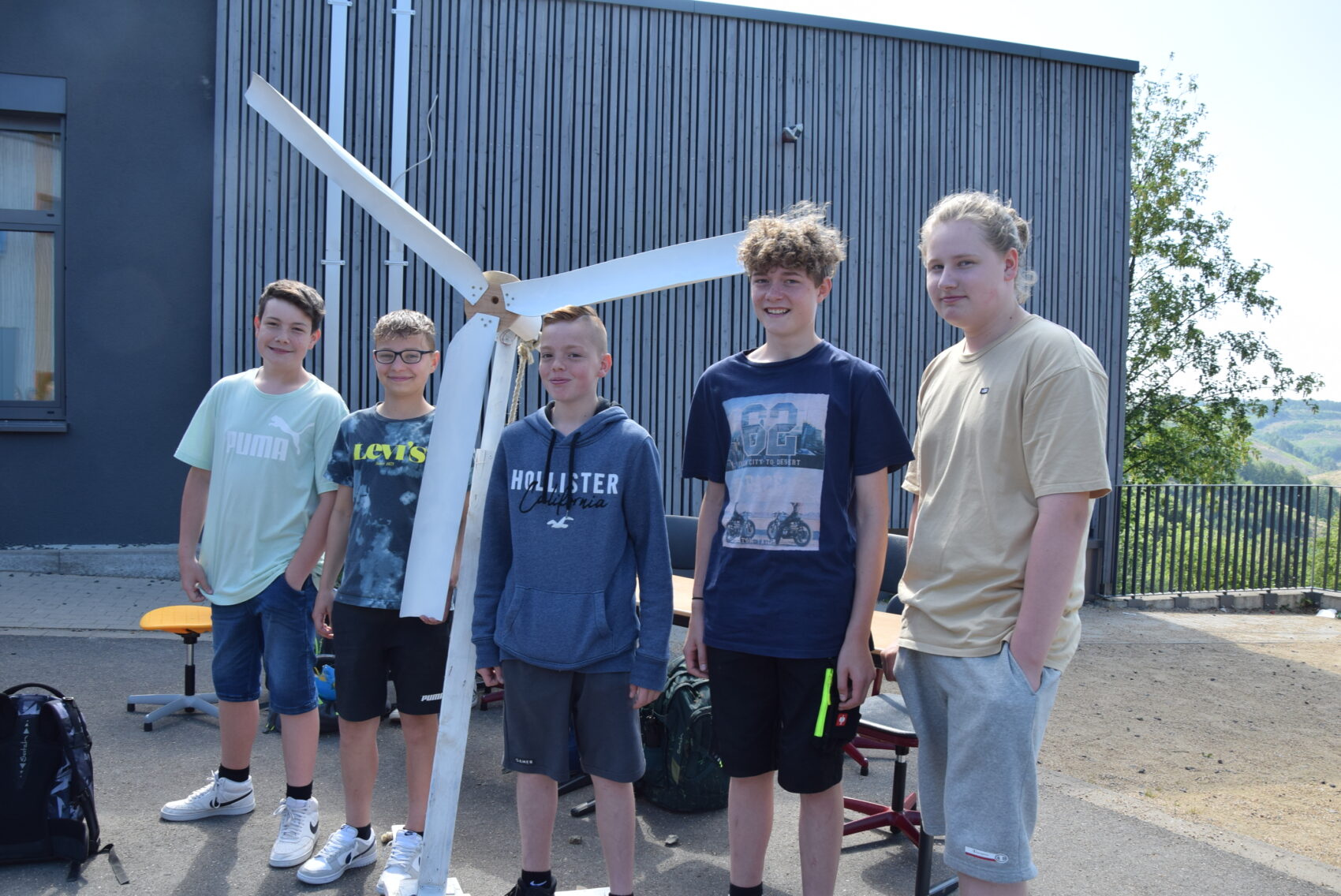 Leerer Handy-Akku in der Natur? Felix aus dem siebten Jahrgang hat eine kreative und nachhaltige Lösung gefunden: Im Rahmen des „FreiDay“ hat er gemeinsam mit seiner Freundesgruppe ein Windrad aus Holz, Röhren und Kabeln erschaffen. Durch die Kraft des Windes wird Strom erzeugt, der erfolgreich dazu genutzt werden kann, um den leeren Handy-Akku aufzuladen.