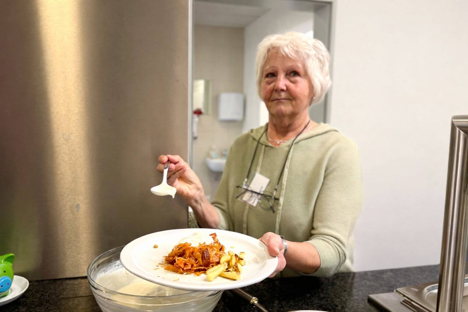 Wie gut das Angebot angenommen wird, zeigte sich auch beim jüngsten Termin: Am Mittwoch, 4. März, waren rund 40 Gäste beim Mittagessen dabei. Serviert wurde eine Kassler-Pfanne mit Sauerkraut und Schupfnudeln.