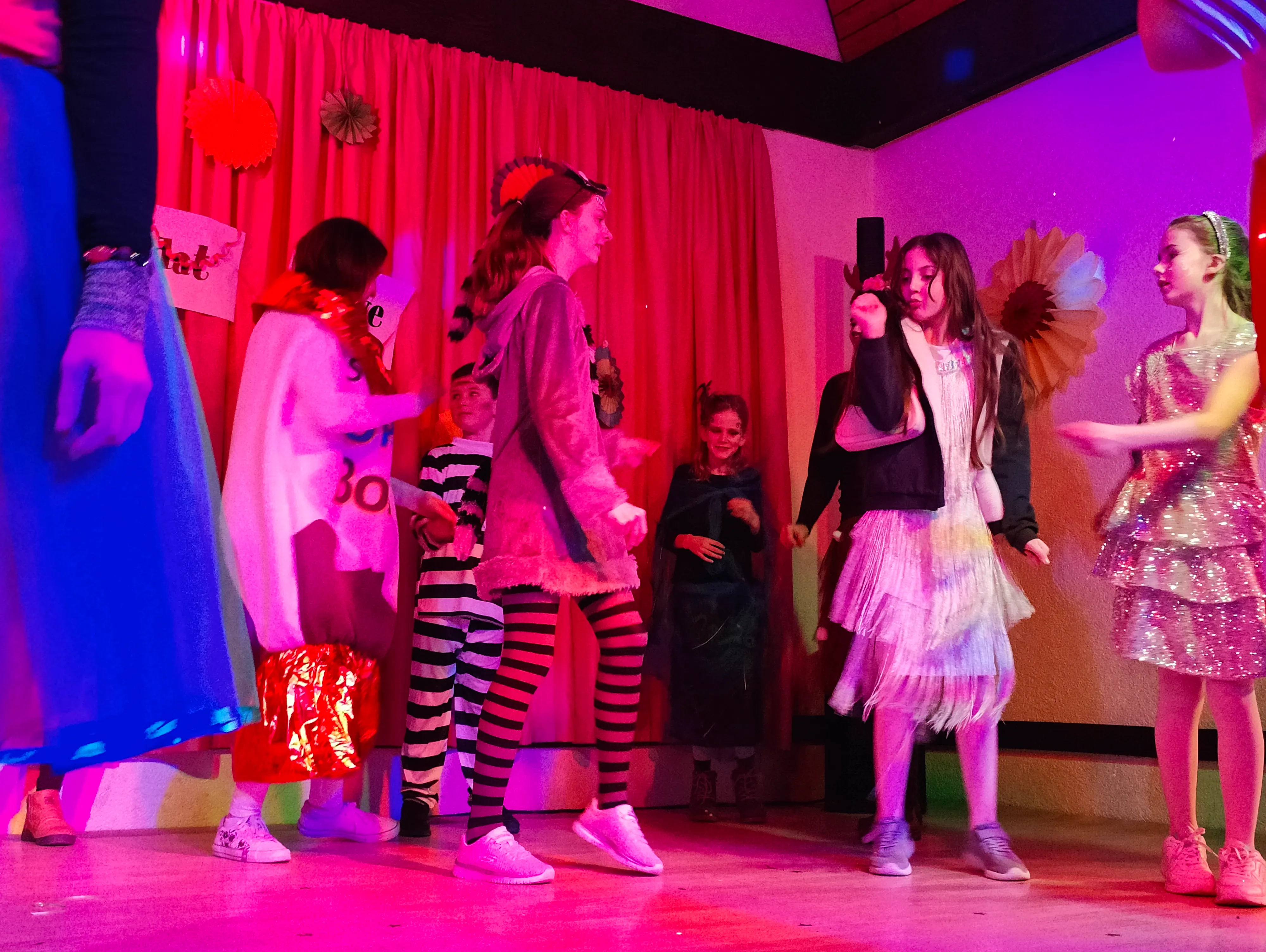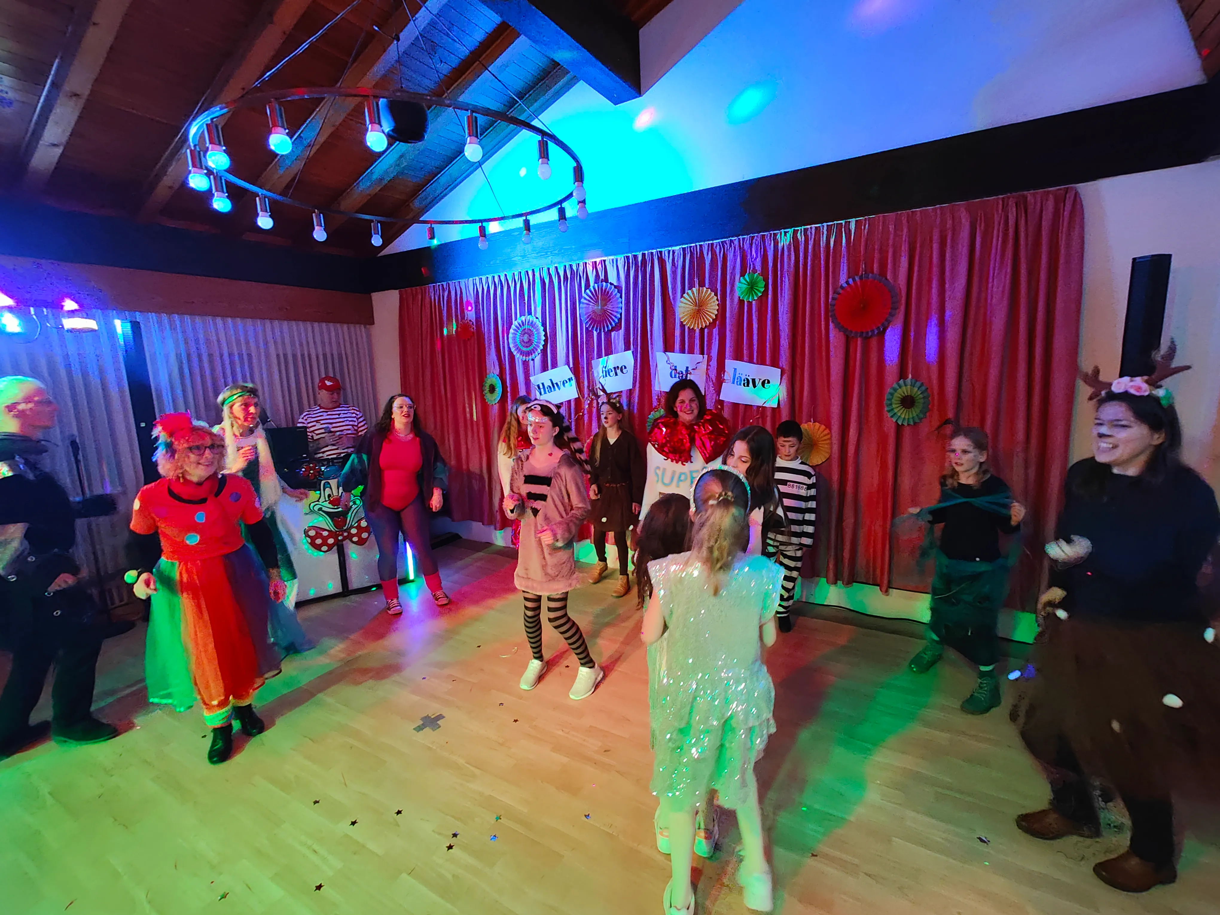 DJ Gerdi zeigte erneut vollen Einsatz und sorgte für Stimmung in der Pfarrei. Es gab nicht nur Musik, sondern auch ein abwechslungsreiches Programm mit Tanzvorführungen und Mitmachtänzen, Sketchen und kleinen Wortbeiträgen. Die Bühne wurde an diesem Abend also nicht nur als Tanzfläche, sondern für jede Art der Unterhaltung genutzt.